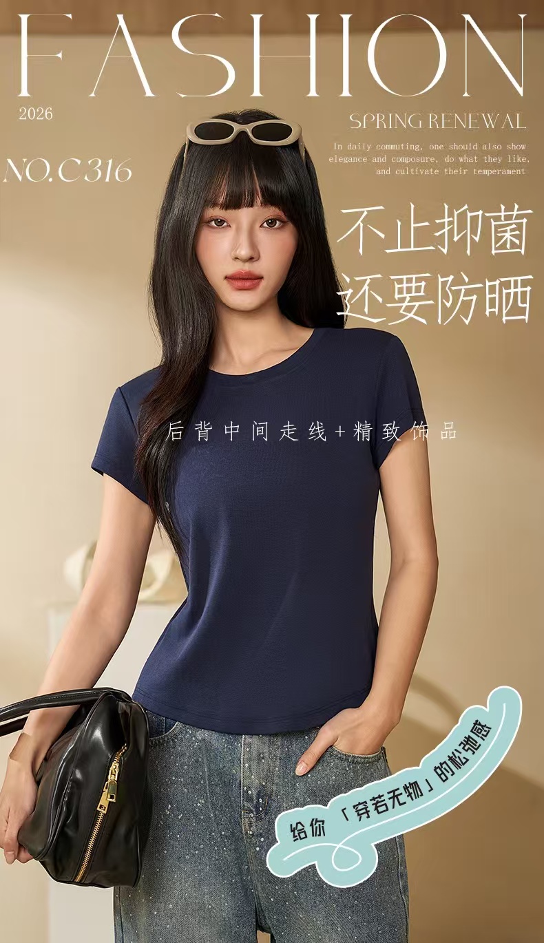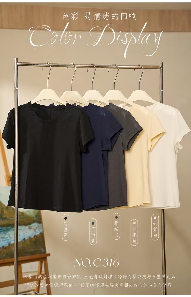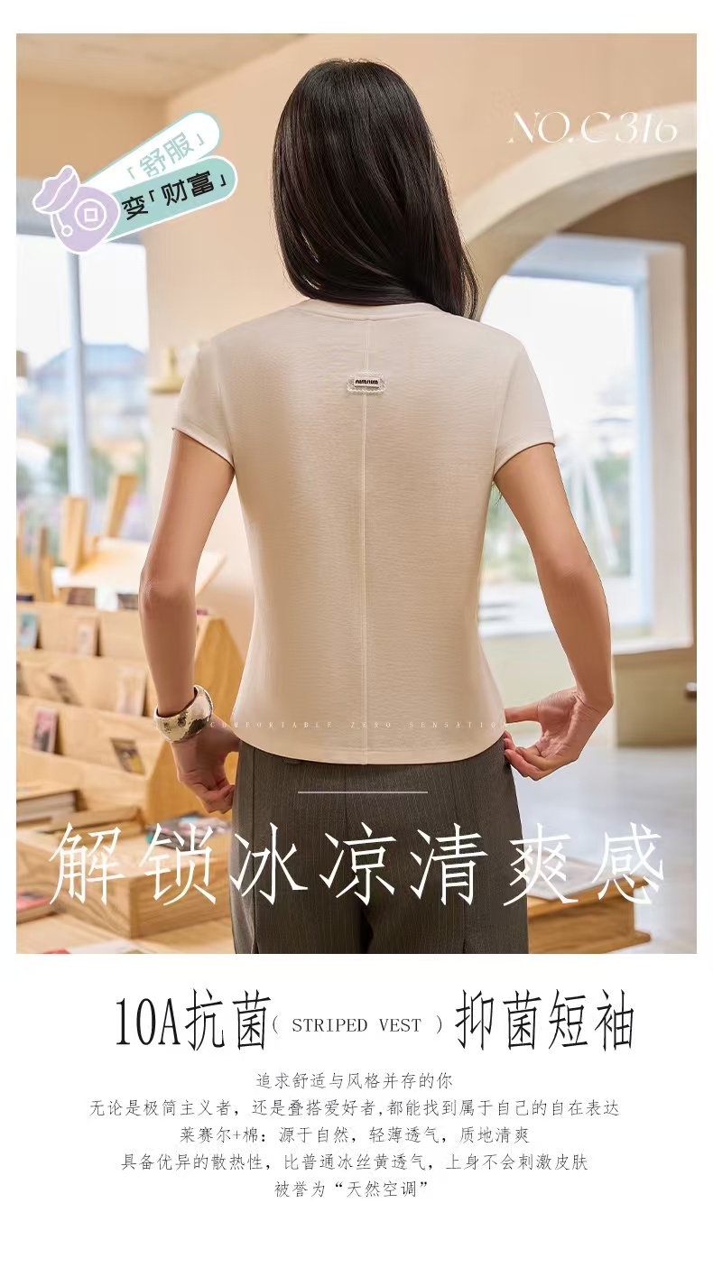 【品名】LS莱赛尔女士竹棉简约半袖316