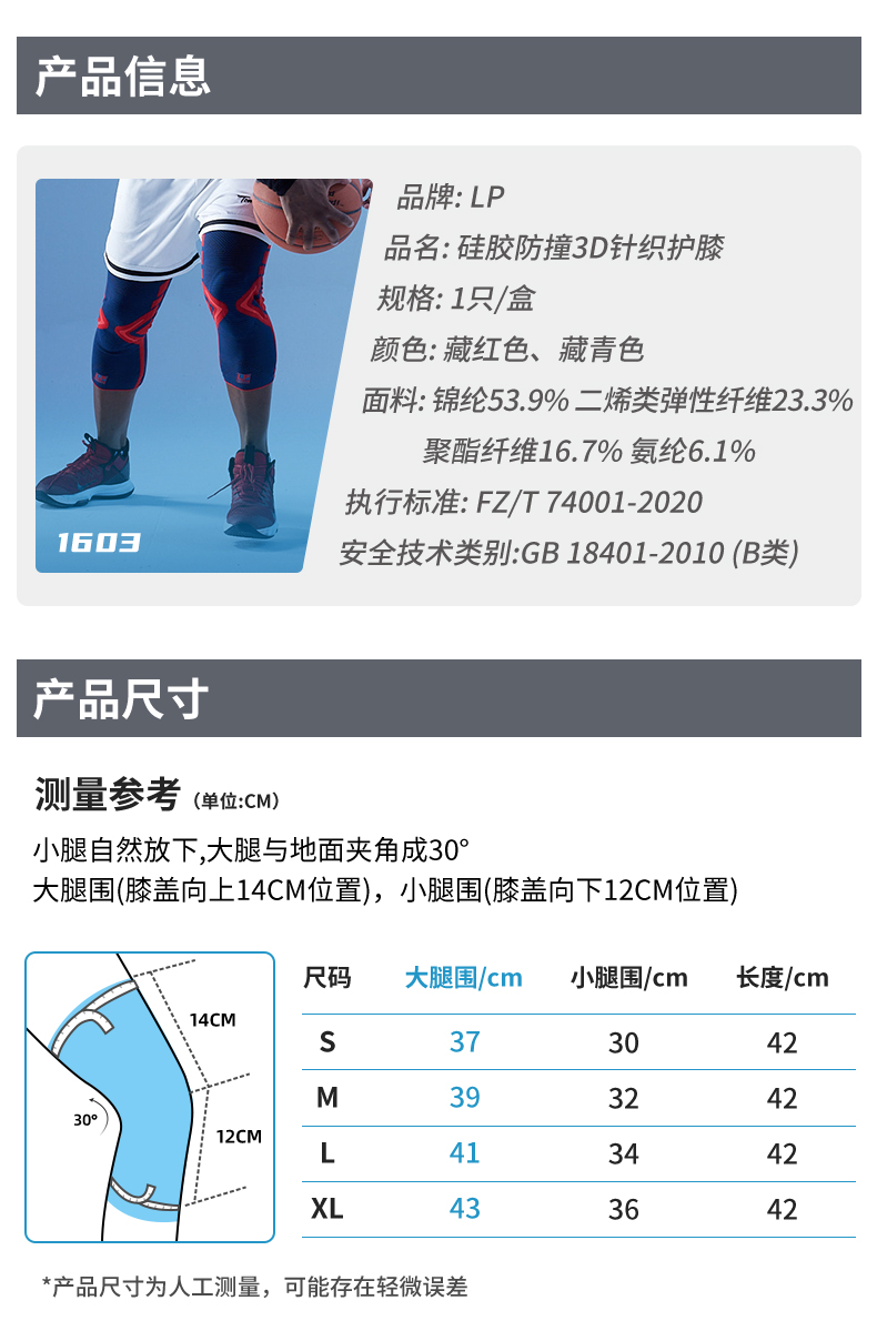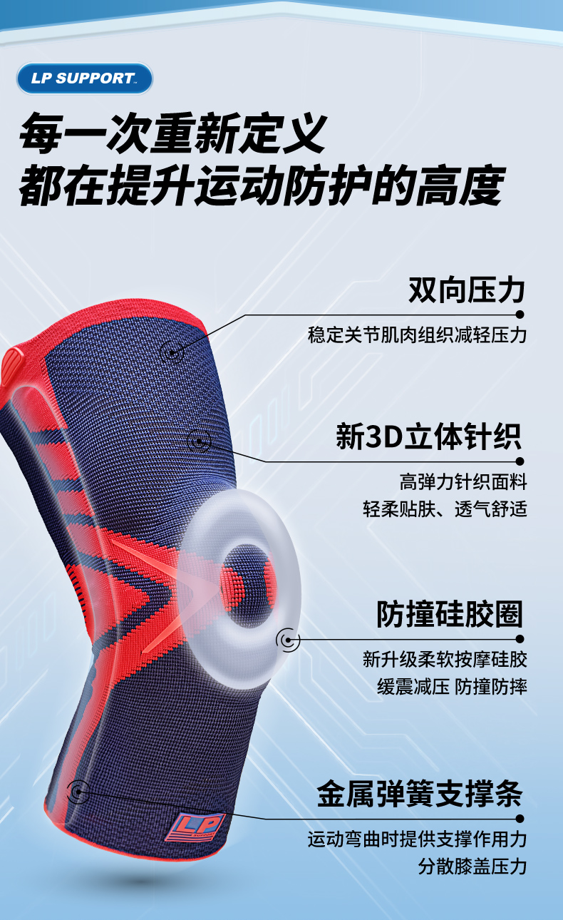 LP1603CK弹簧支撑透气护膝 户外登山慢跑健身篮羽毛球运动护具
