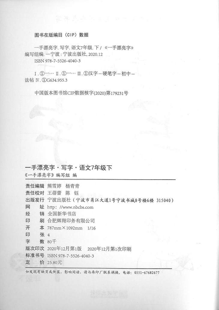 一本漂亮字 七年级下册 语文 字帖