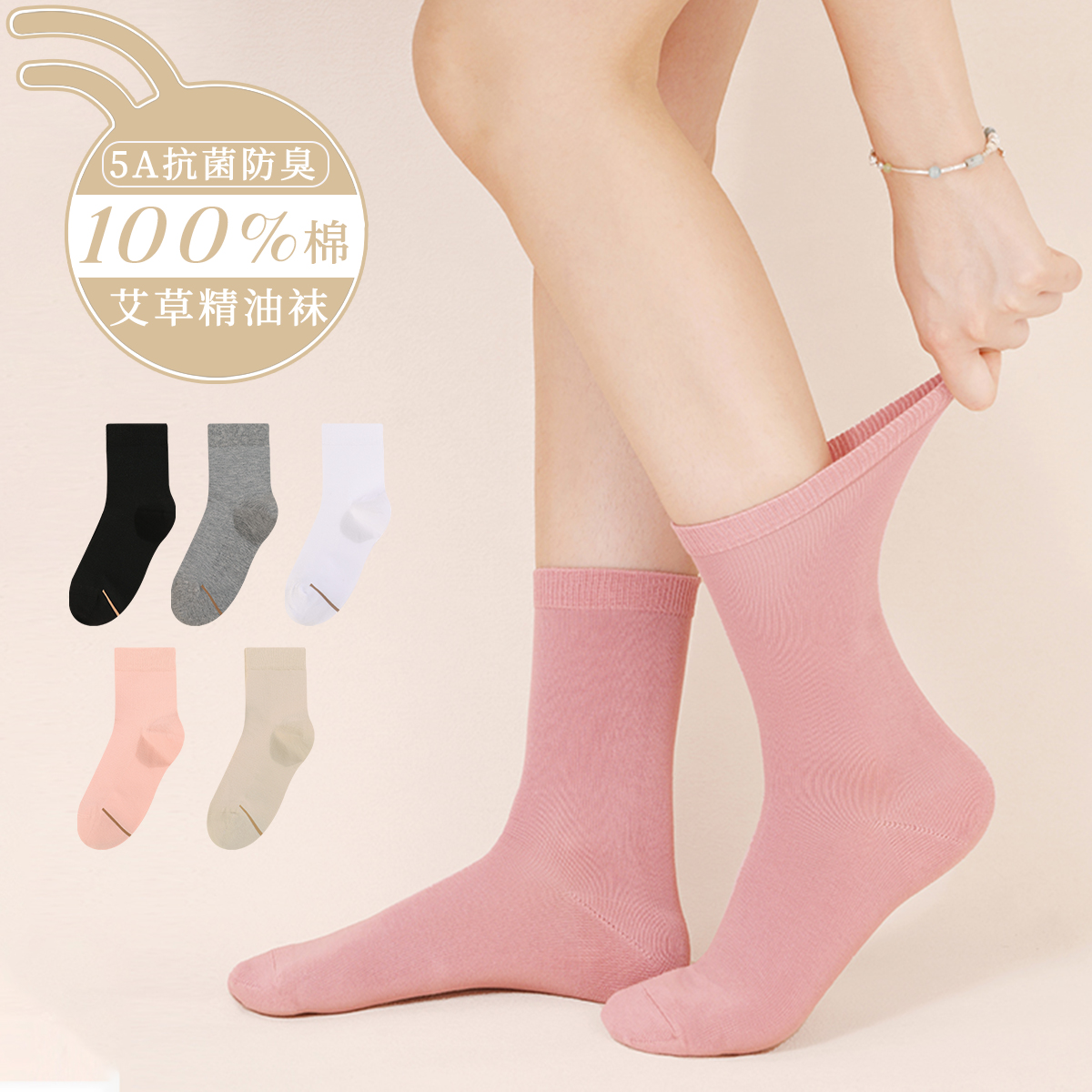 (5A级抗菌艾草精油袜)春秋简约纯色棉袜抗菌防臭袜中筒透气女袜5双套盒装!!限时抢购❗❗❗防臭吸汗!女神再也不用洗臭袜子了😍到手价29.9元