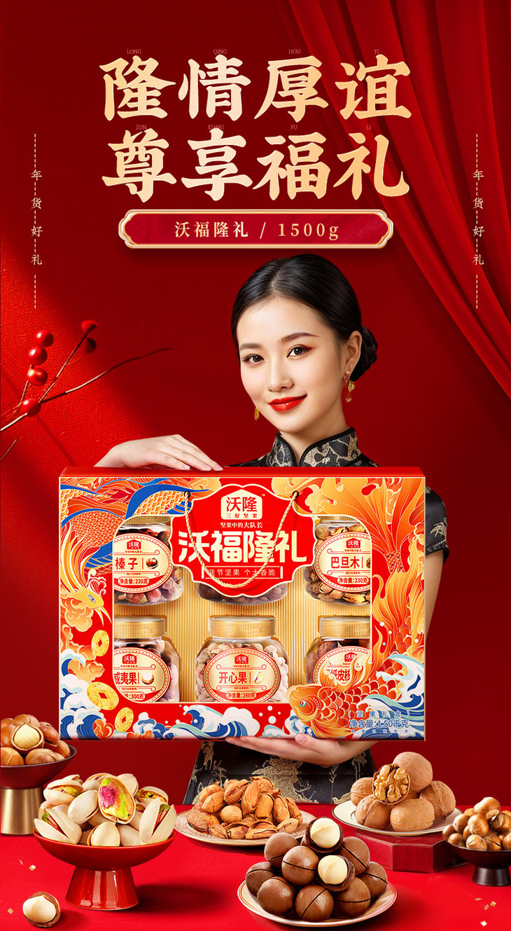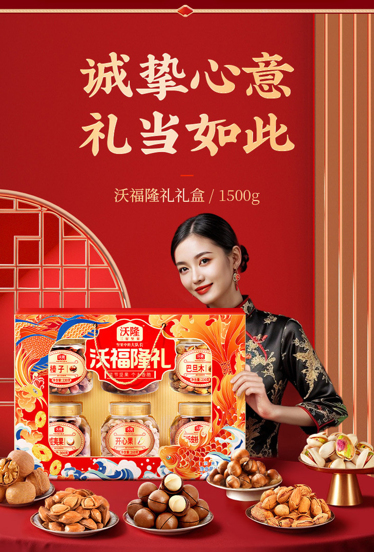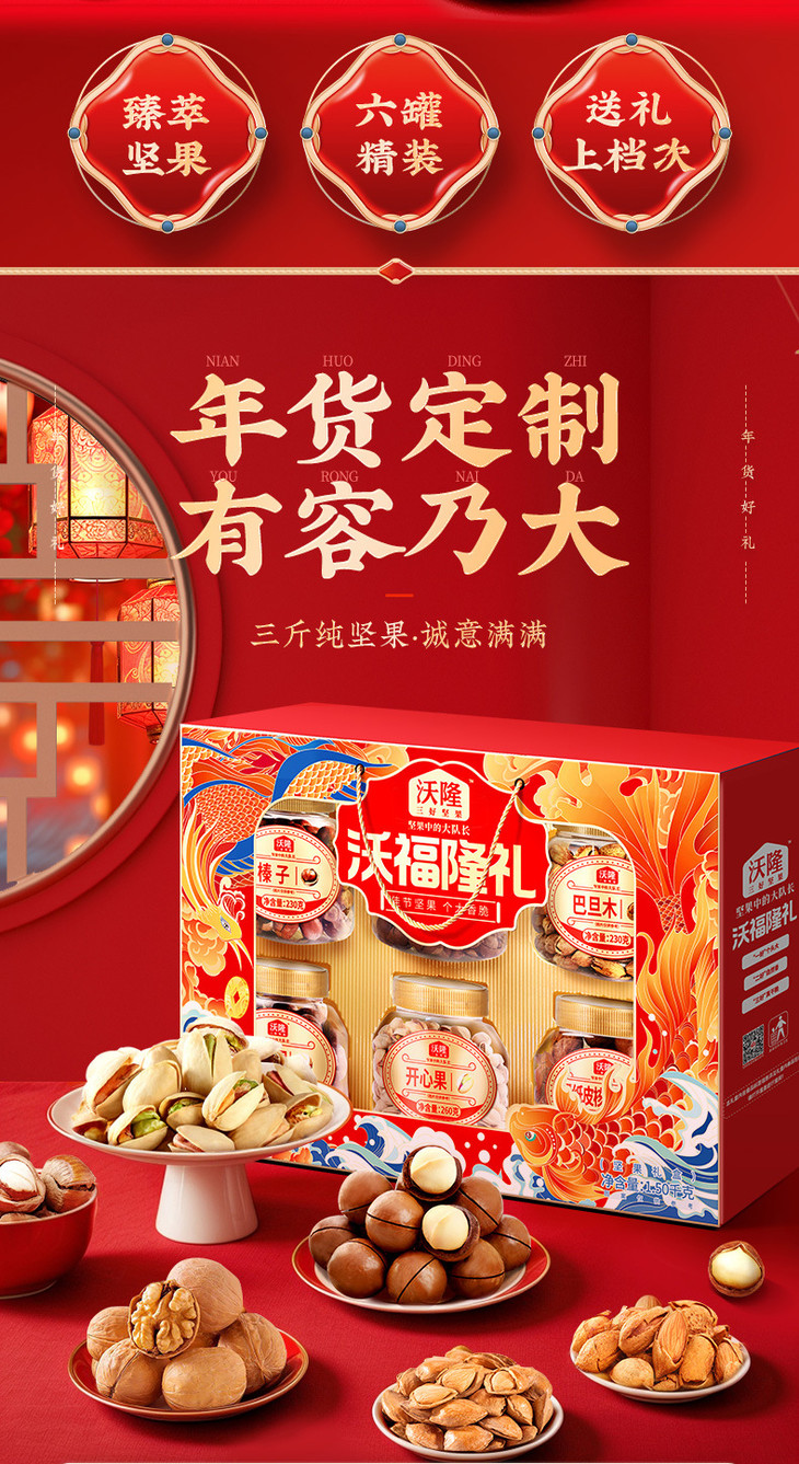 沃隆 沃福隆礼1500g6罐纯坚果礼盒春节送礼混合坚果零食组合干果