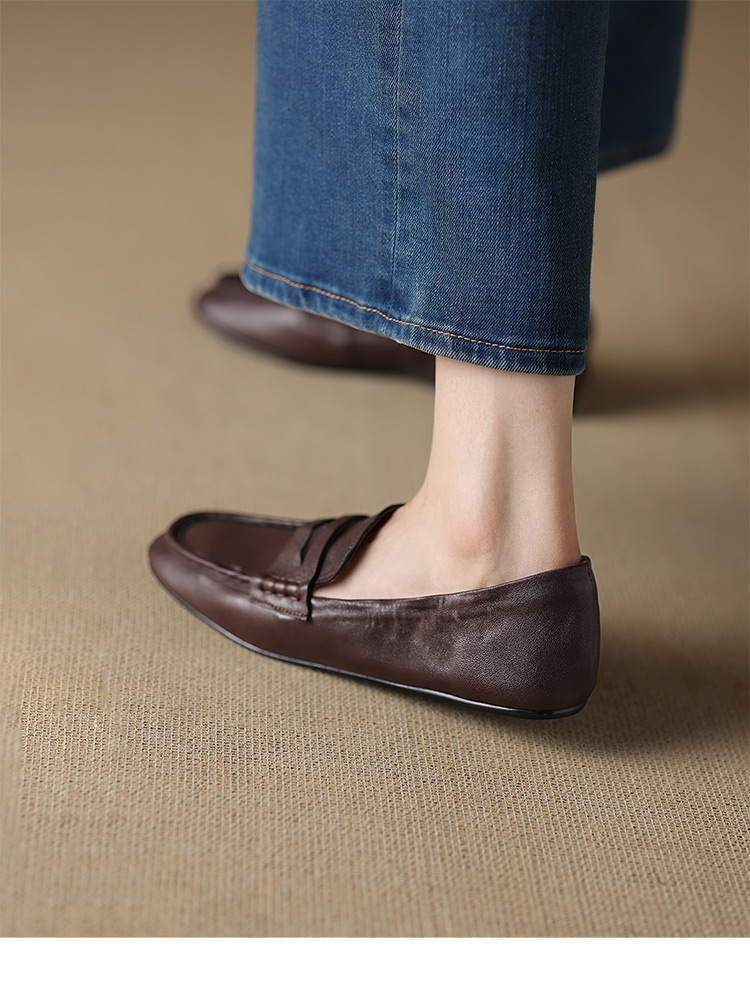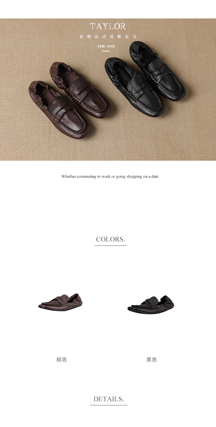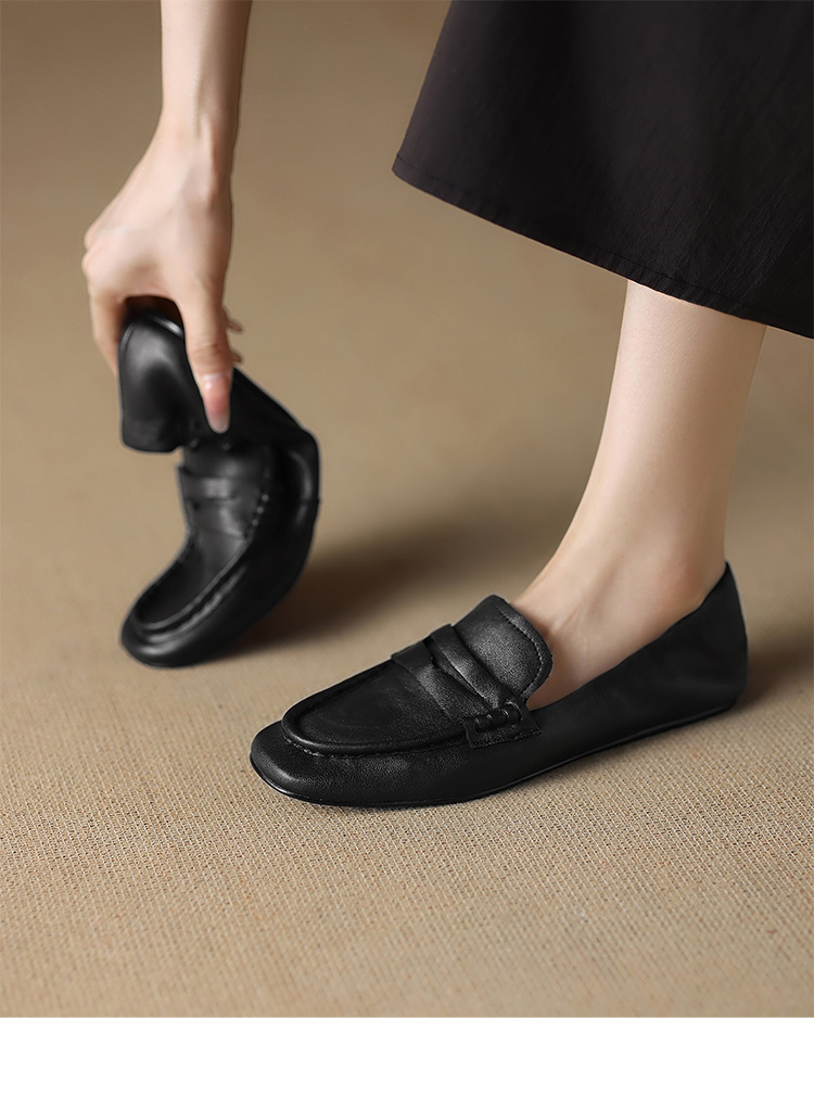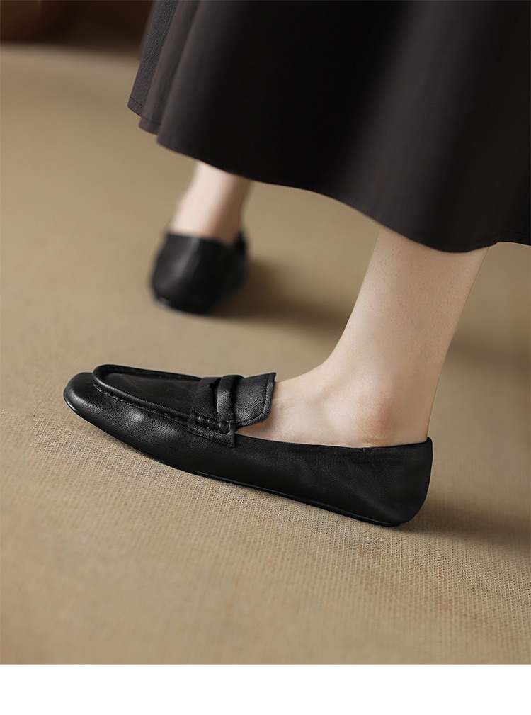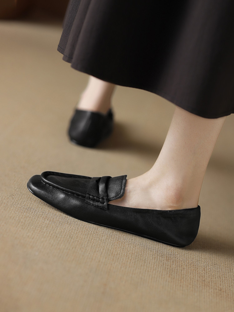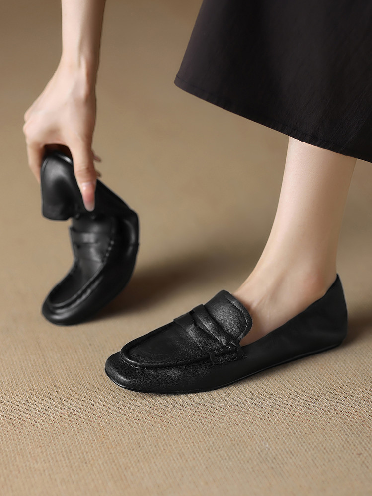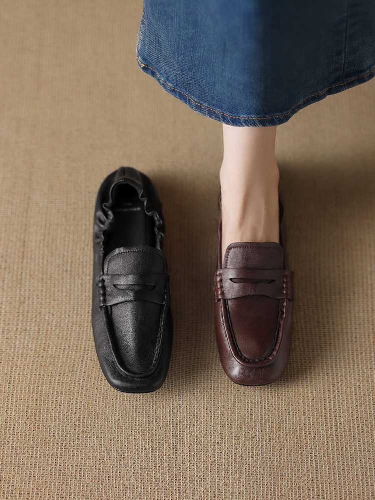 【预售5天】软皮方头单鞋女平跟鞋秋冬新款低帮乐福单鞋女小皮鞋XDDFG&D-3328F