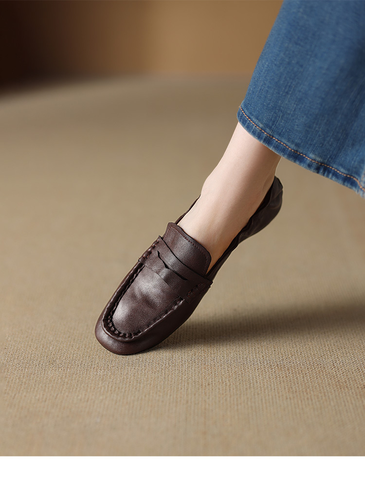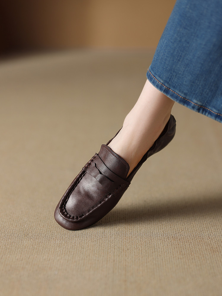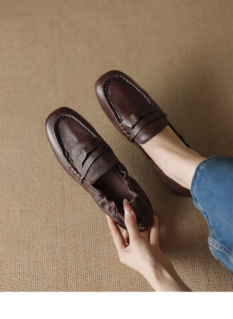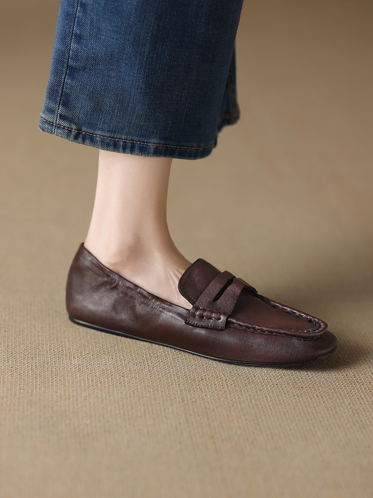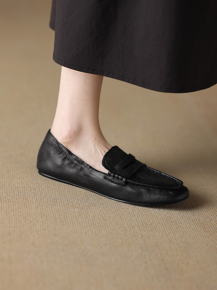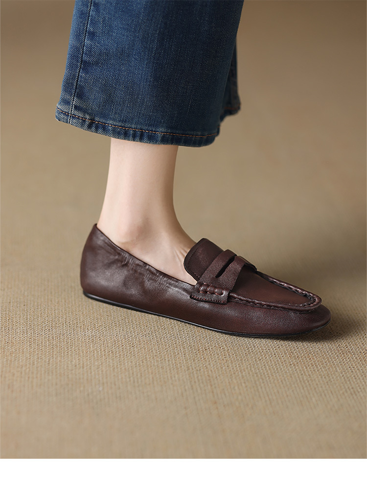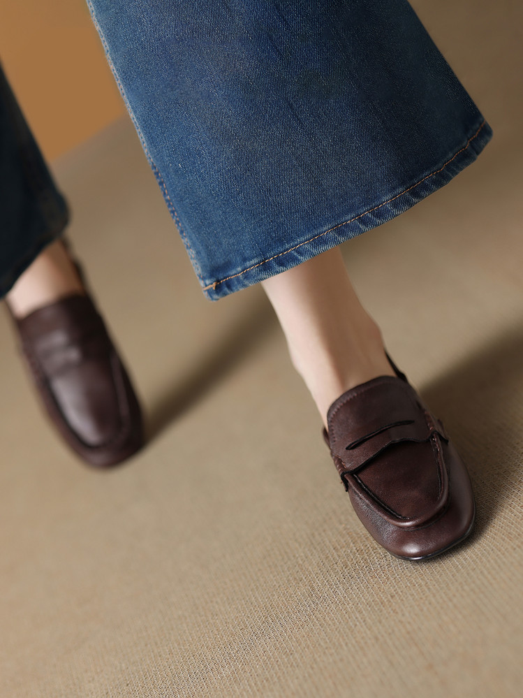 【预售5天】软皮方头单鞋女平跟鞋秋冬新款低帮乐福单鞋女小皮鞋XDDFG&D-3328F