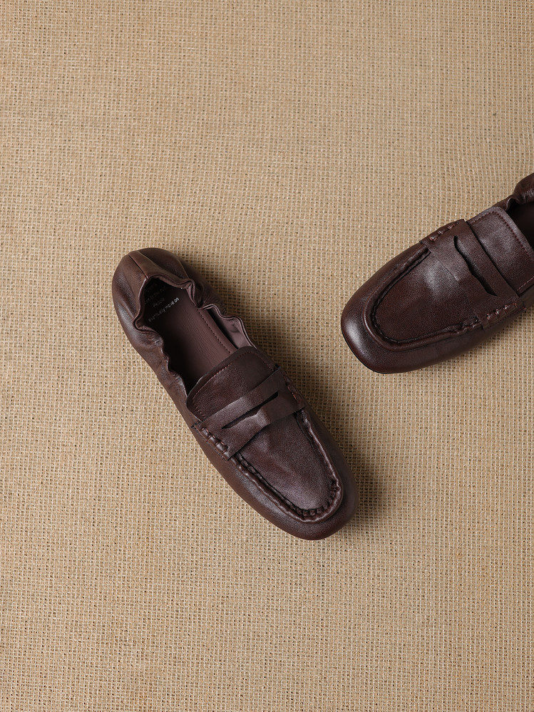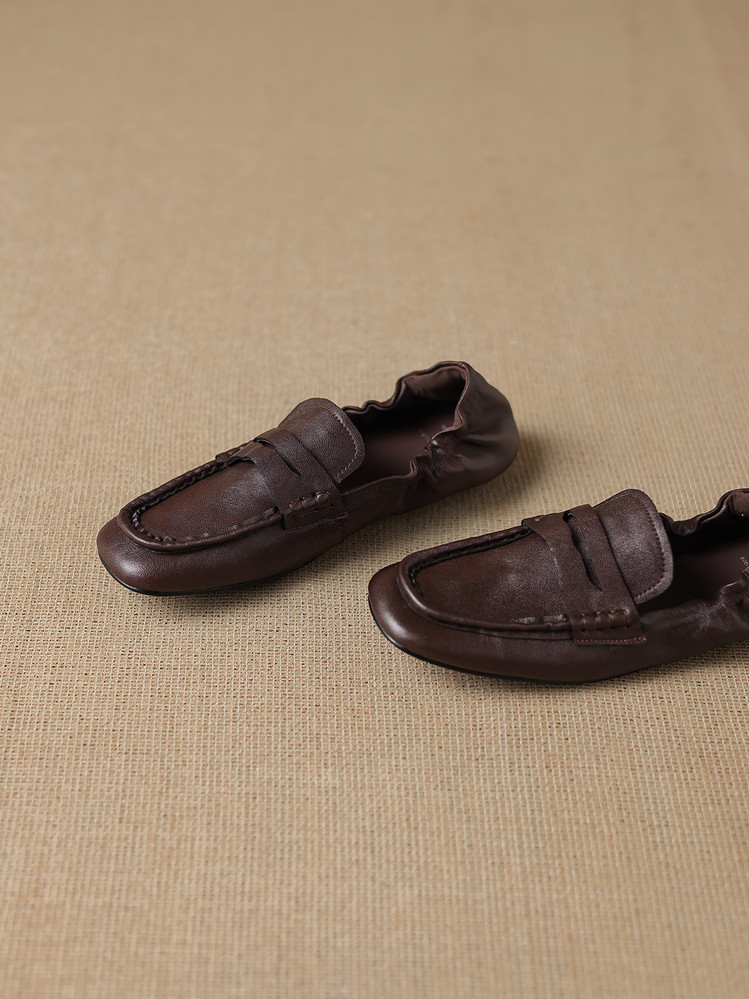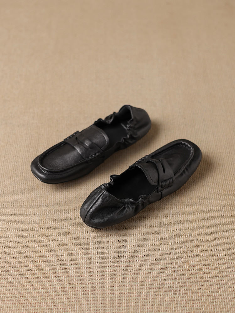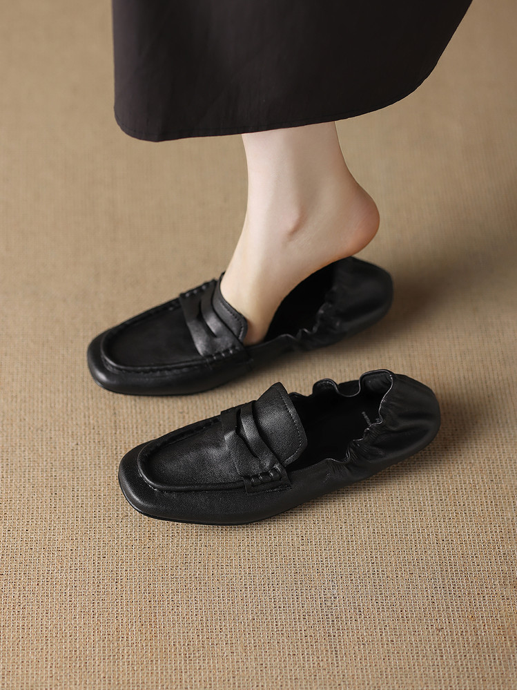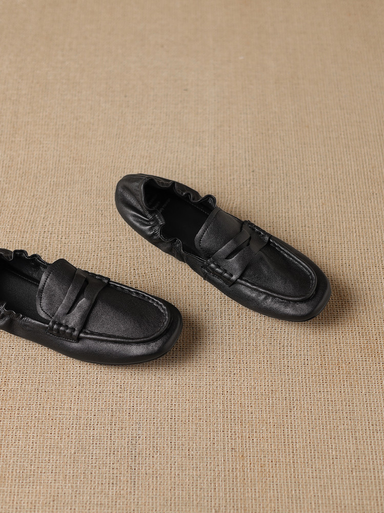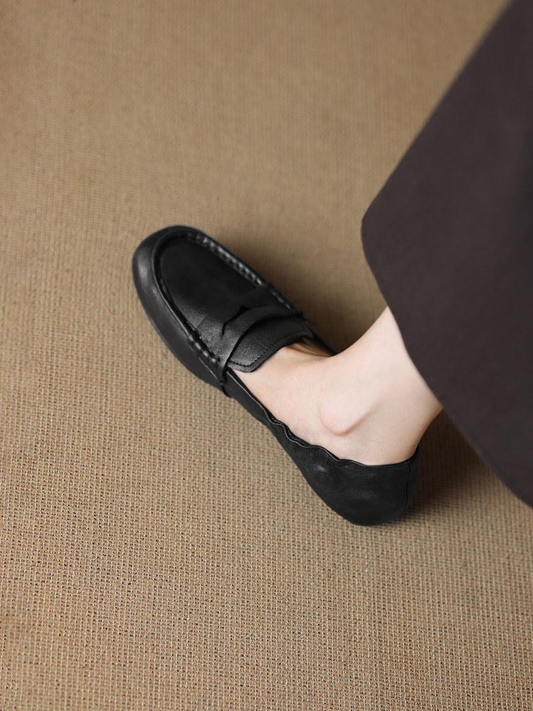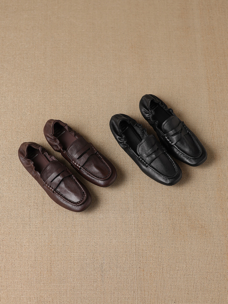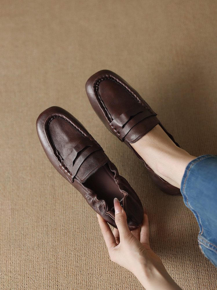 【预售5天】软皮方头单鞋女平跟鞋秋冬新款低帮乐福单鞋女小皮鞋XDDFG&D-3328F