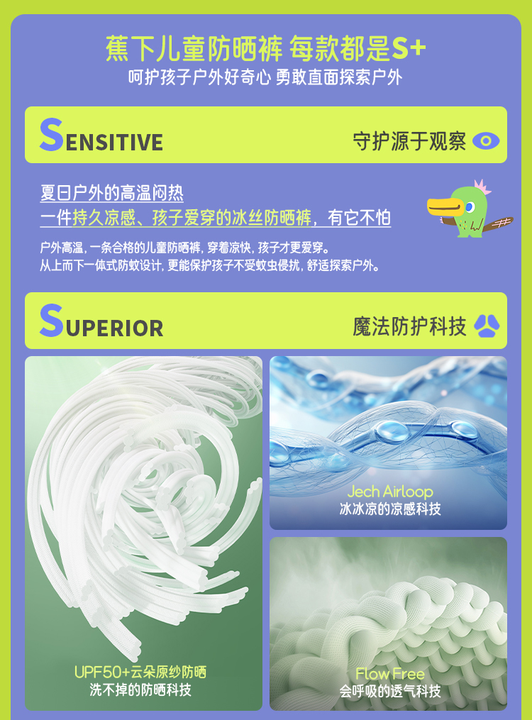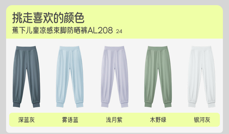 蕉下儿童防晒裤AL20824男女童运动薄款速干裤子宝宝防蚊束脚长裤