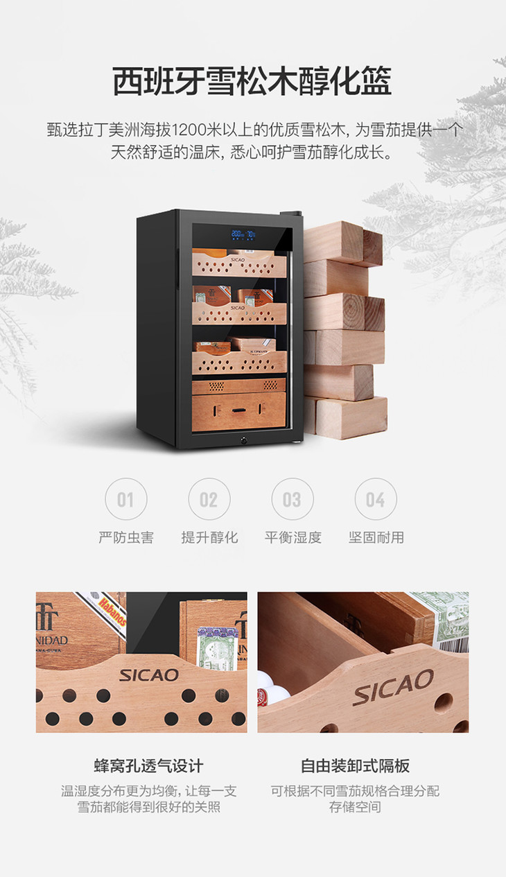 SICAO新朝 C3雪茄柜恒温恒湿家用 西班牙实木迷你保湿柜子