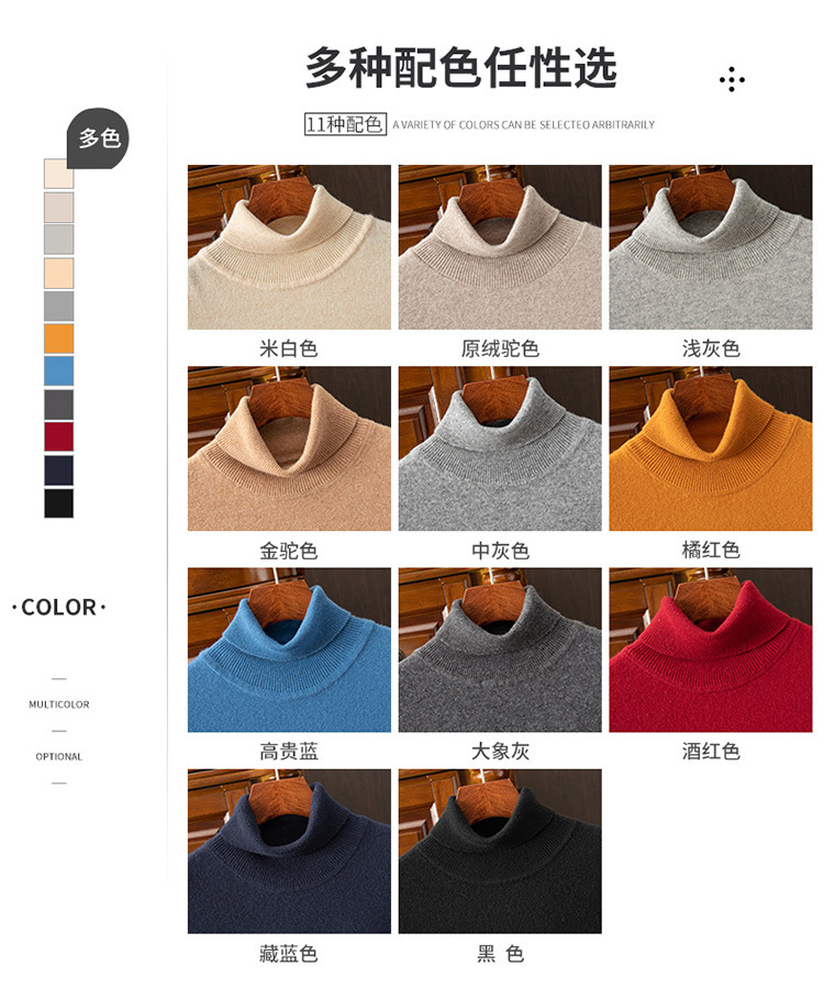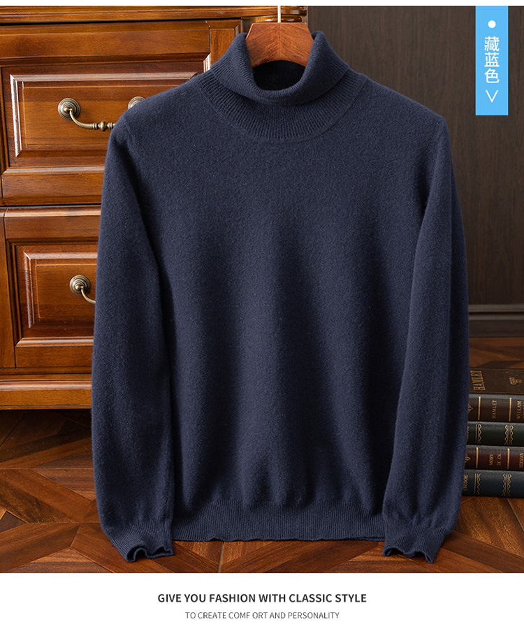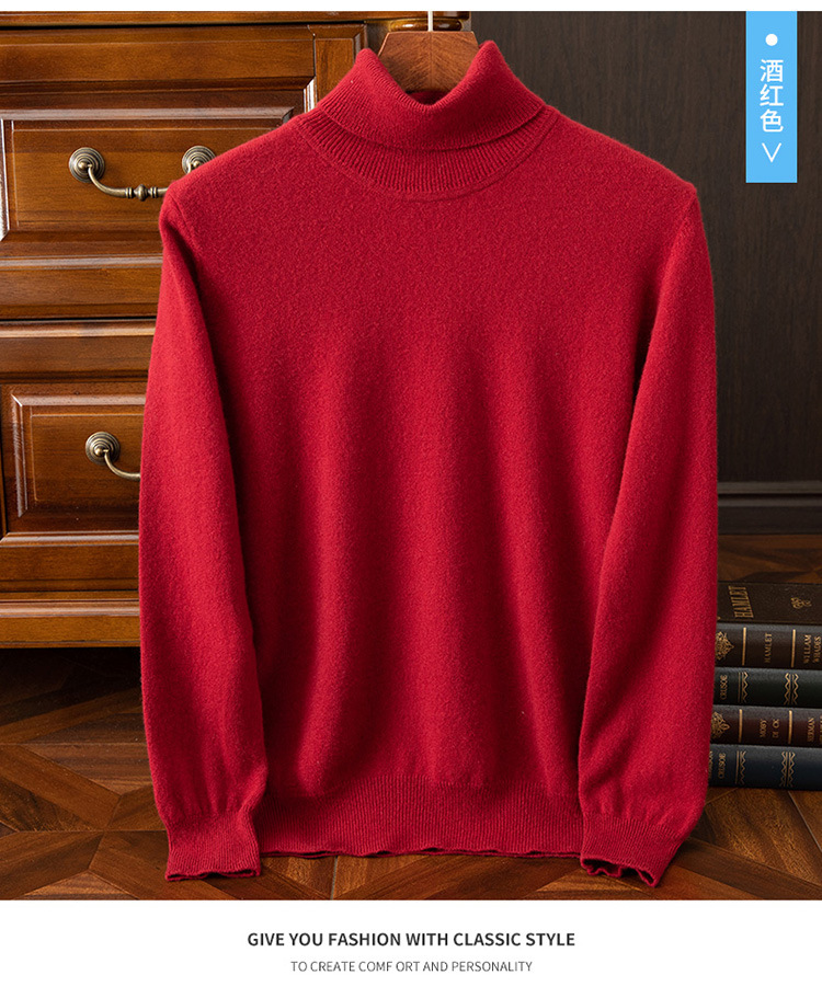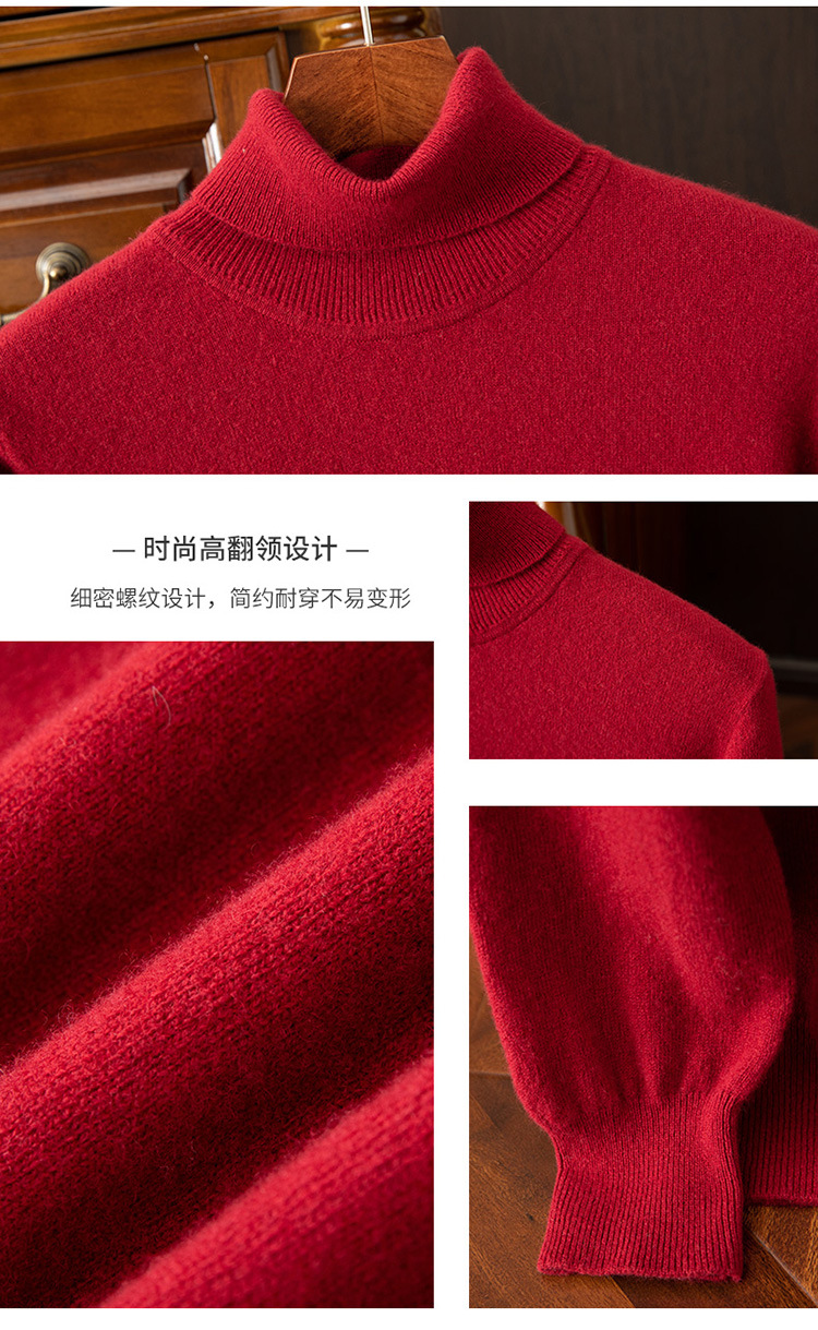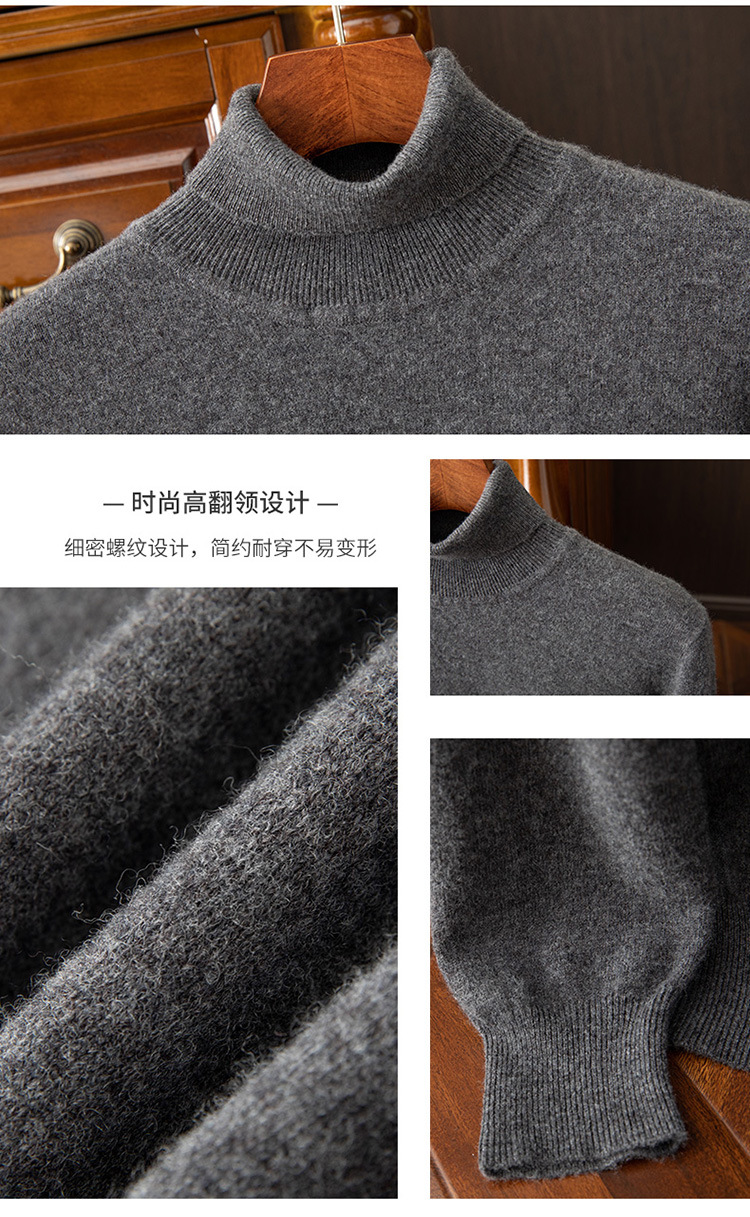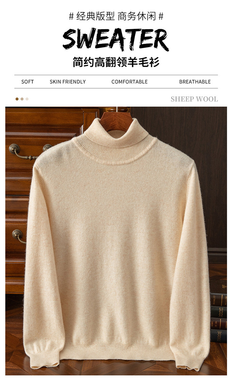 红览 100%纯羊毛衫男士高领宽松套头毛衣NH02