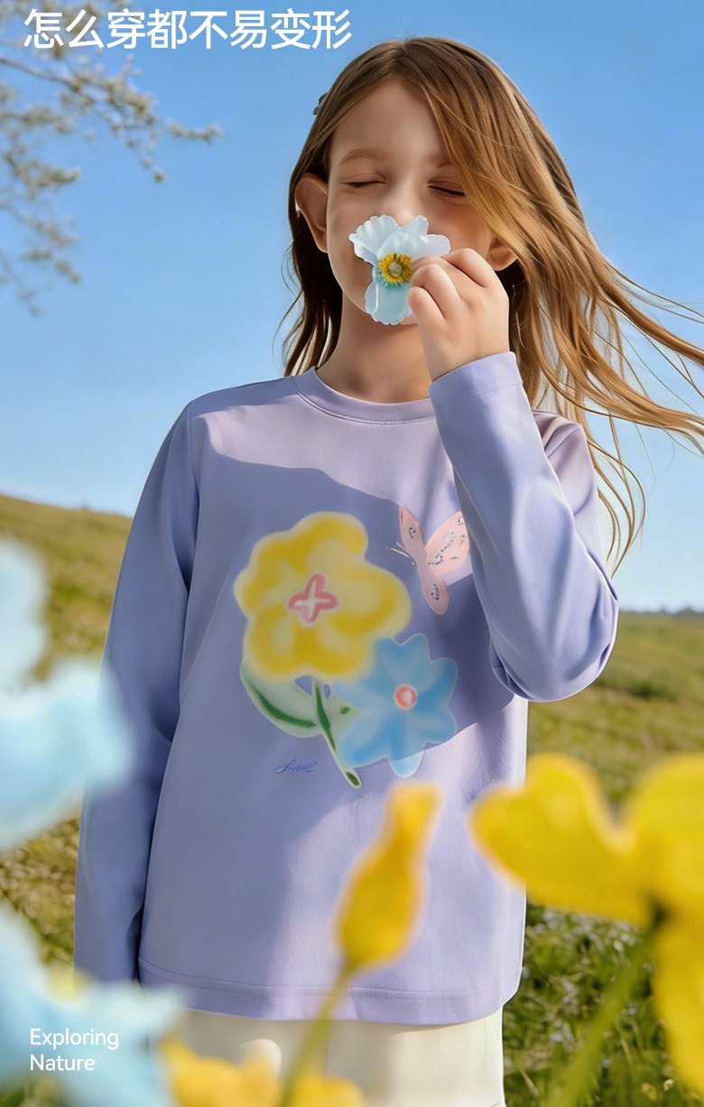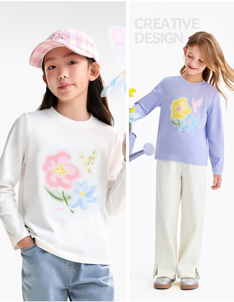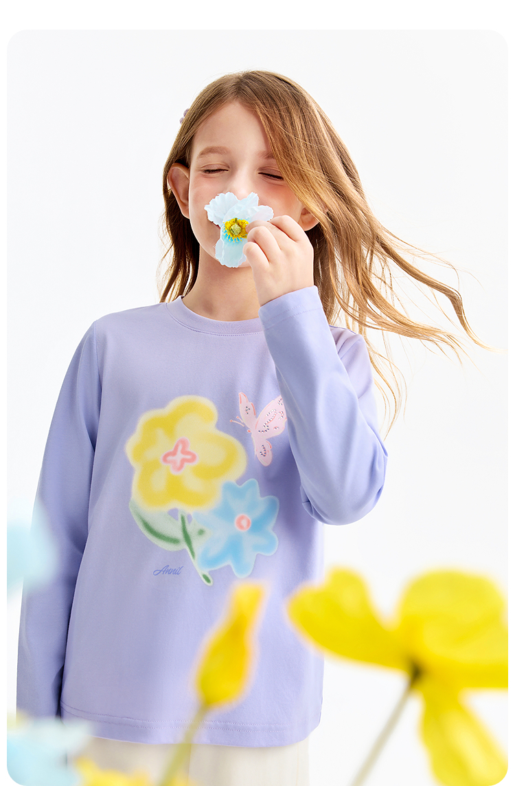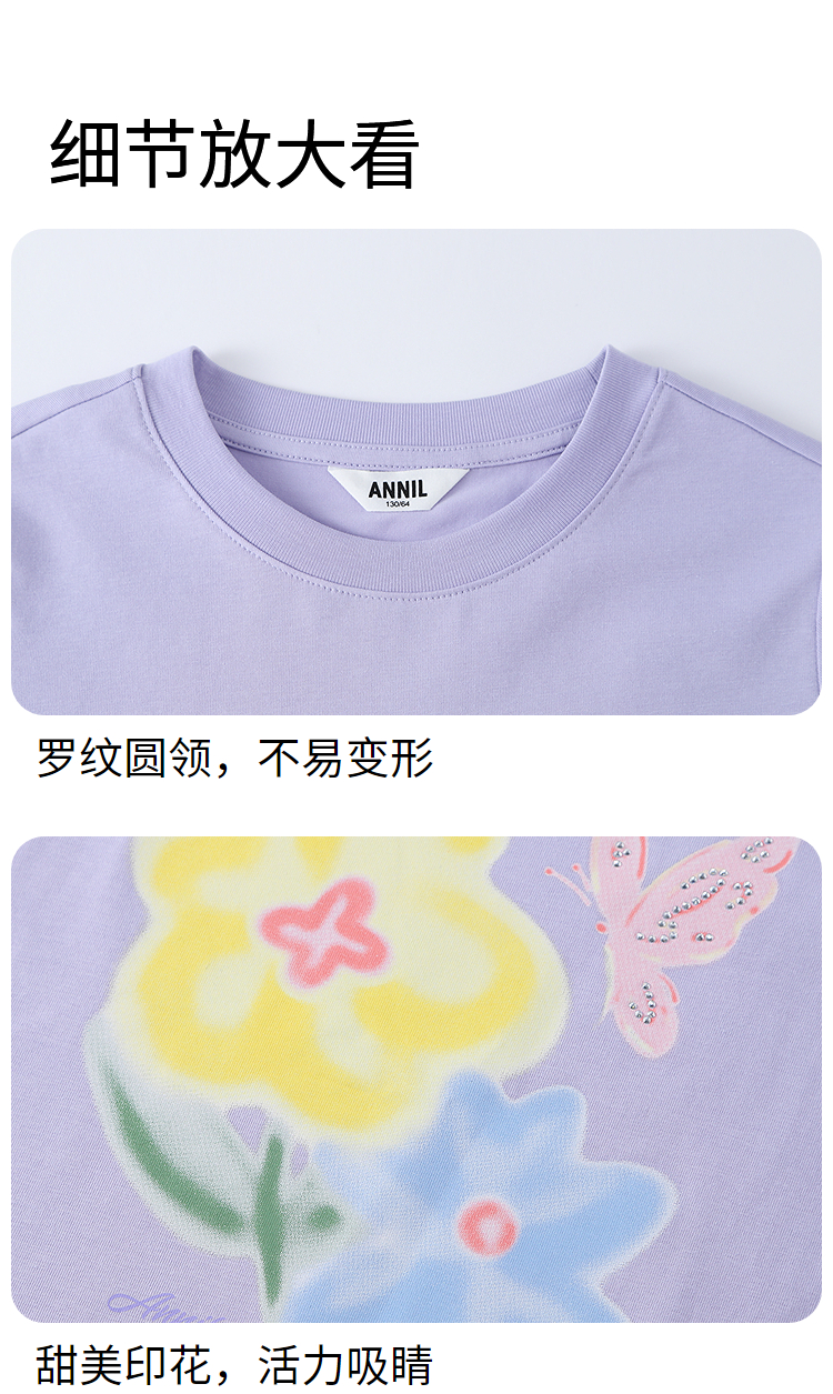 女童圆领长袖针织衫春季新款安奈儿童装EG611576