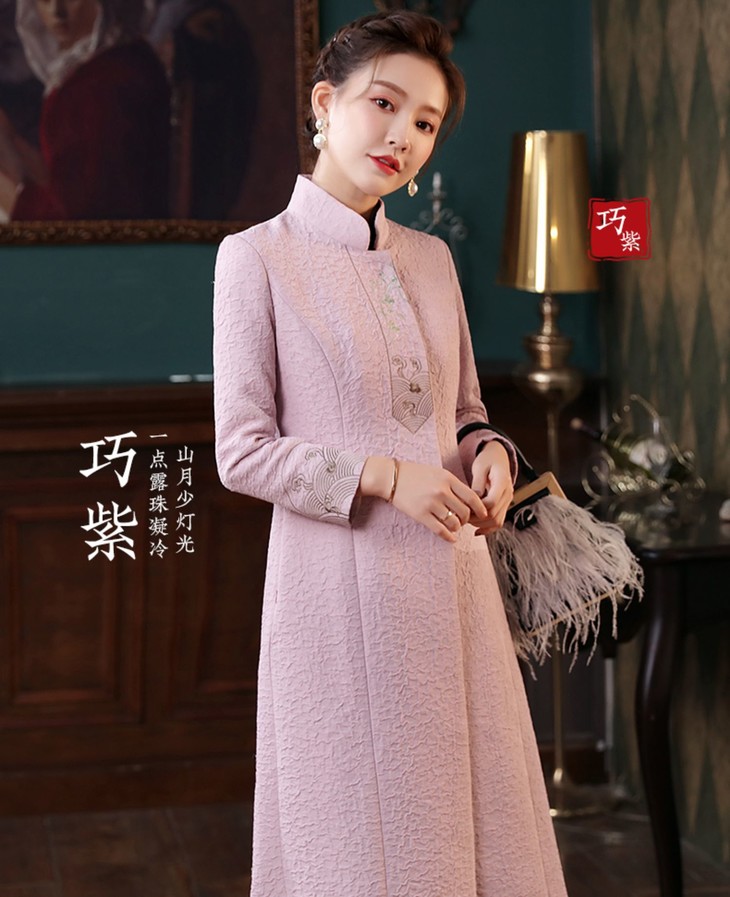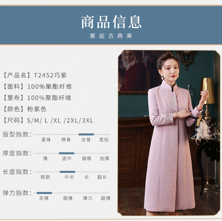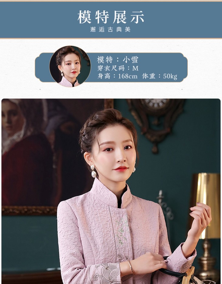 XGT2452冬季新款改良复古提花文艺绣花民族风唐装旗袍大衣