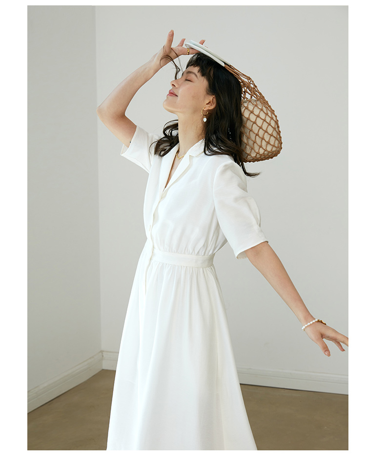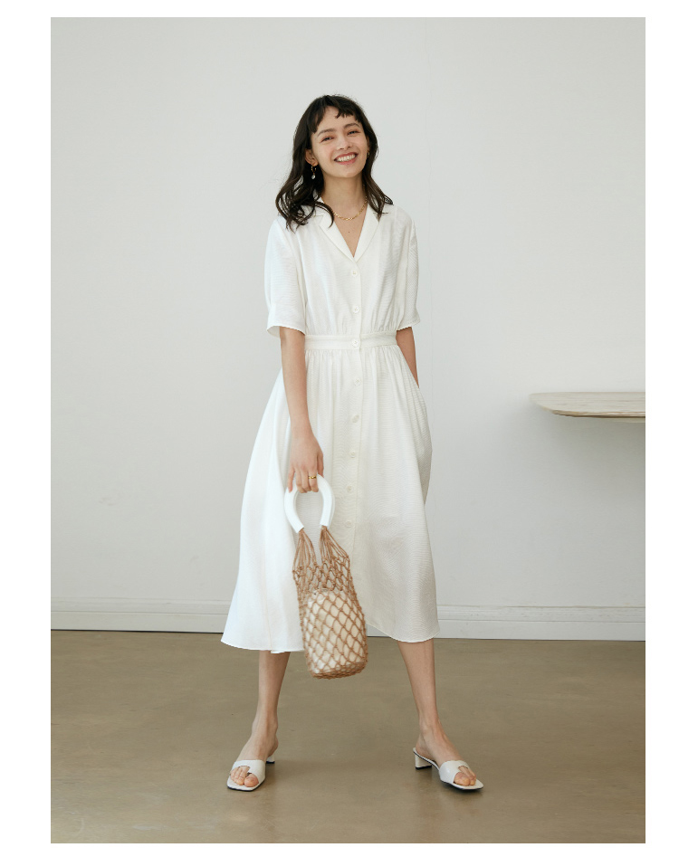 搭配一双同色系高跟鞋,整体简约素净,大气美丽