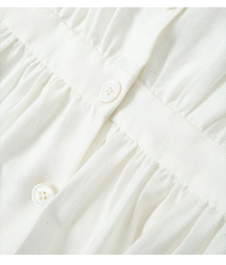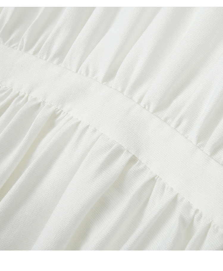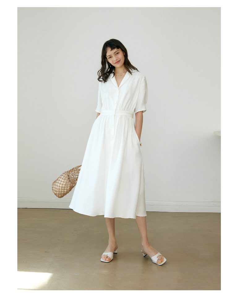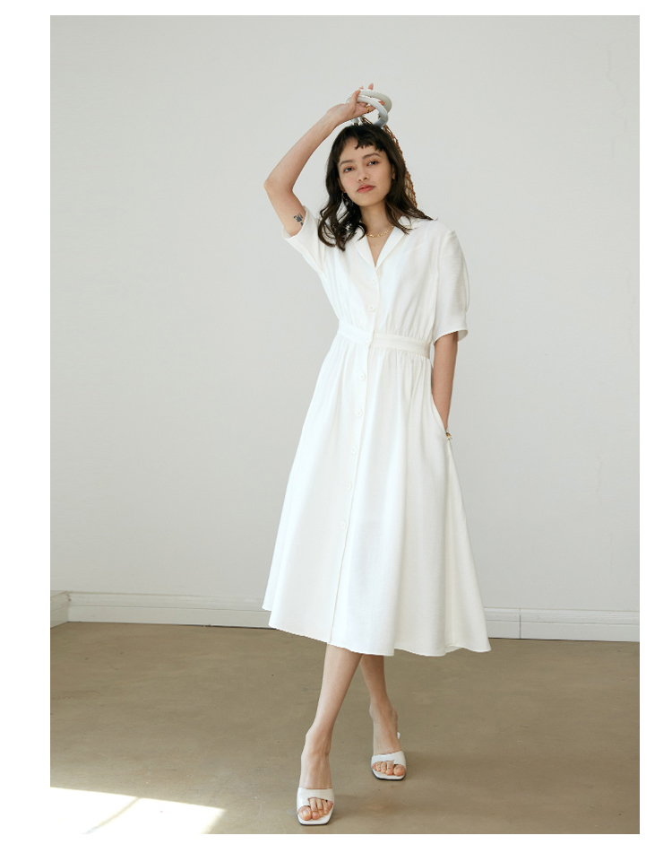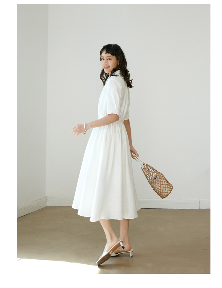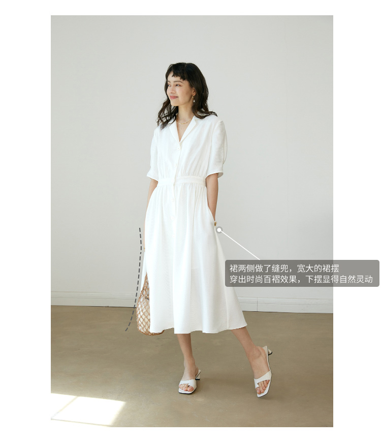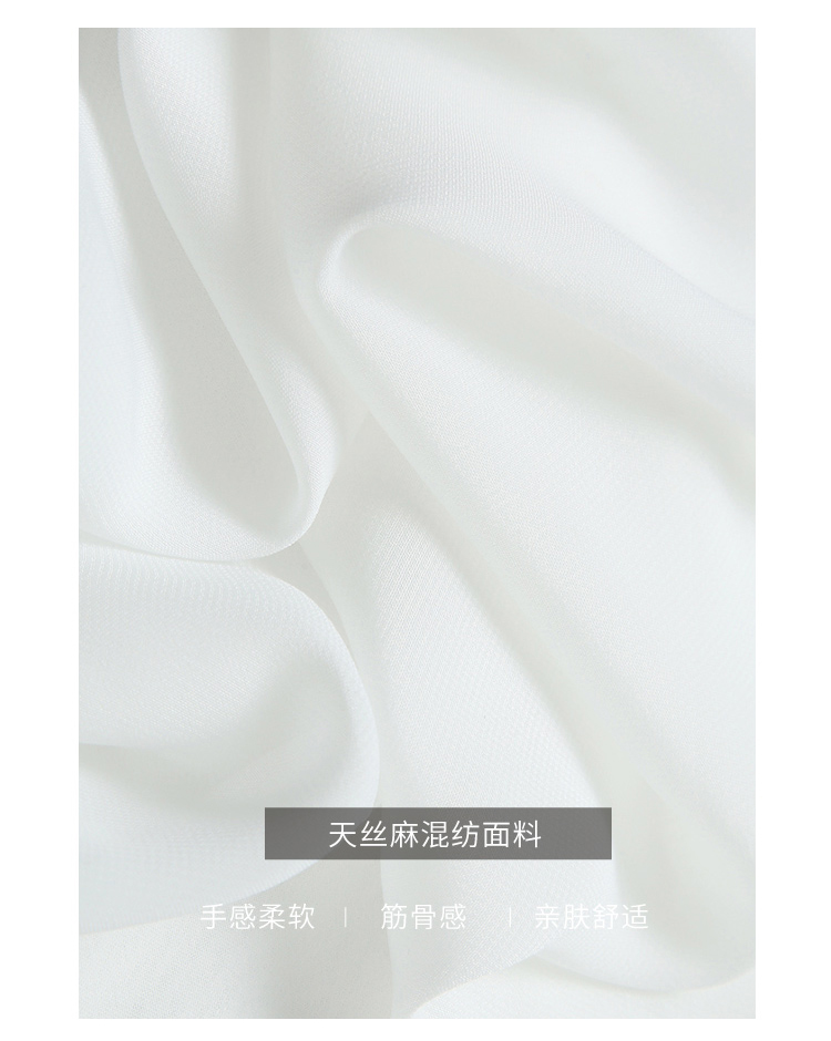 腰部收腰设计,与褶皱形成鲜明的对比,更显腰细不挑人