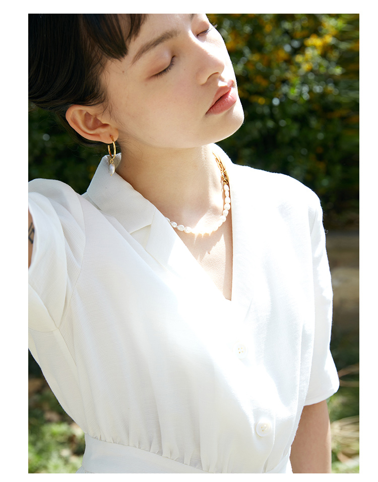 小翻领结合V领的设计,拉长了颈部线条,大气又不失精致