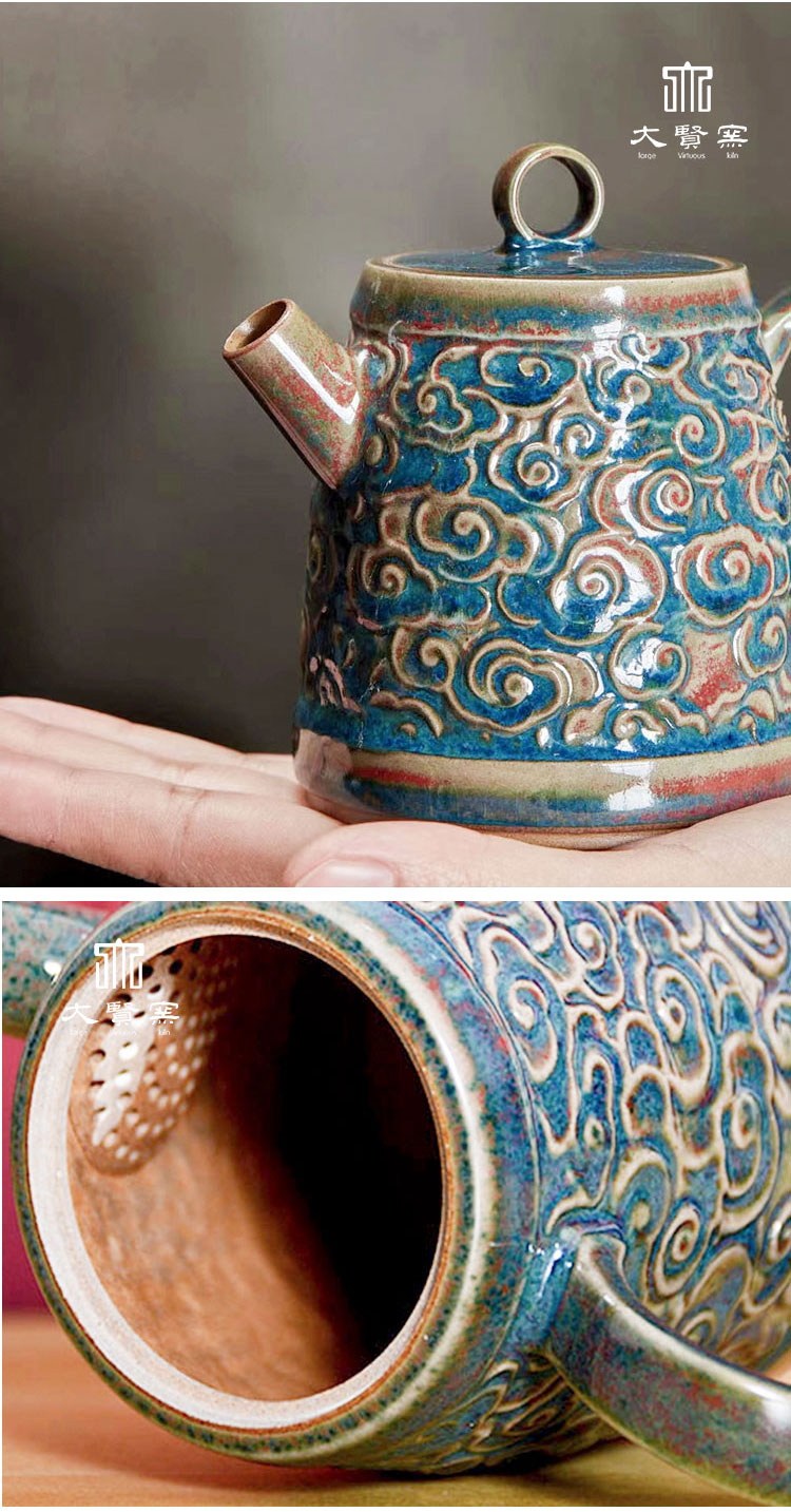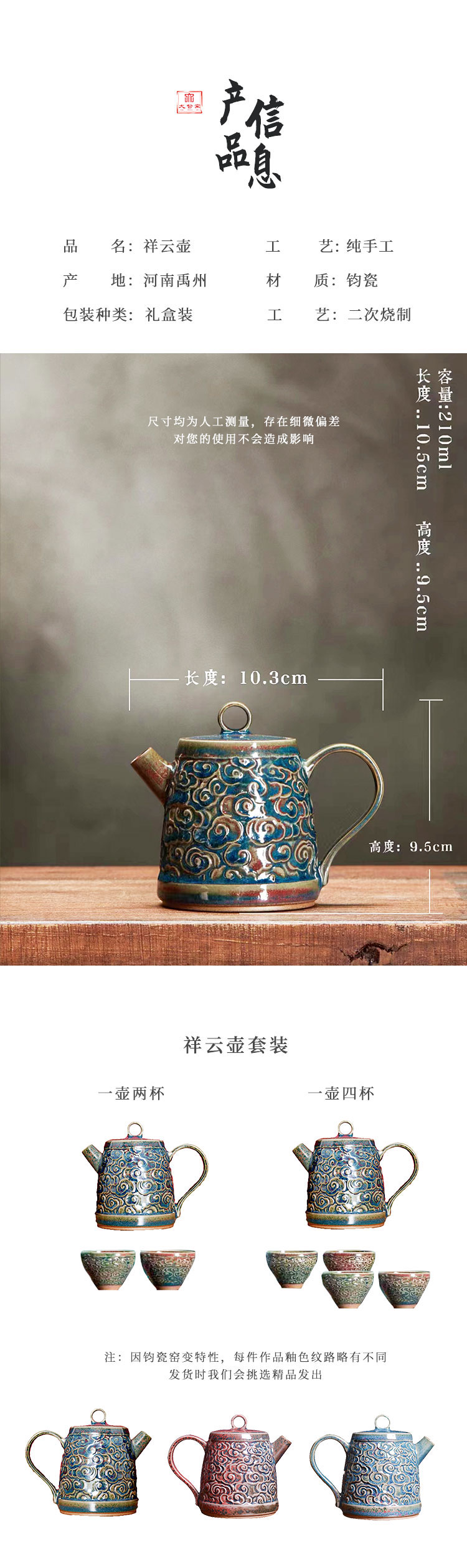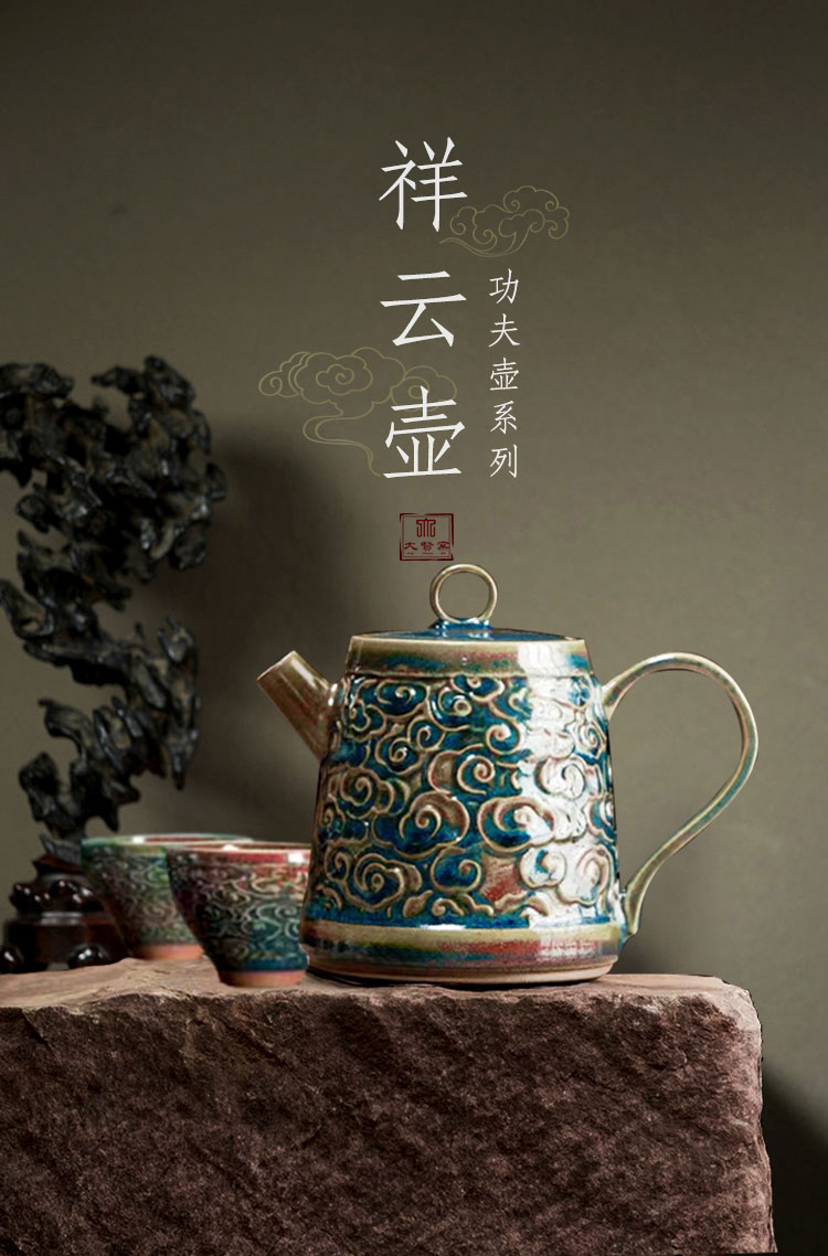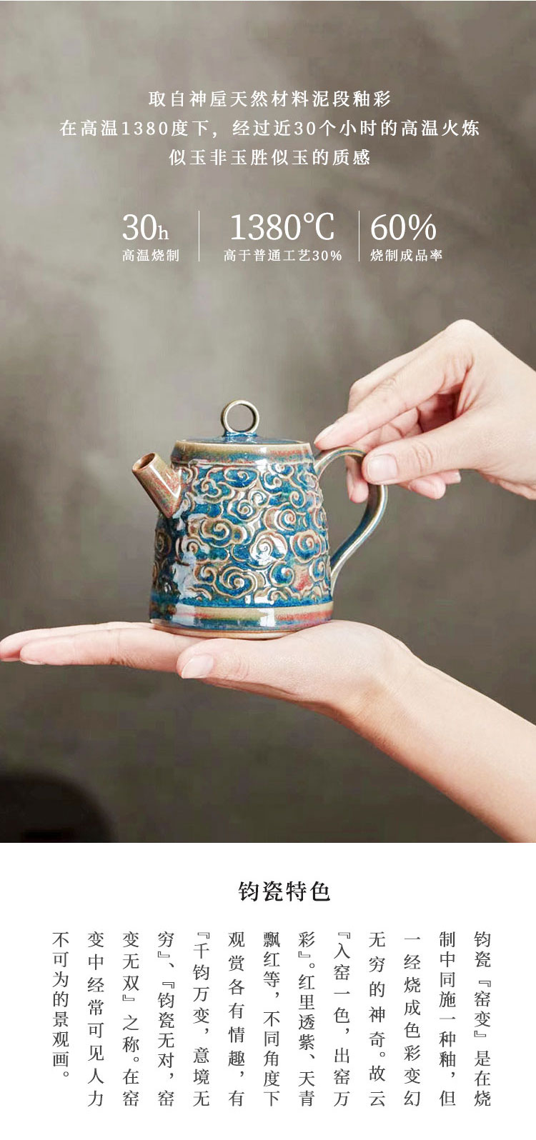 神垕钧瓷大贤窑于大鹏祥云壶钧瓷窑变套装整套纯手工