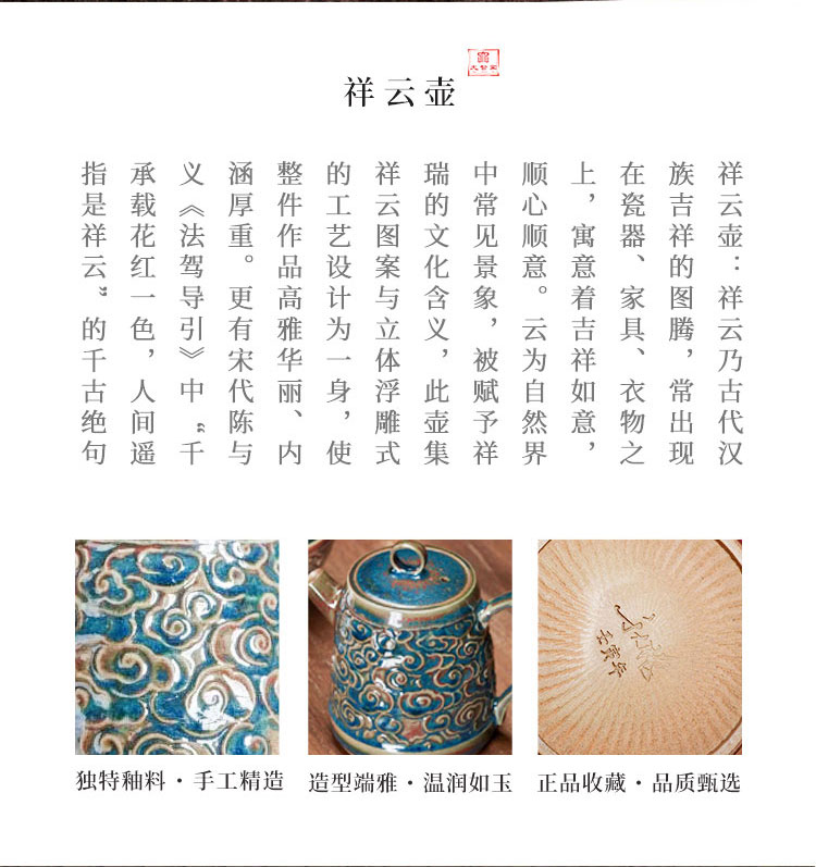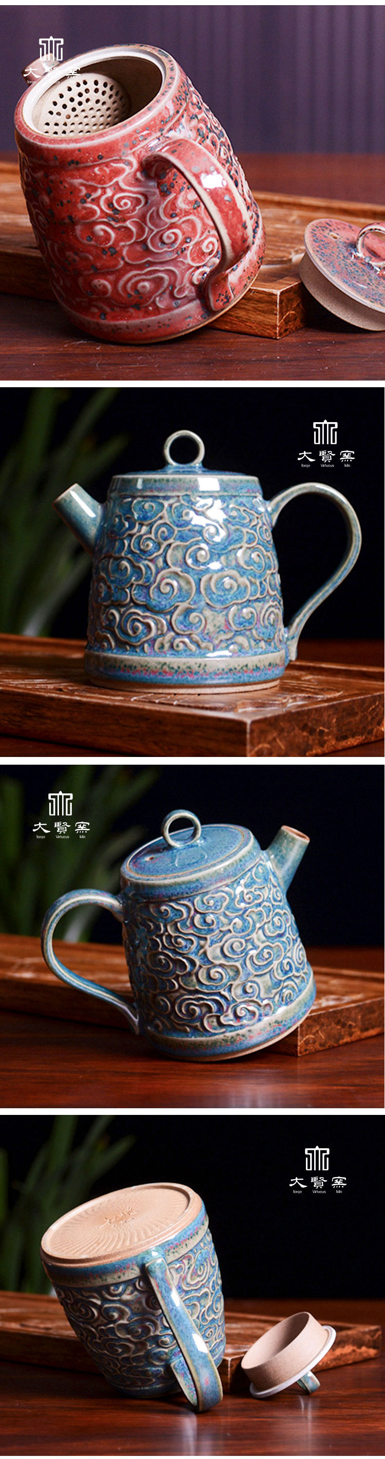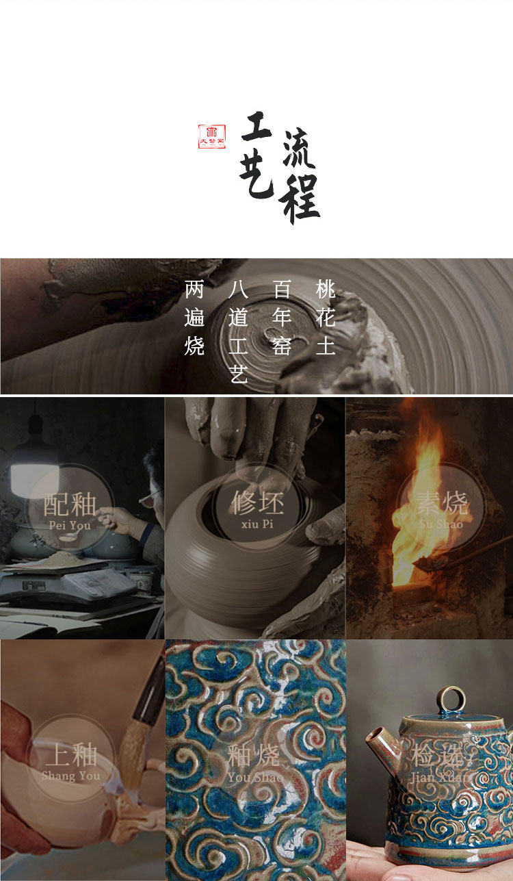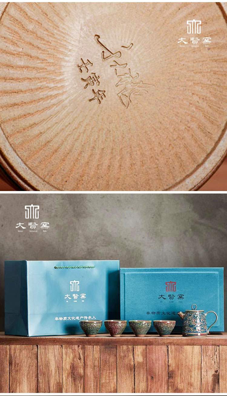 神垕钧瓷大贤窑于大鹏祥云壶钧瓷窑变套装整套纯手工