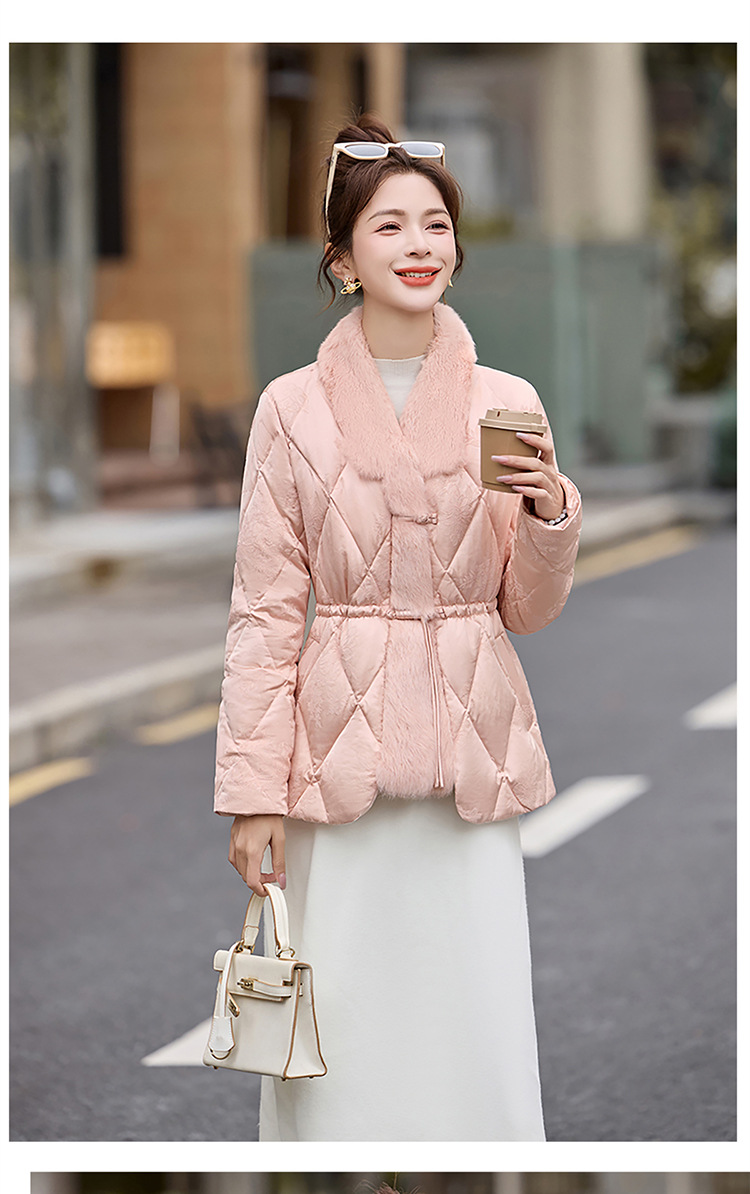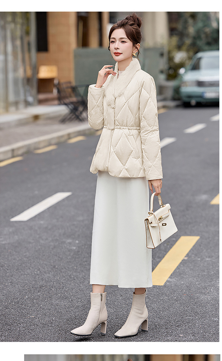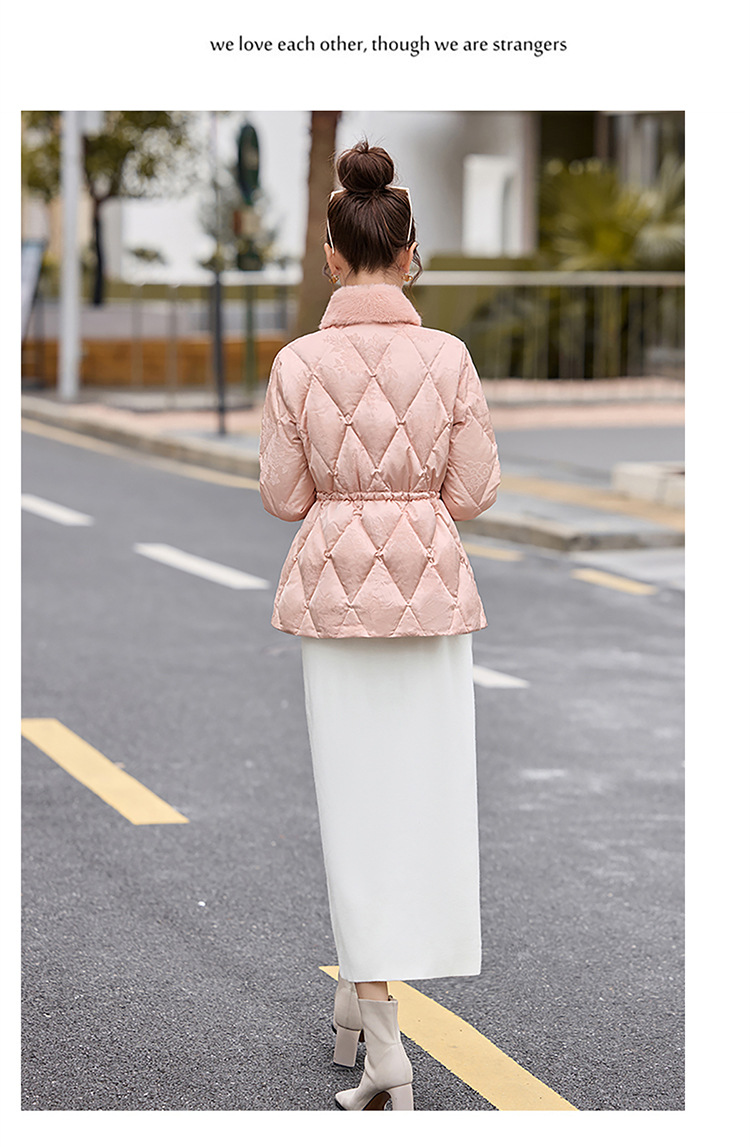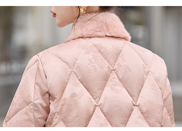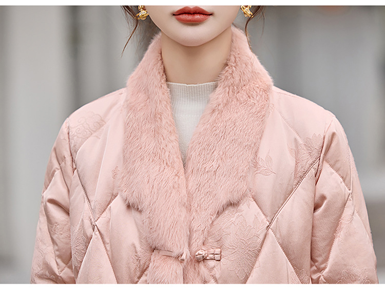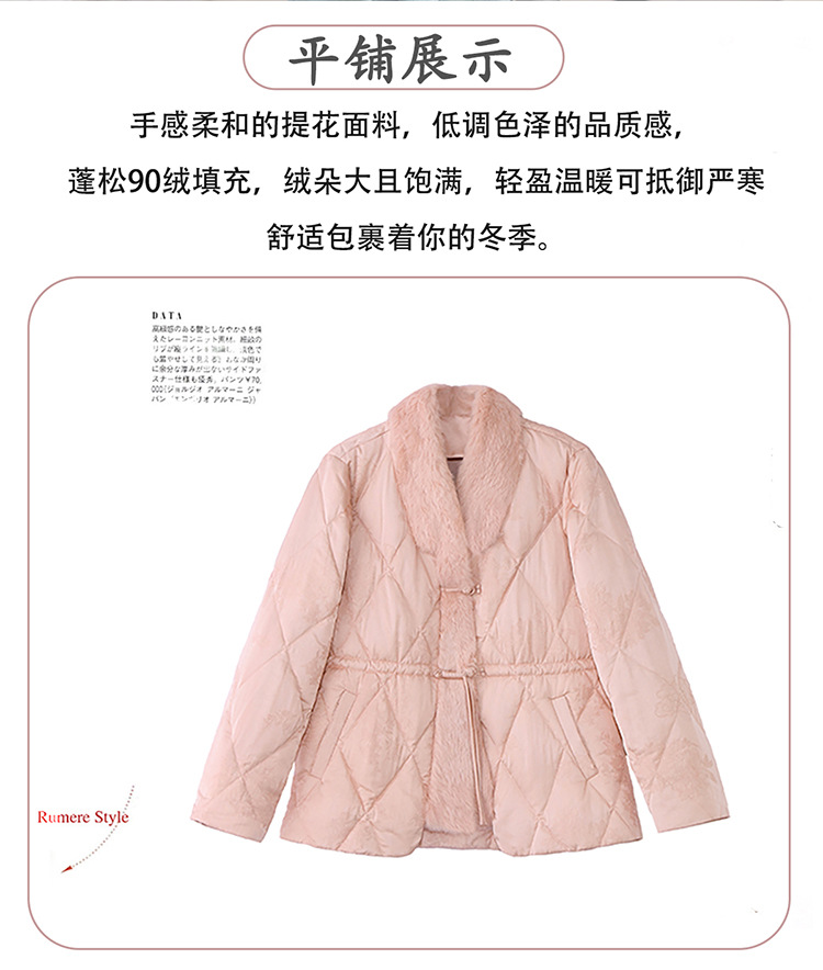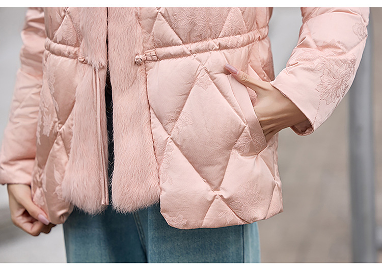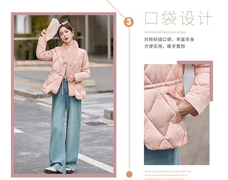 HR YJH99858新中式国风羽绒服V领提花修身白鸭绒羽绒外套 商品图4