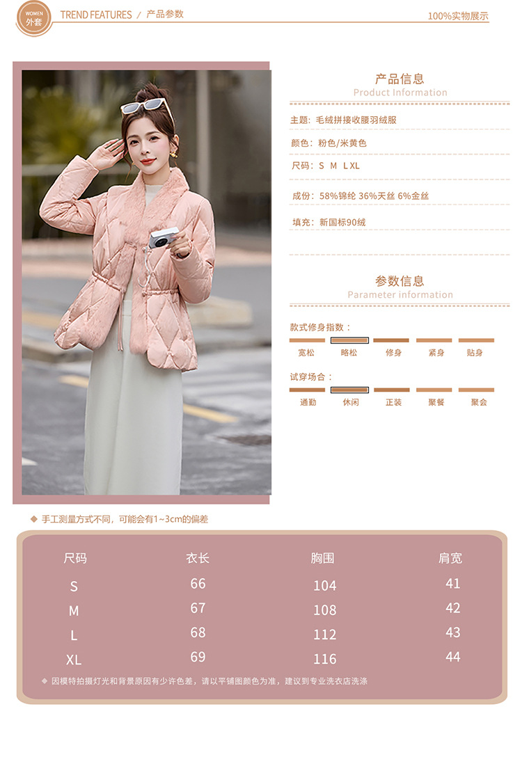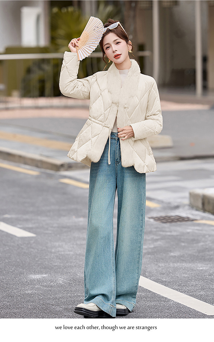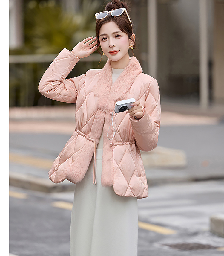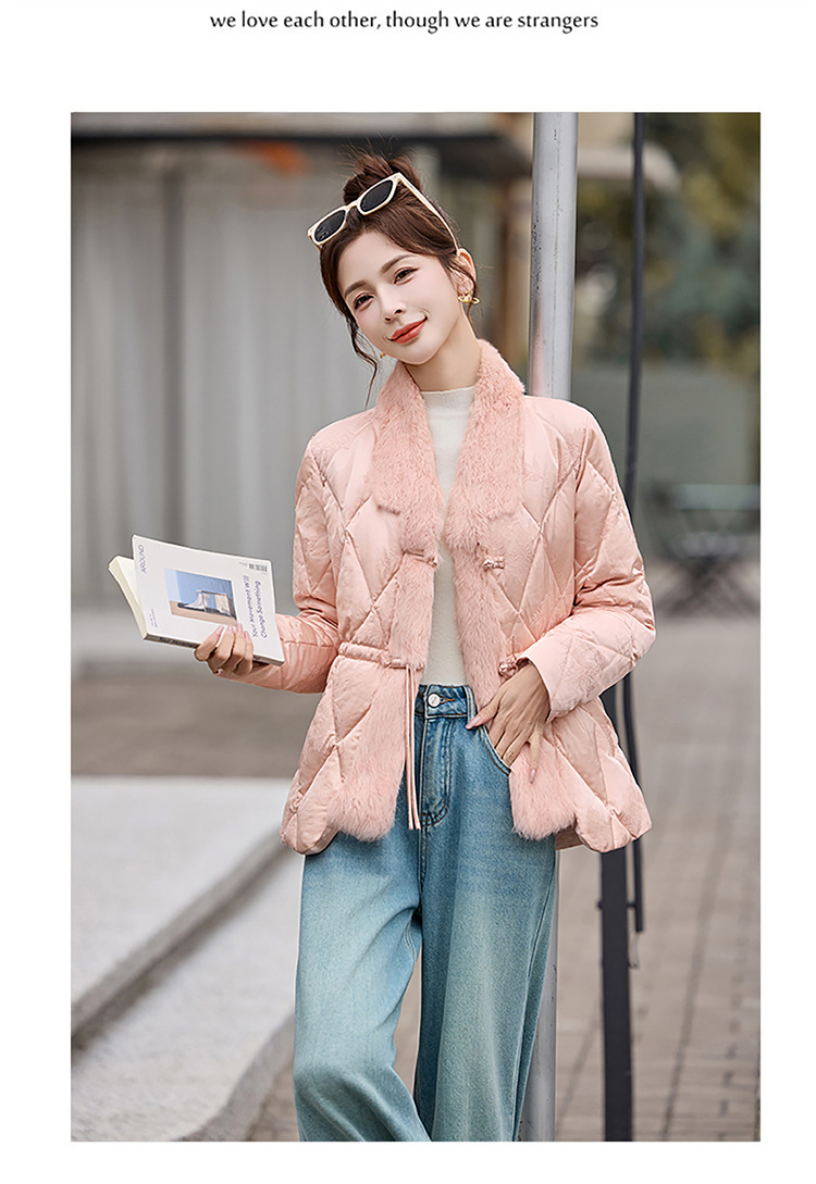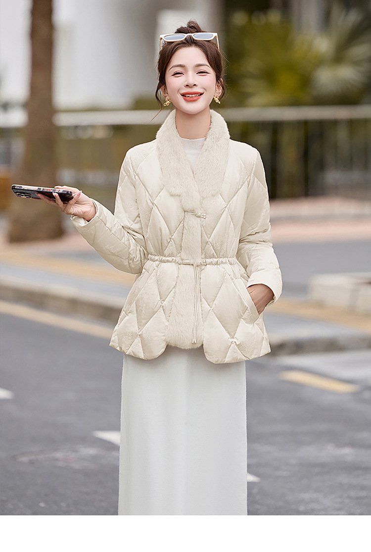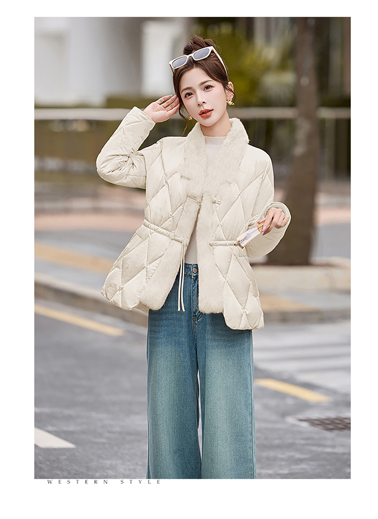 HR YJH99858新中式国风羽绒服V领提花修身白鸭绒羽绒外套 商品图4