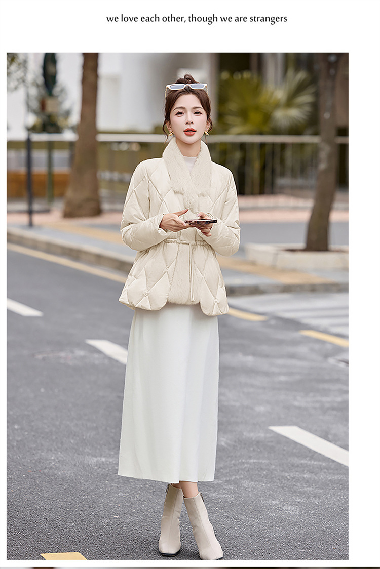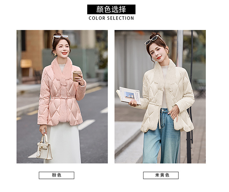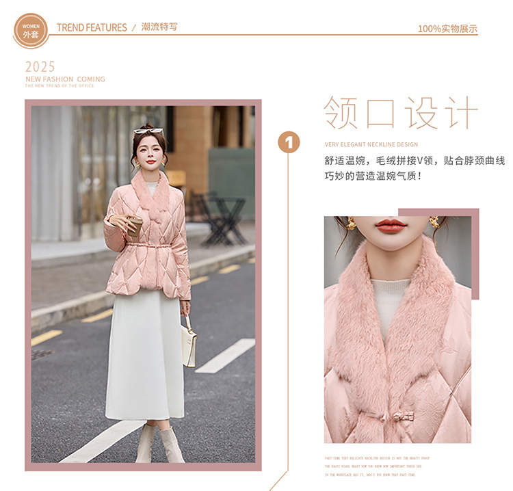 HR YJH99858新中式国风羽绒服V领提花修身白鸭绒羽绒外套 商品图2
