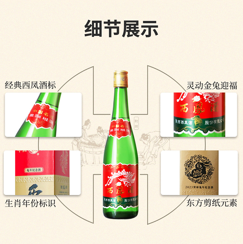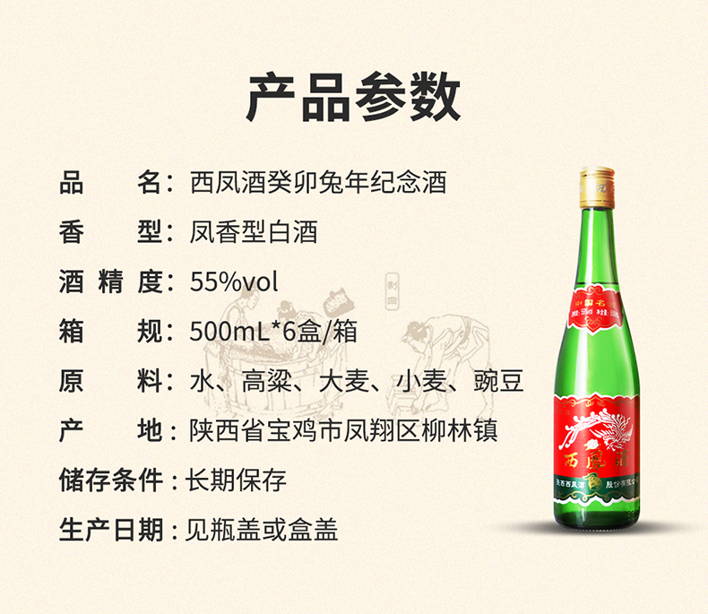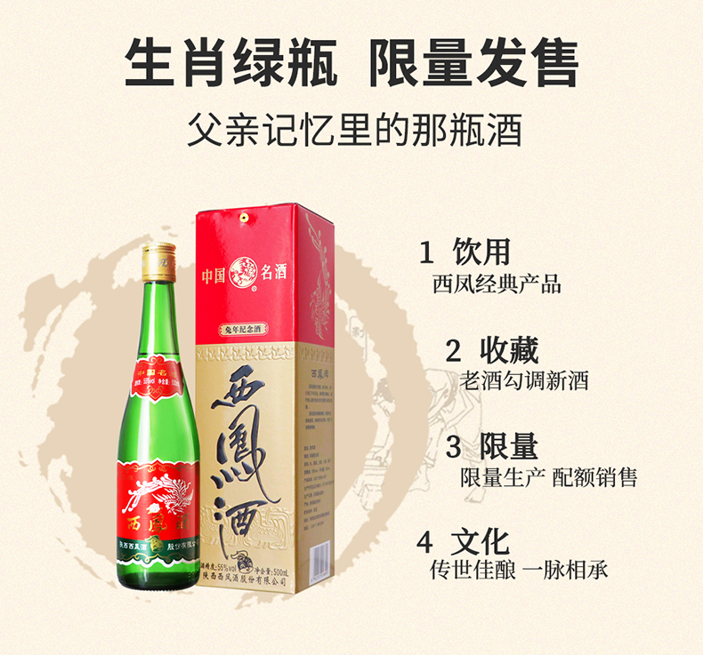 【酒厂官方直营】55度兔年生肖版绿瓶西凤酒盒装 500ml*6盒 整箱