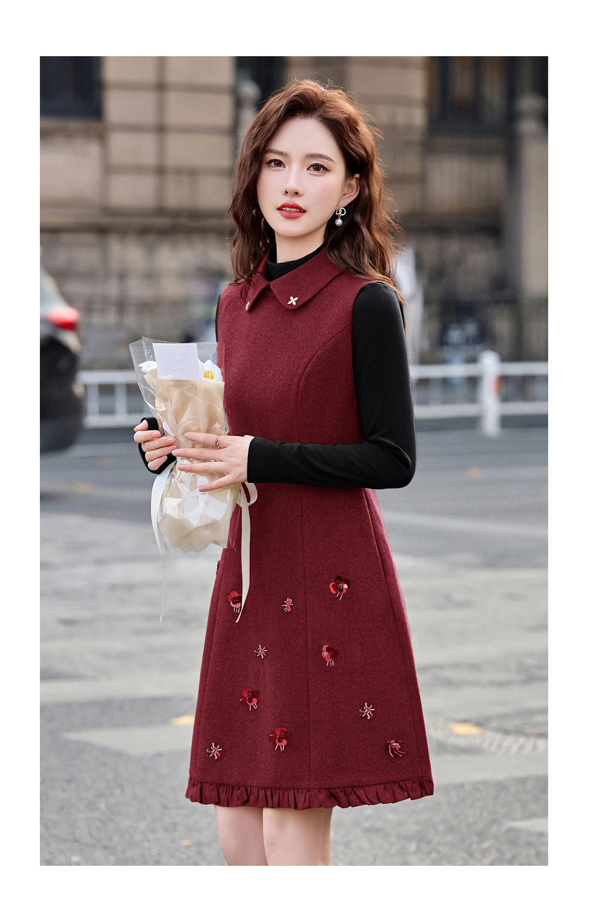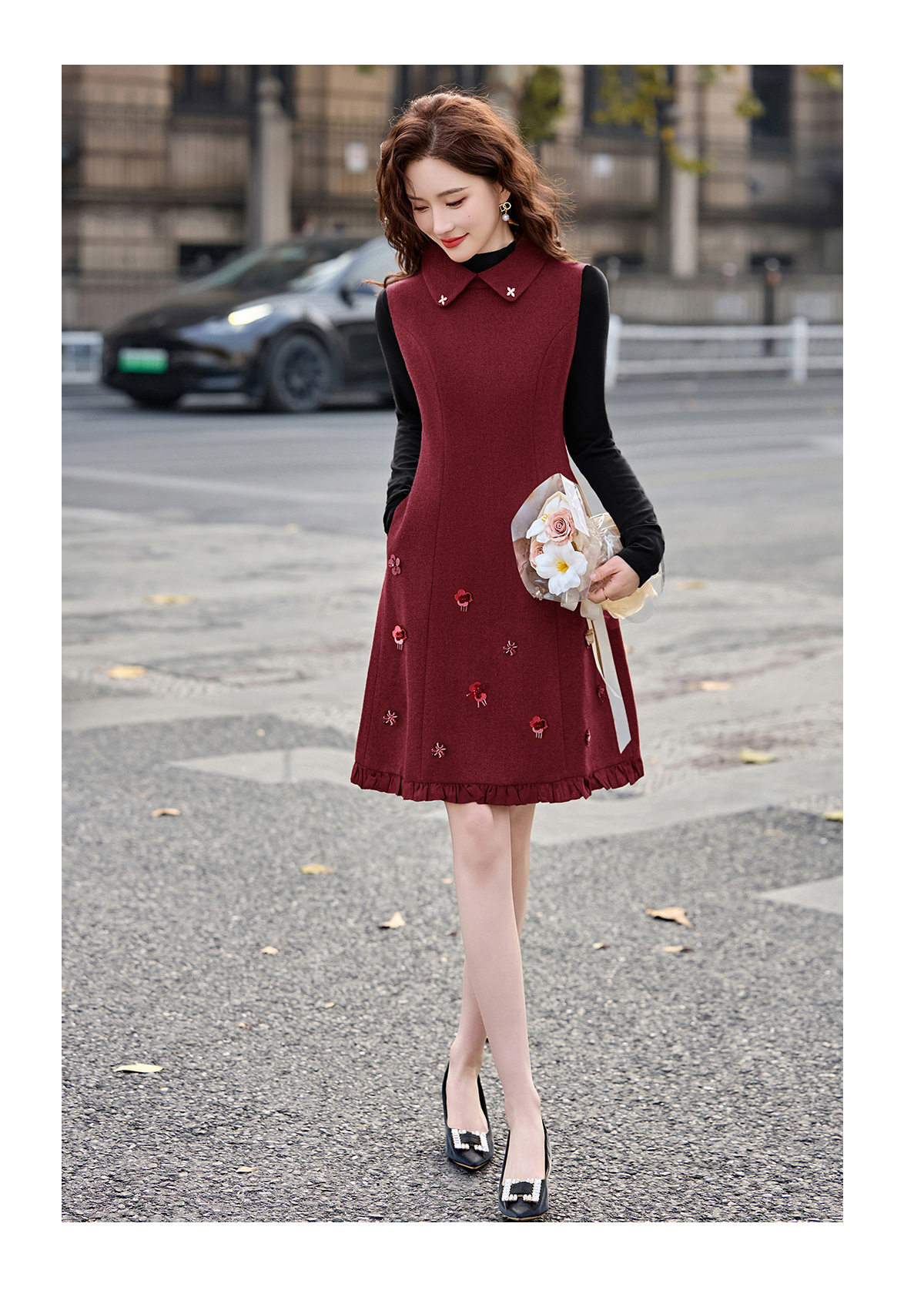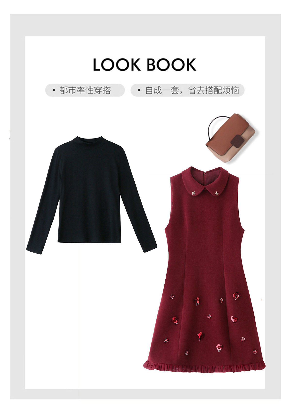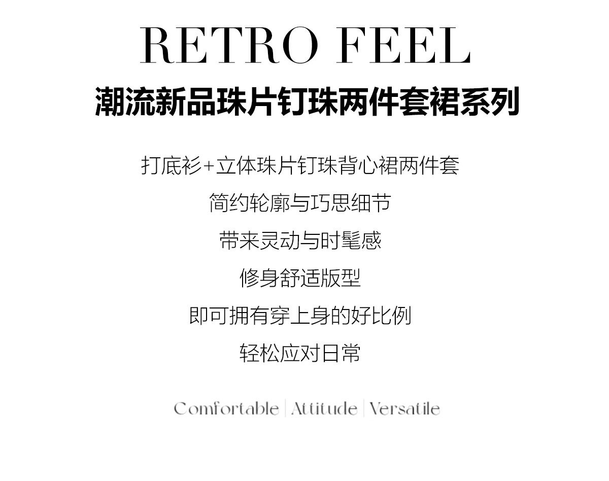 「自」全新升级【铂金会员330/天猫439/差价109】(99032)洛诗琳纯色针织衫+拼接翻领钉珠无袖背心裙两件套