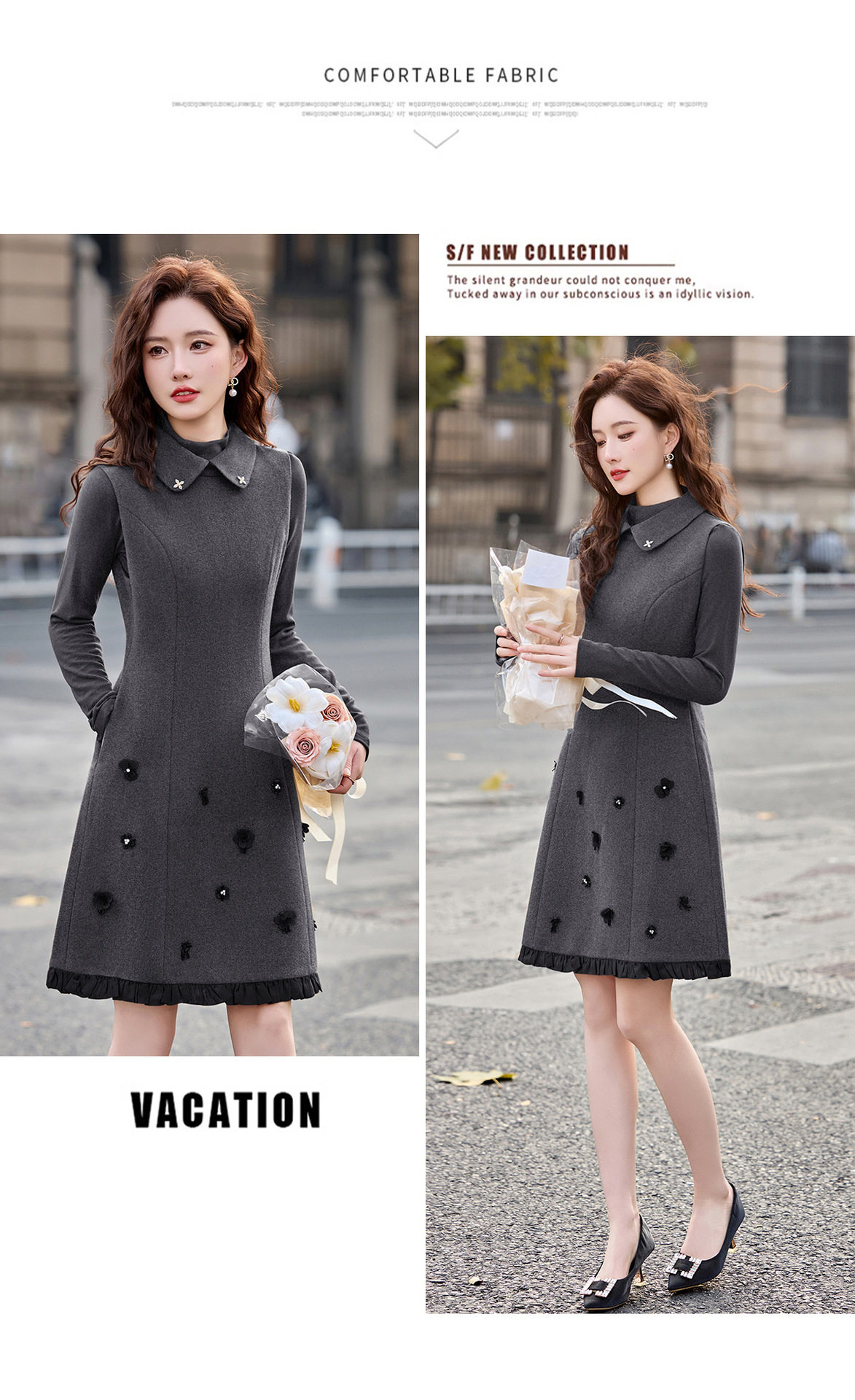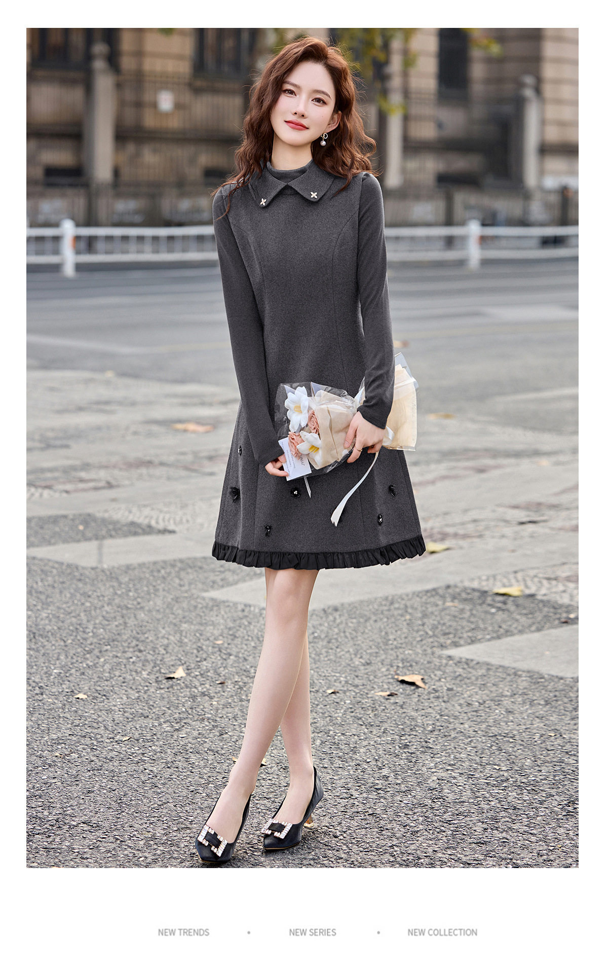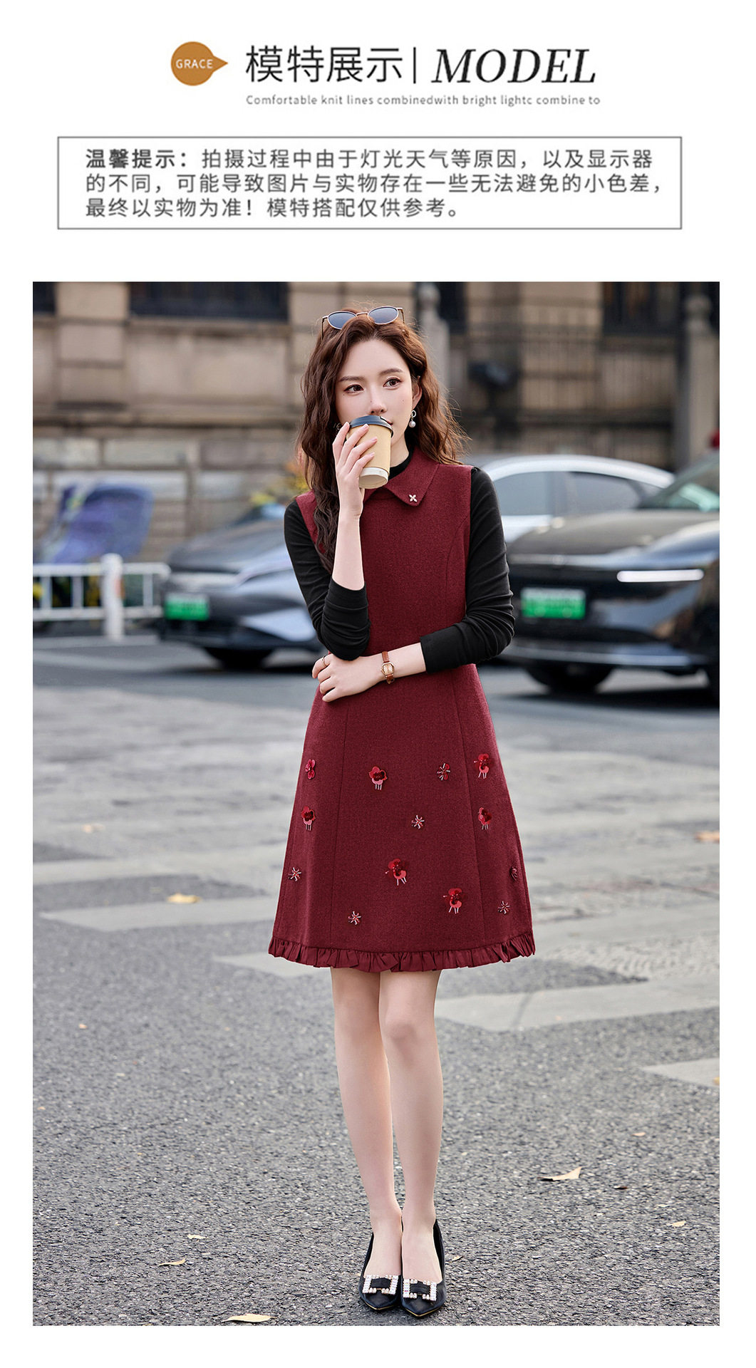 「自」全新升级【铂金会员330/天猫439/差价109】(99032)洛诗琳纯色针织衫+拼接翻领钉珠无袖背心裙两件套