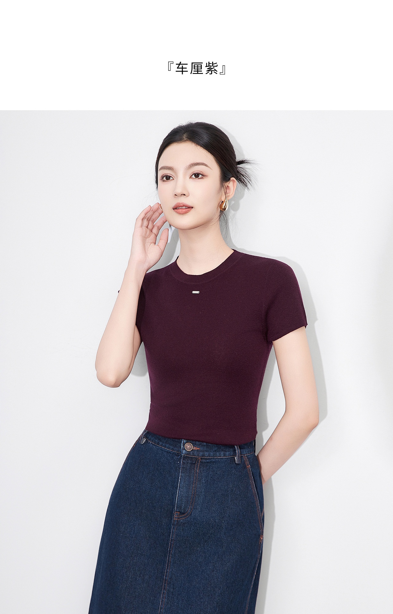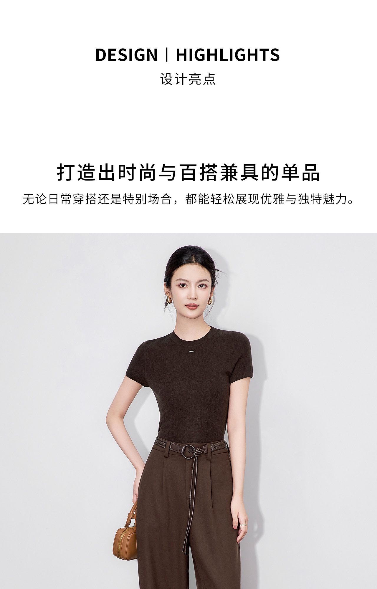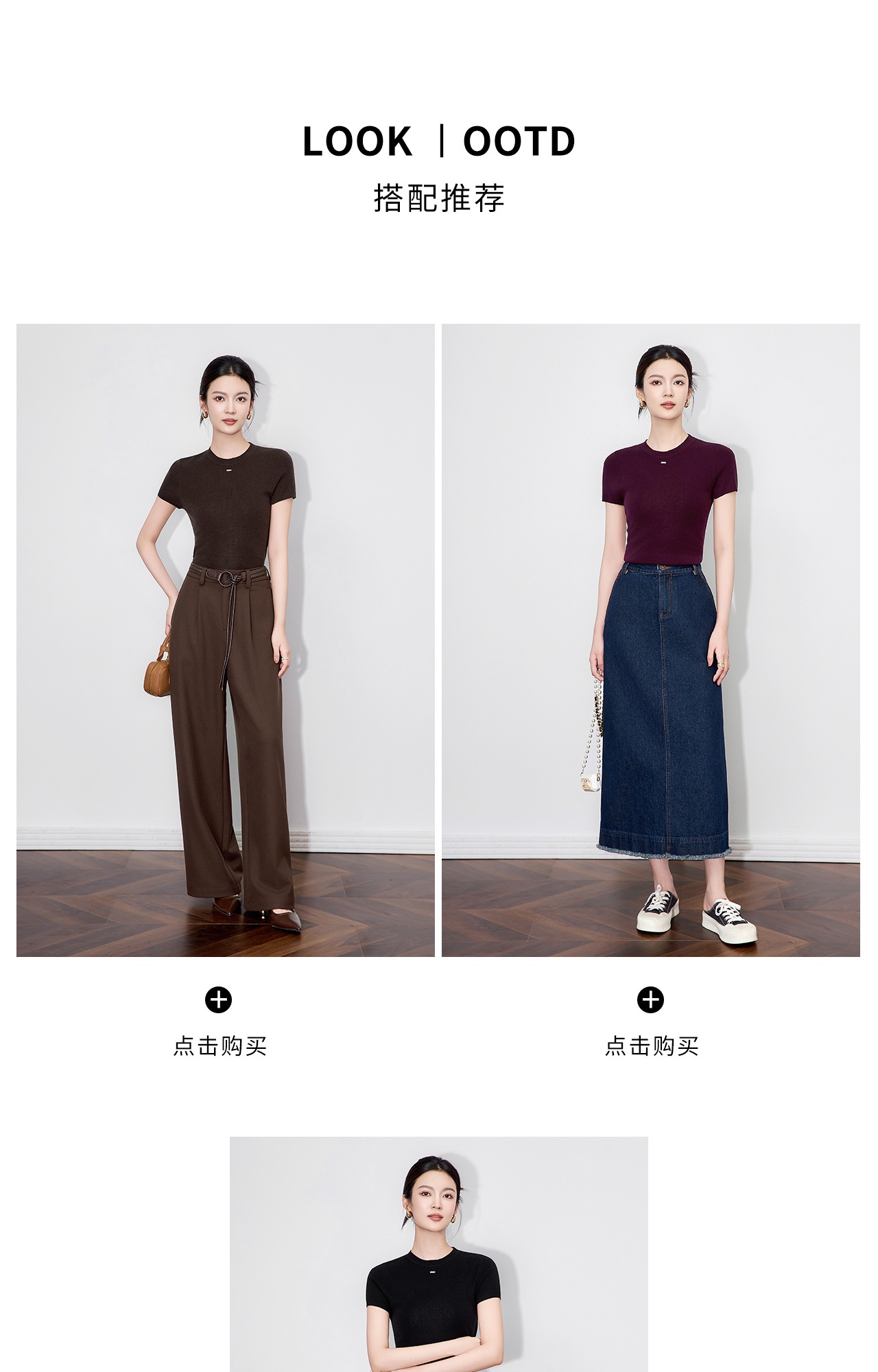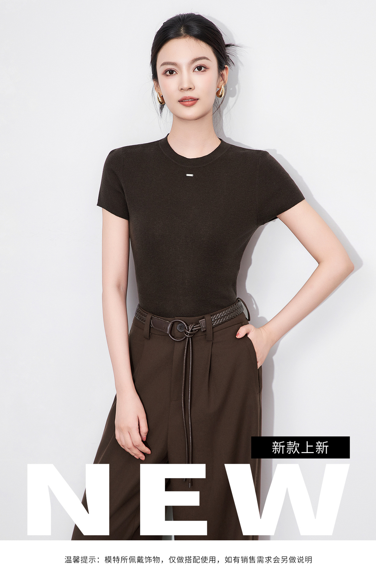 「高货wl」全新升级【铂金会员192/天猫259/差价67】(95520)洛诗琳舒适亲肤密织针织T恤2025早秋新款气质正肩显瘦上衣