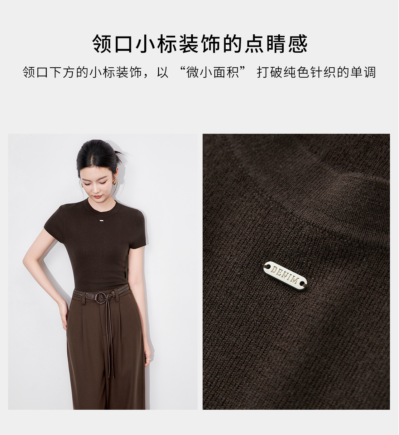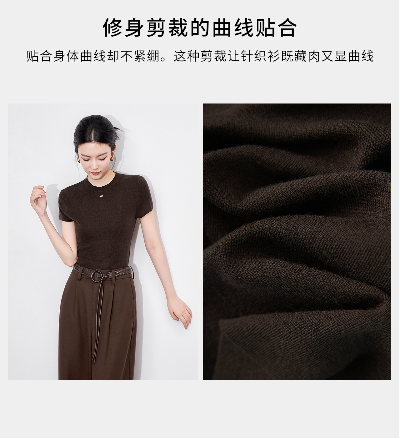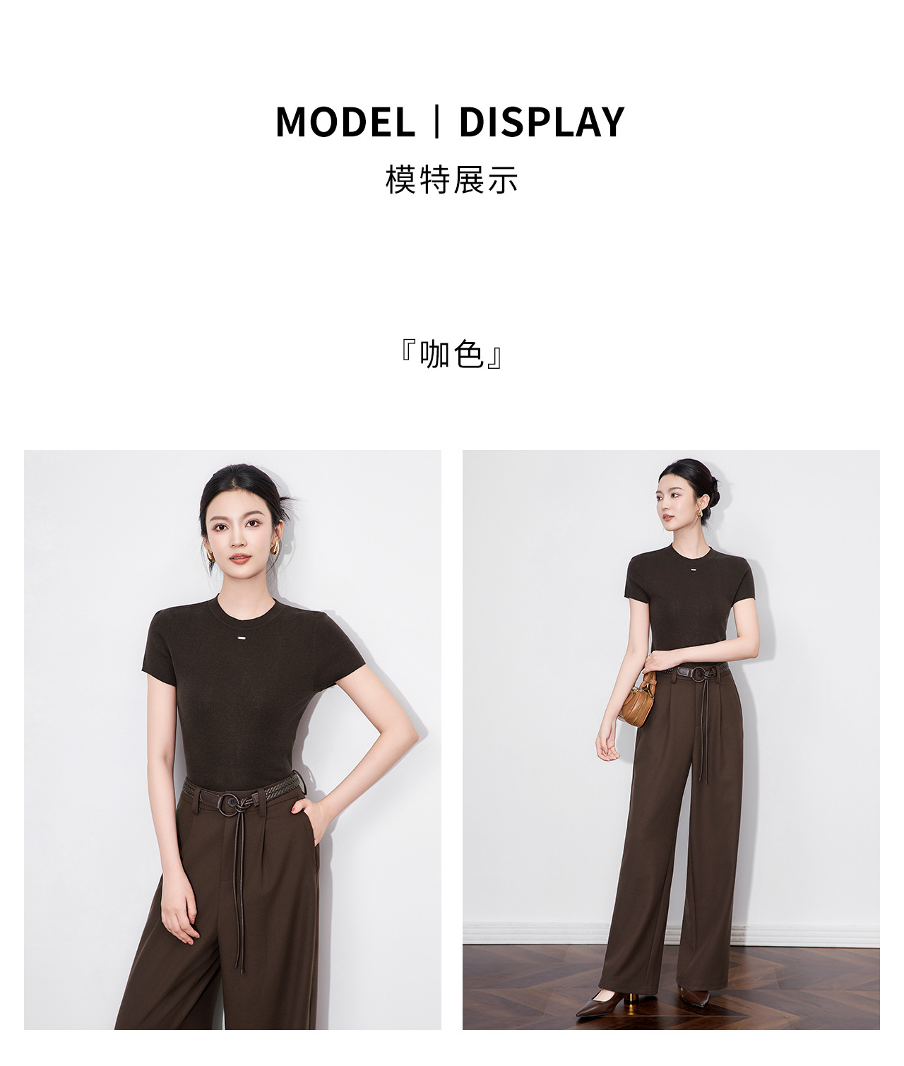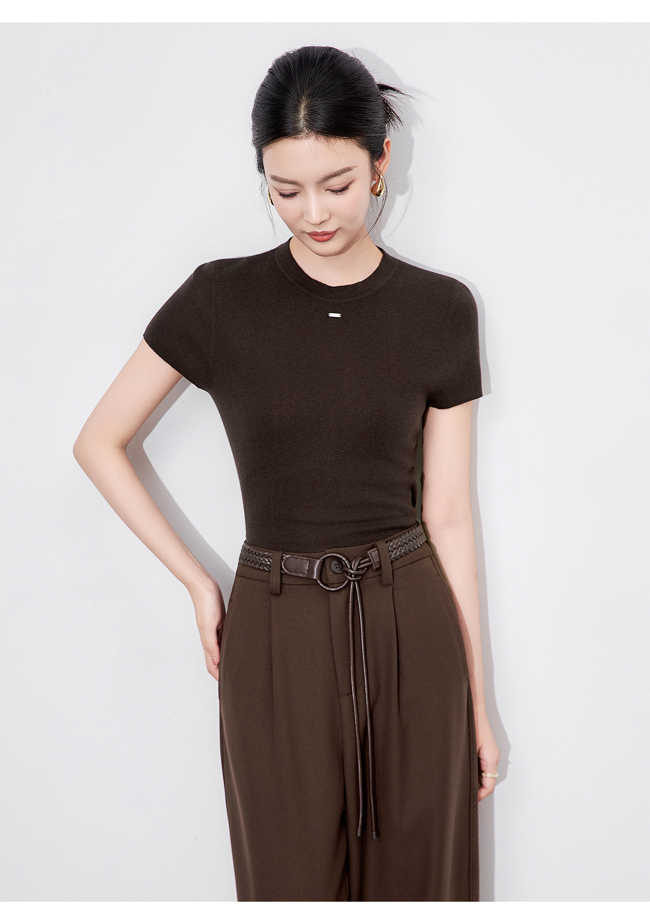 「高货wl」全新升级【铂金会员192/天猫259/差价67】(95520)洛诗琳舒适亲肤密织针织T恤2025早秋新款气质正肩显瘦上衣