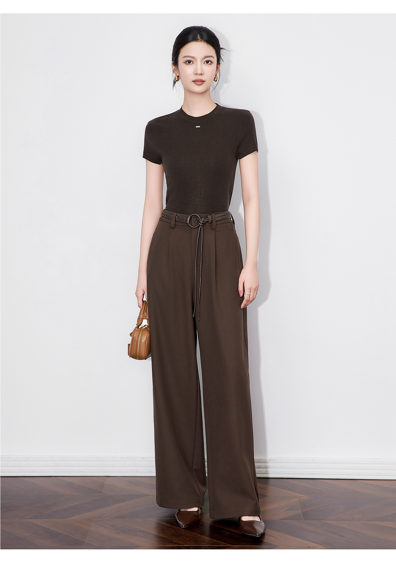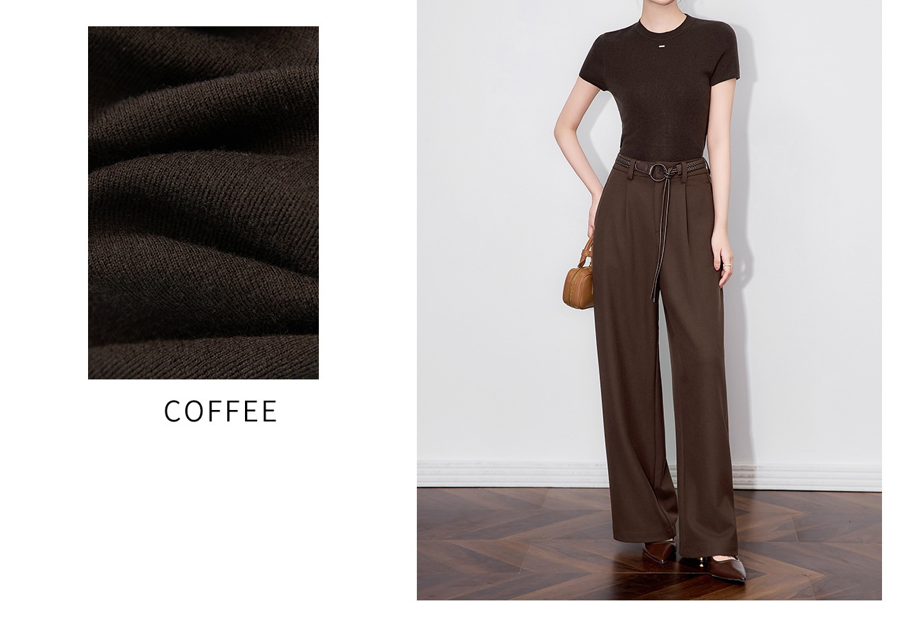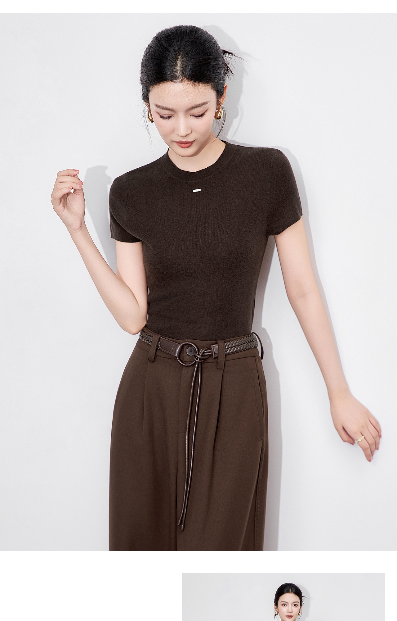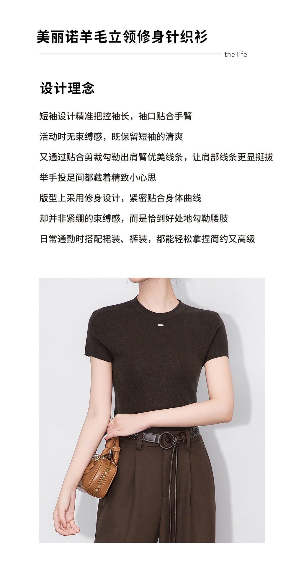 「高货wl」全新升级【铂金会员192/天猫259/差价67】(95520)洛诗琳舒适亲肤密织针织T恤2025早秋新款气质正肩显瘦上衣