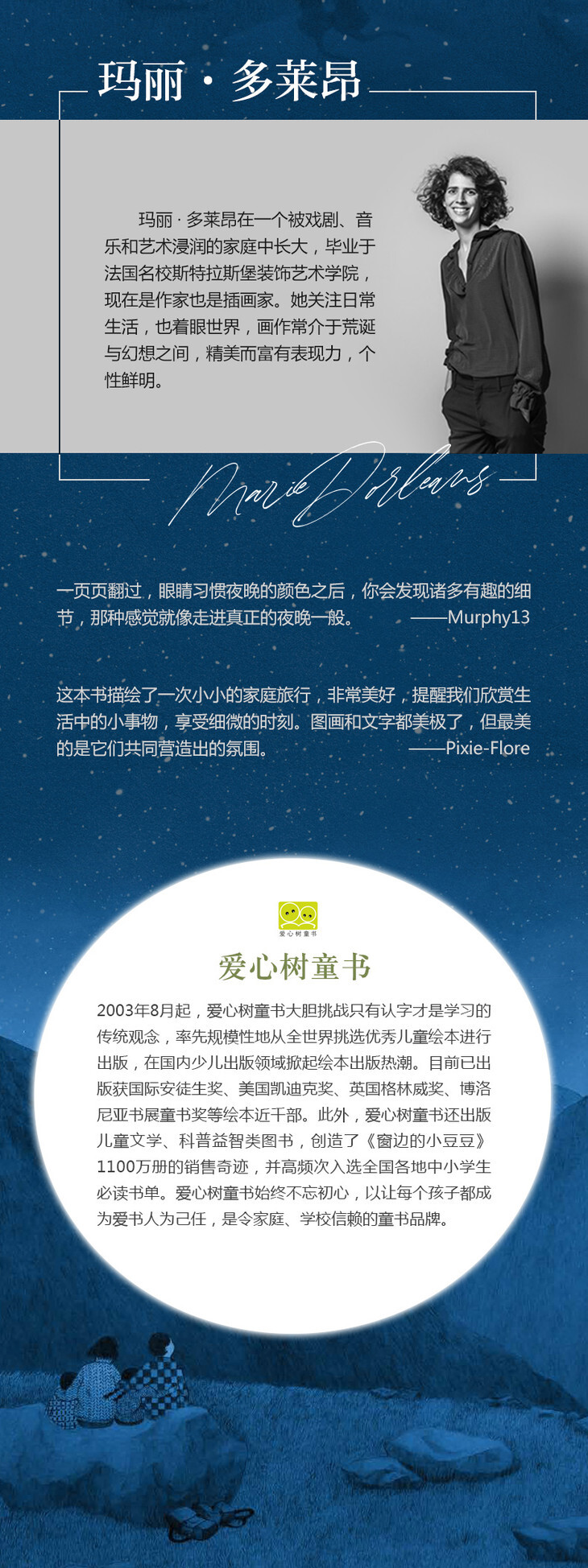 作者准确地呈现出夜晚的声音、寂静、气味……几乎让我们的感觉放大了十倍!结尾***美好。——ptitemarjo