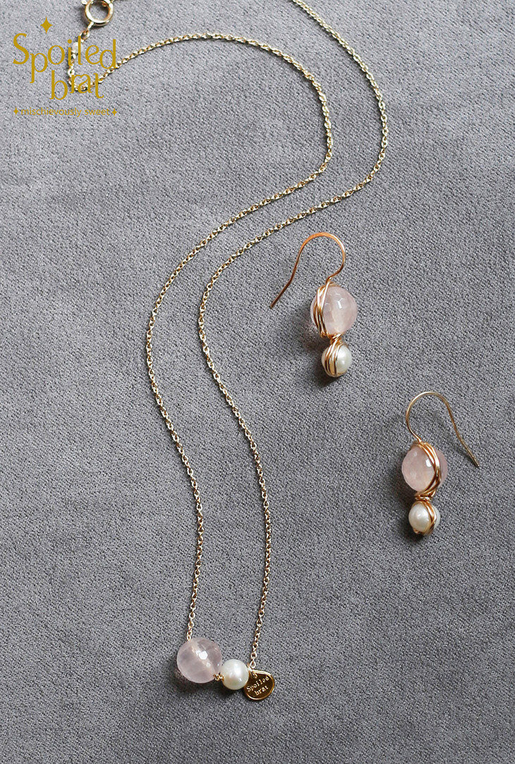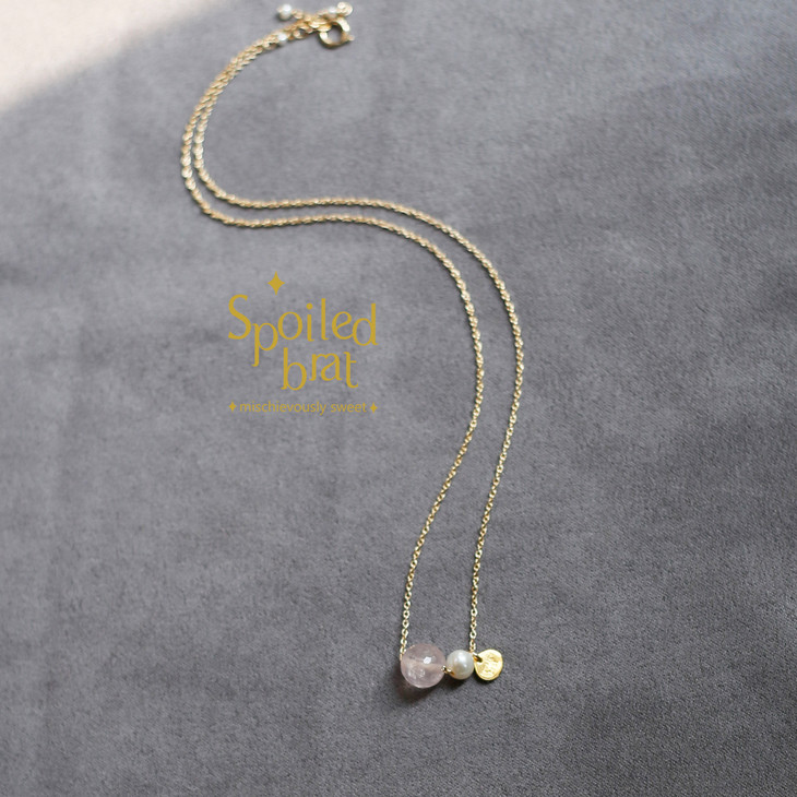 SpoiledBart Jewelry 14K注金 天然粉晶 珍珠 可爱 百搭 气质 项链