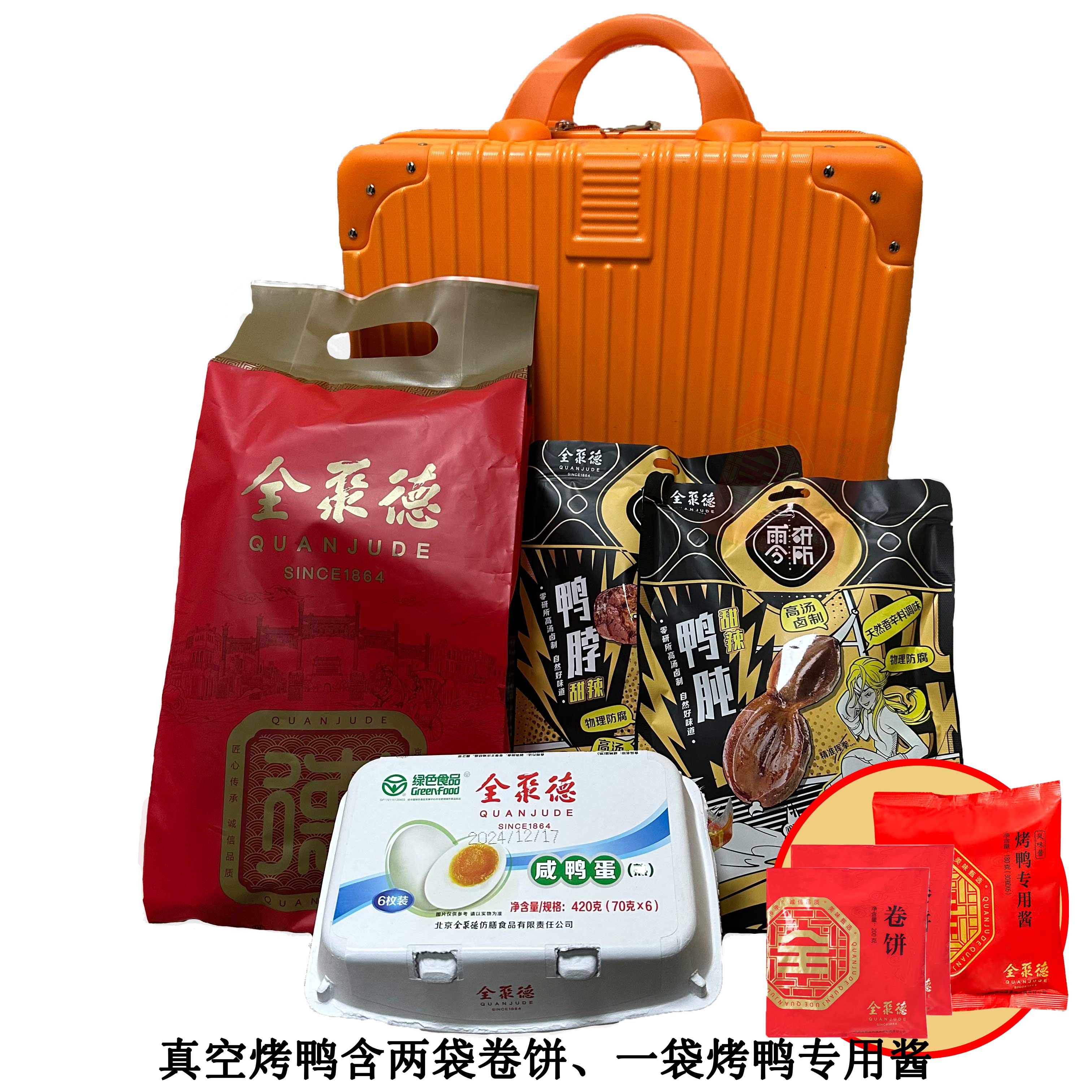 前门店【盒装原味真空烤鸭套装】包含原味真空烤鸭一只、 卷饼2袋、甜面酱1袋
