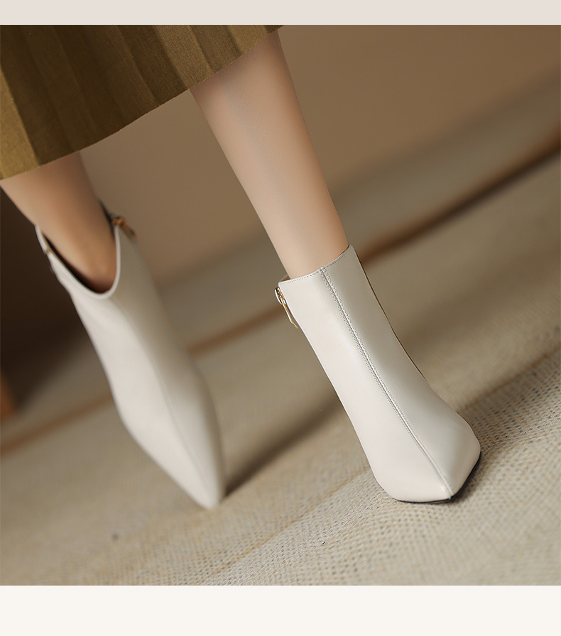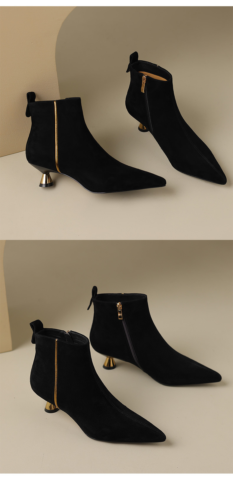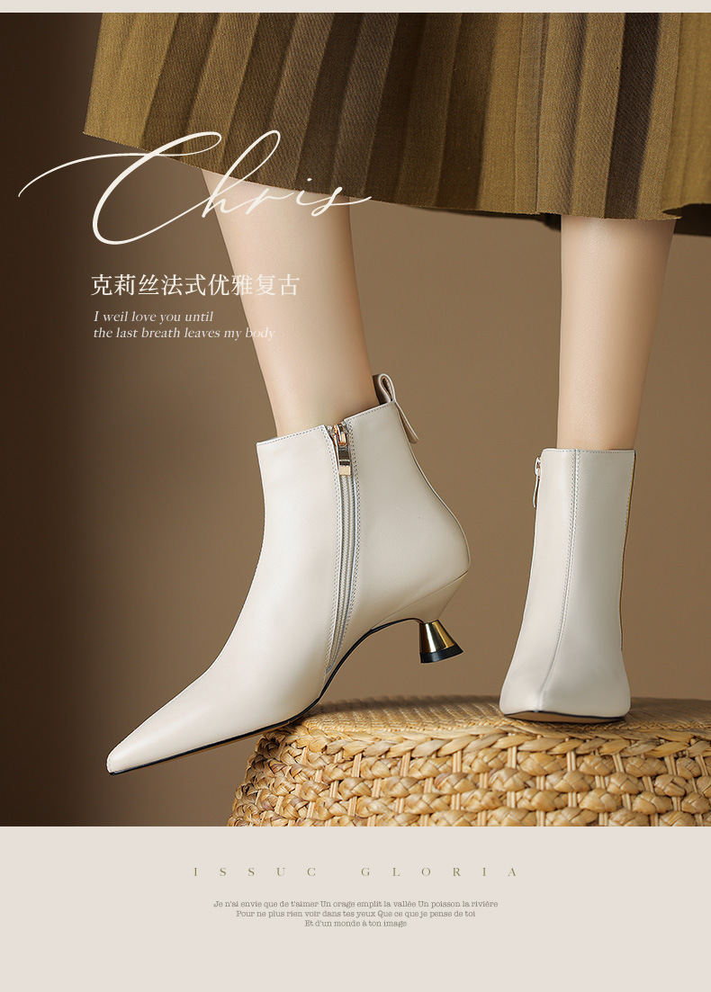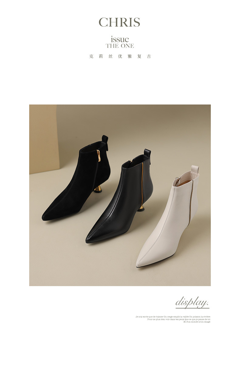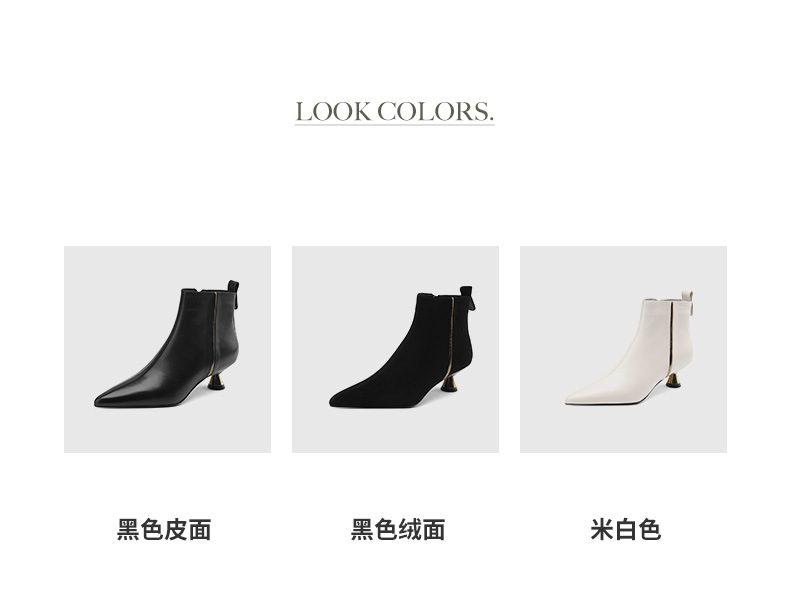OLD-HL-1965羊反绒高跟鞋女细跟2023秋冬季新款尖头加绒短筒小跟气质短靴低跟