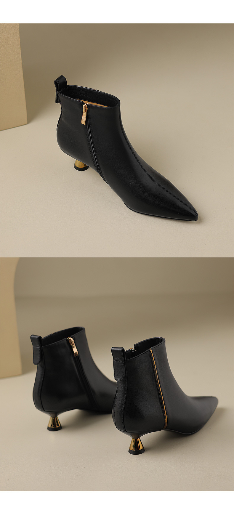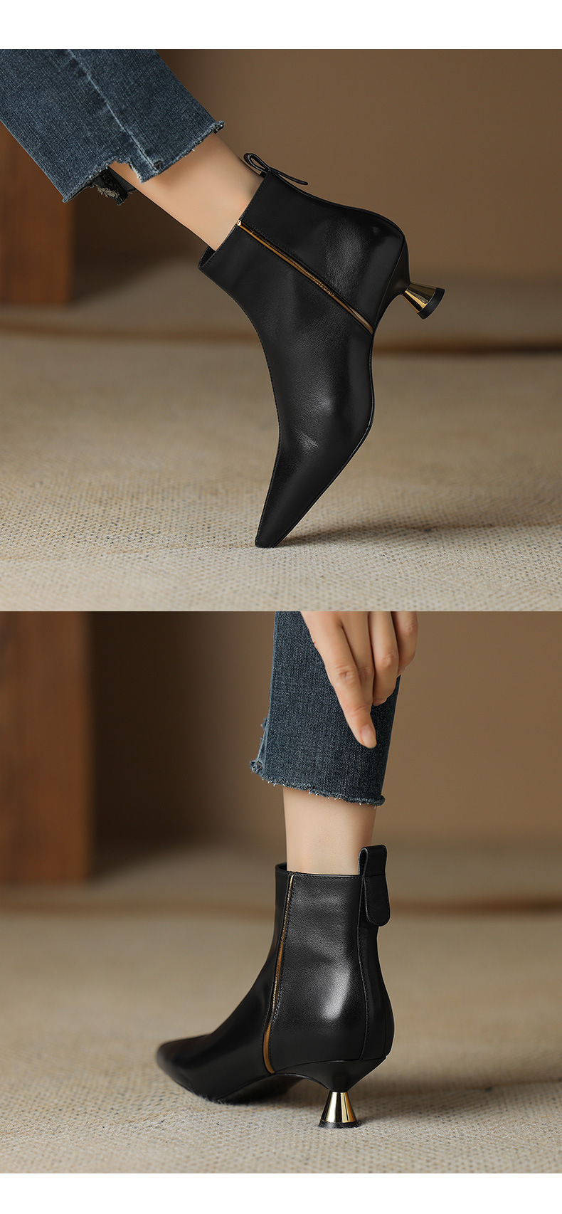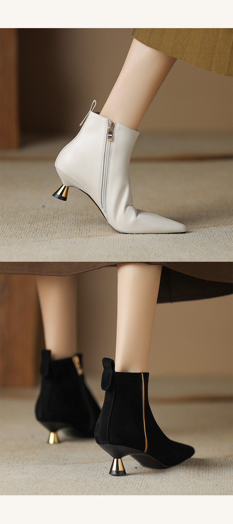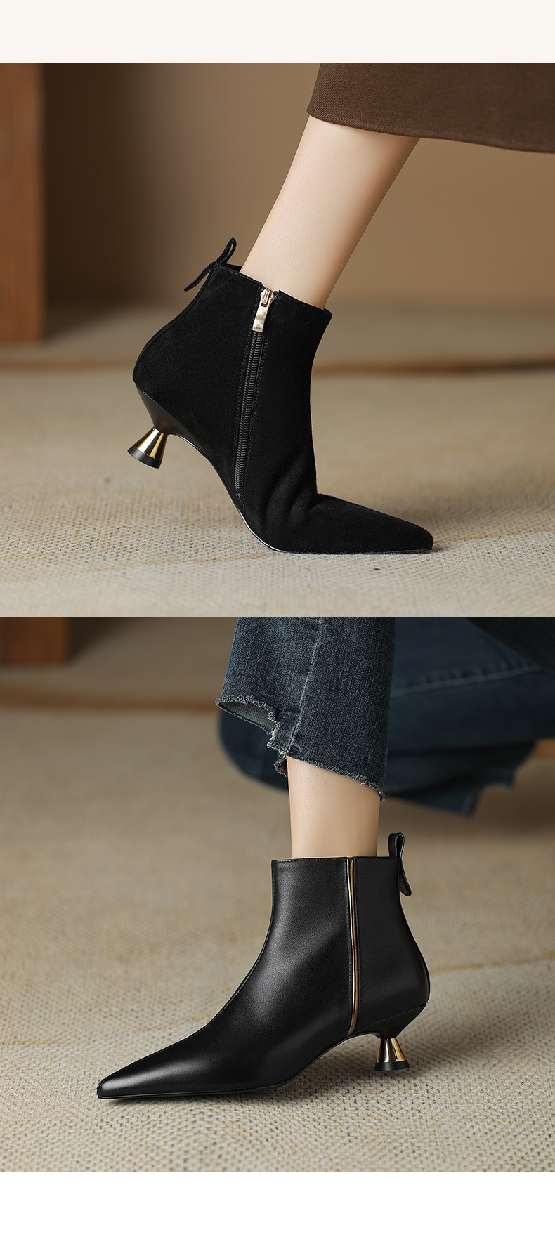 OLD-HL-1965羊反绒高跟鞋女细跟2023秋冬季新款尖头加绒短筒小跟气质短靴低跟