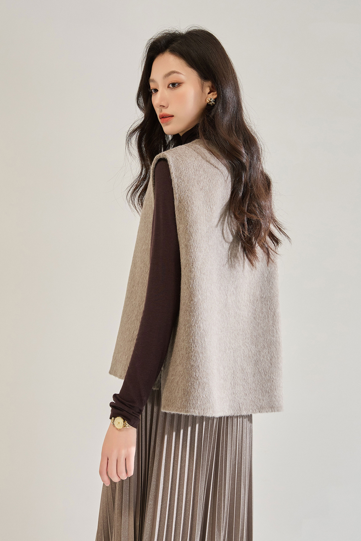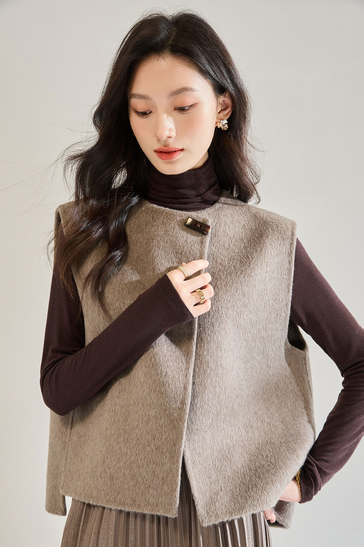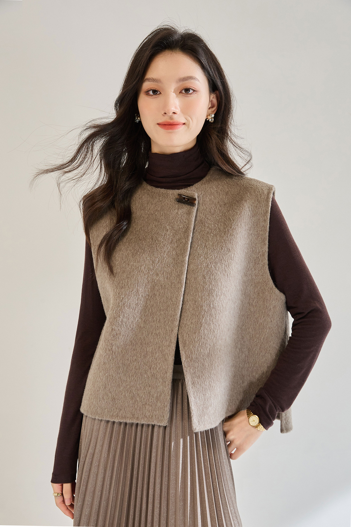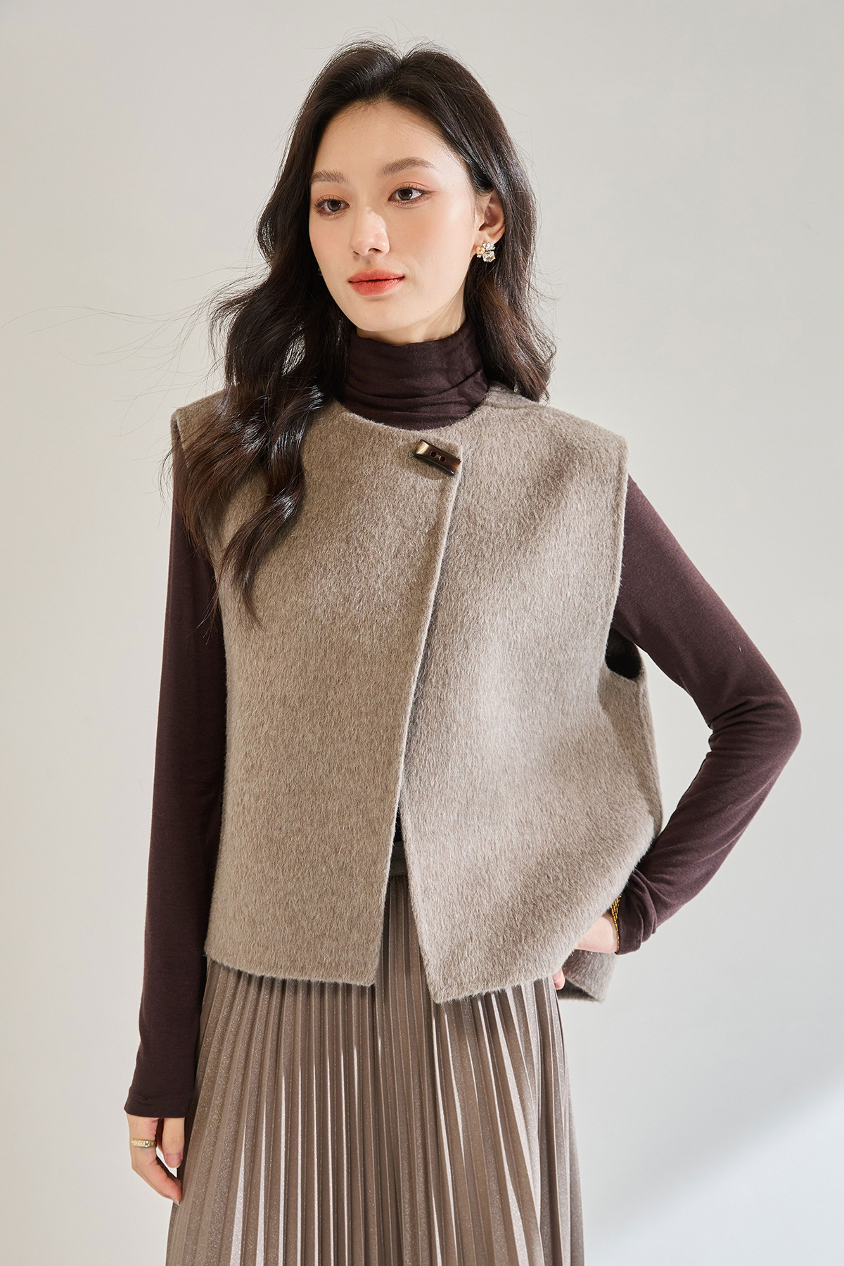 「高货sh」全新升级【铂金会员404/天猫539/差价135】(93950)洛诗琳轻奢气质羊毛无袖上衣2025秋冬气质双面呢马甲外套