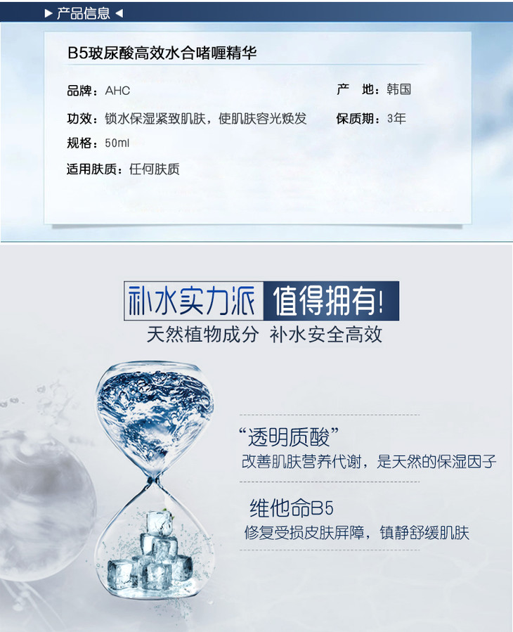 AHC透明质酸B5精华50ml 20版👍AHC玻尿酸系列就是为肌肤补水💦补水💦补水💦!升级版的B5精华一定要入手,含有98%维生素B5、95%玻尿酸,补水力和锁水力都更加up❗up❗up❗通过补水保湿来调节肌肤的水油平衡,修复屏障肌肤喝饱水,透出自然好气色😇。