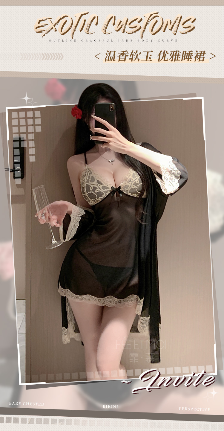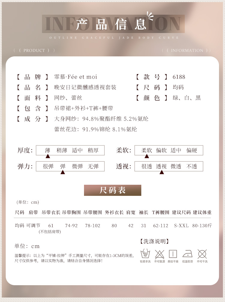 【情趣内衣】霏慕 晚安日记微醺感透视套装6188