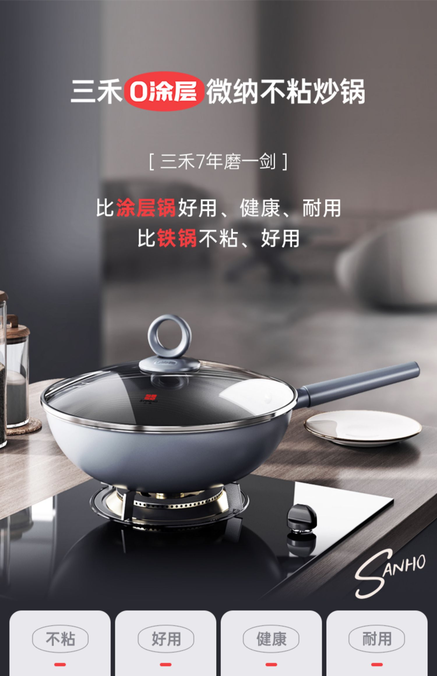 JM-三禾不粘锅0涂层微纳不粘锅0涂层不粘【CW】