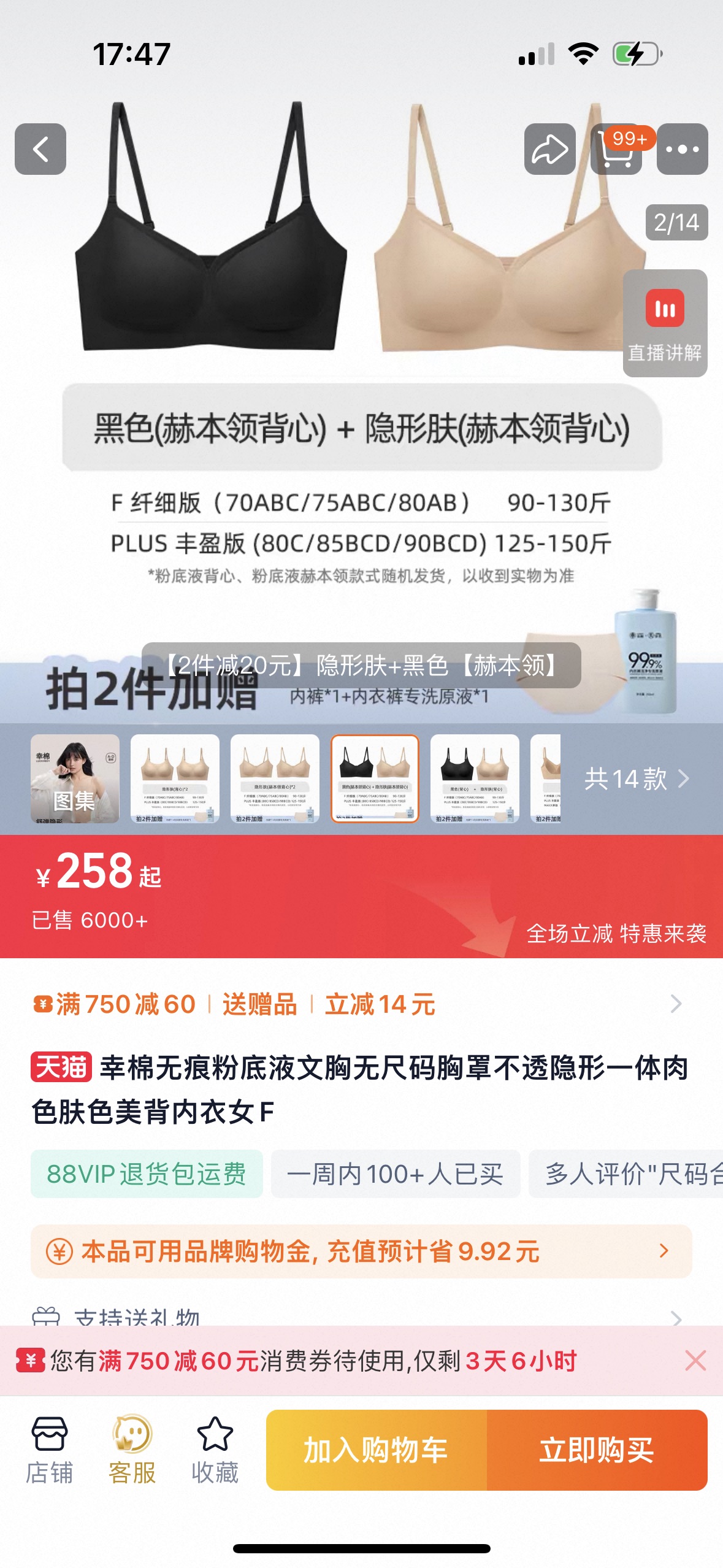 原装正品‼️ 福利一批售完再无 旗舰店正品!【幸棉粉底液内衣 | 宛若天生 舒适自在】官方258得2件,2万➕ 好评,才知道穿对内衣是一种什么感觉 好评太多了,一下都没有办法全部发给你,赶紧自己购买一套尝试一下吧。 极致薄隐——采用革新液态棉科技,如粉底液般细腻贴肤,真正做到“穿如未穿”,轻松隐匿于任何浅色夏装之下,无痕百搭。 空气感舒适——轻至3.5g,薄如蝉翼,透气吸湿,告别闷热,运动日常皆宜。 U型聚拢托胸,自然勾勒饱满曲线,自信瞬间UP! 美背Y型设计,搭配露背装、运动服、通勤装都好看,一件解锁所有夏日穿搭难题! 宛若天生|轻盈支撑,自由随心这个夏天,让幸棉给你“隐形的翅膀”!均码适合90-130斤。