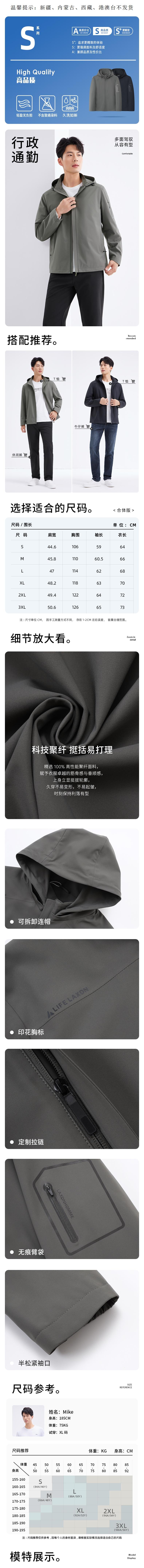 莱克斯顿 连帽风衣外套男休闲夹克 1030850286