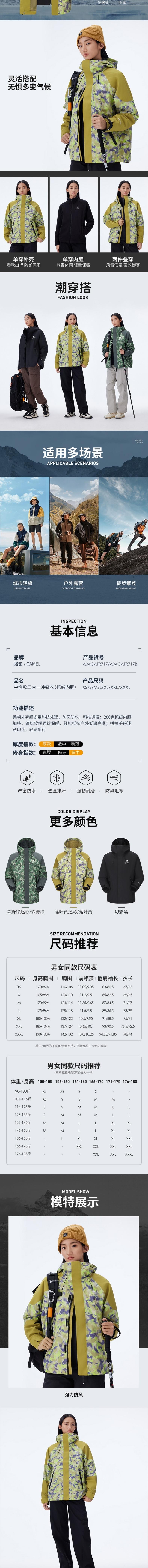 骆驼 通用三合一冲锋衣 A34CATR717B