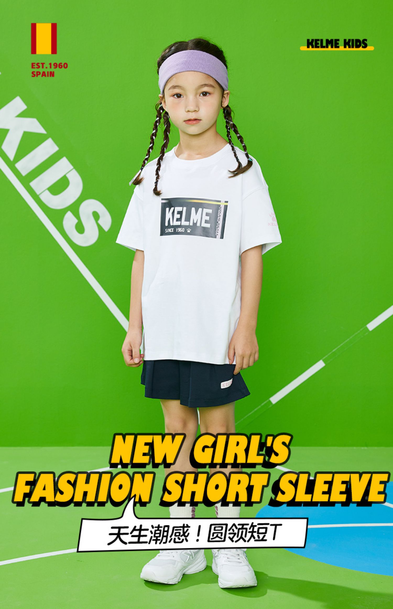 KIDS 卡尔美童装女童纯棉短袖夏季新款时尚纯色休闲T恤
