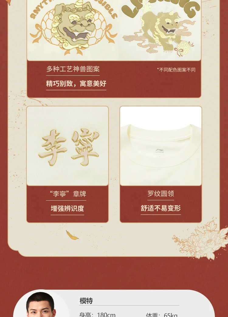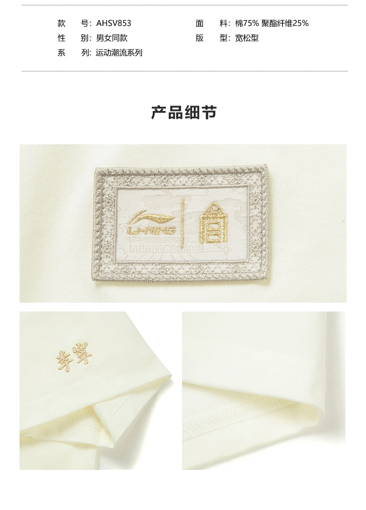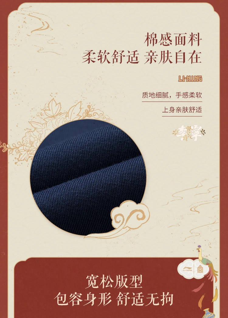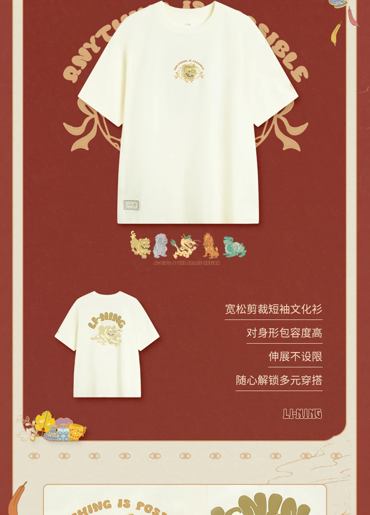 李宁男子T恤2025秋季新款故宫联名舒适透气宽松短袖文化衫AHSV853