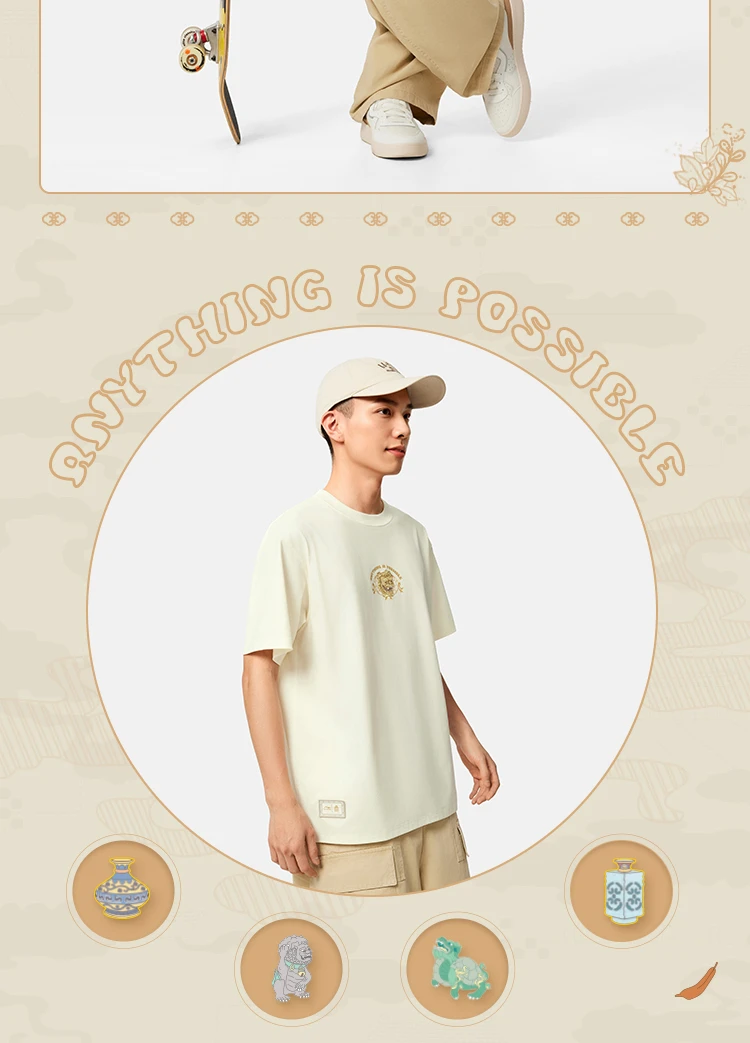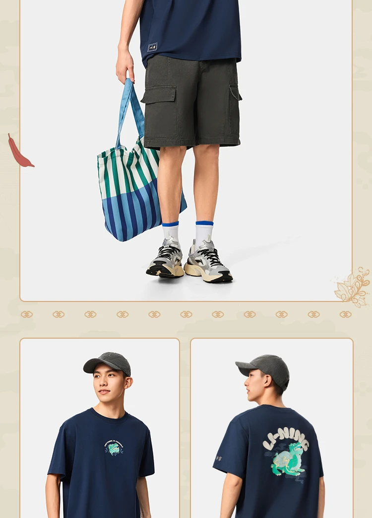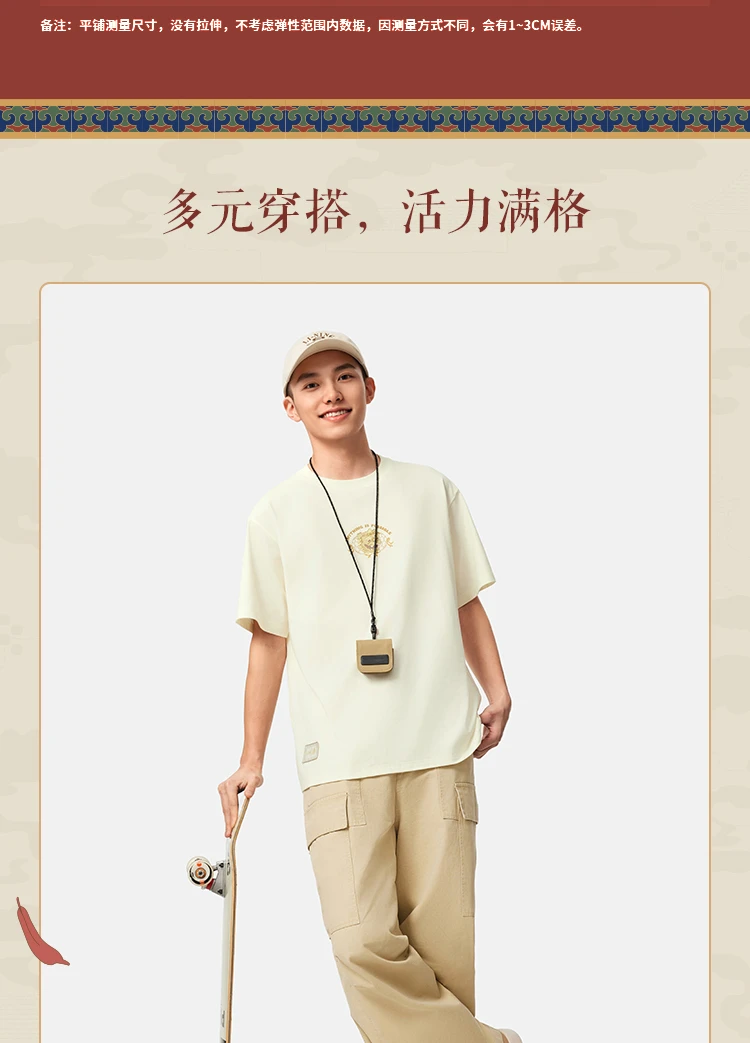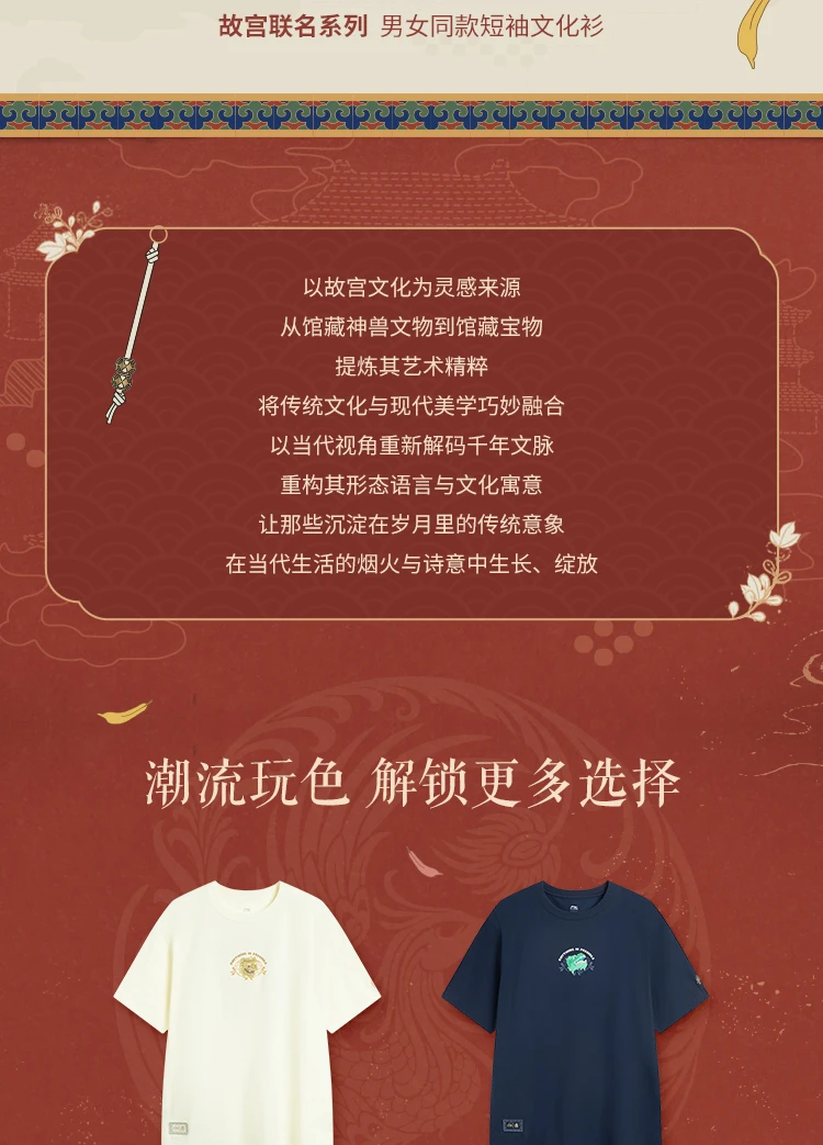 李宁男子T恤2025秋季新款故宫联名舒适透气宽松短袖文化衫AHSV853