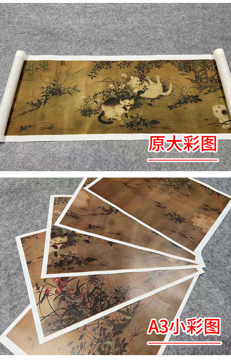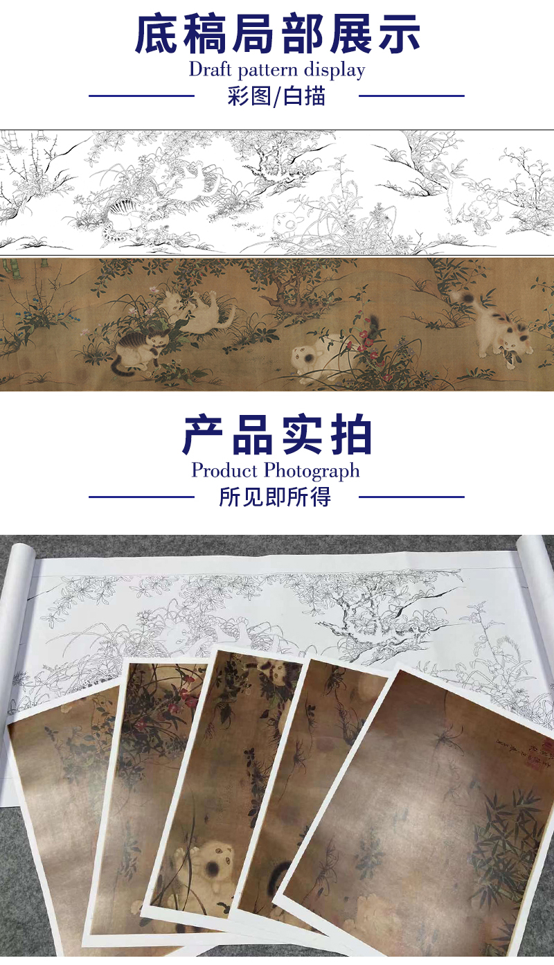 【长卷】工笔动物画白描底稿古画长卷朱瞻基《唐苑嬉春图》多种白描尺寸可选G031