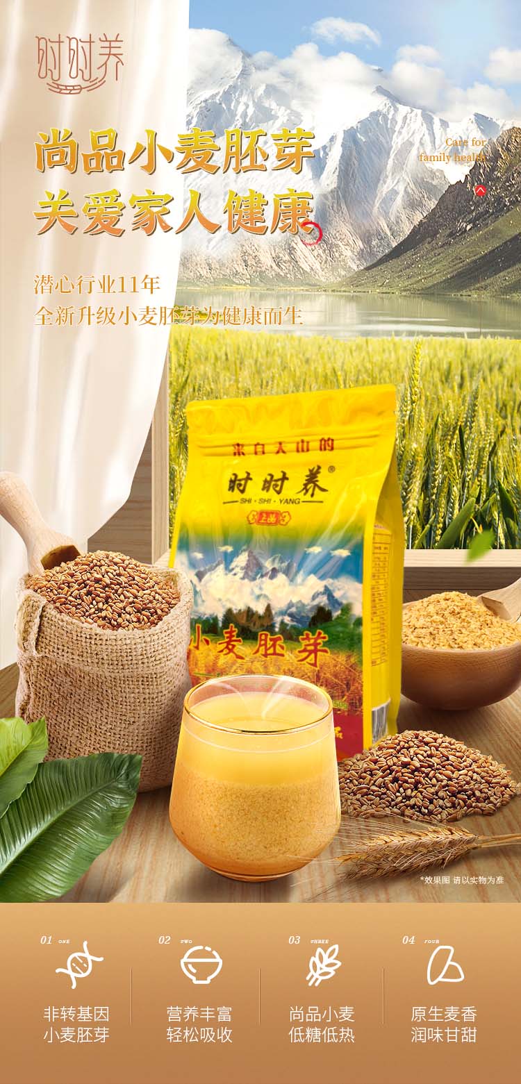 五谷营养即食小麦胚芽 新疆特色食品 时时养小麦胚芽麦片450g