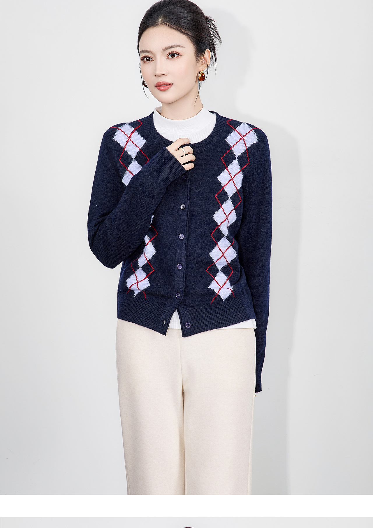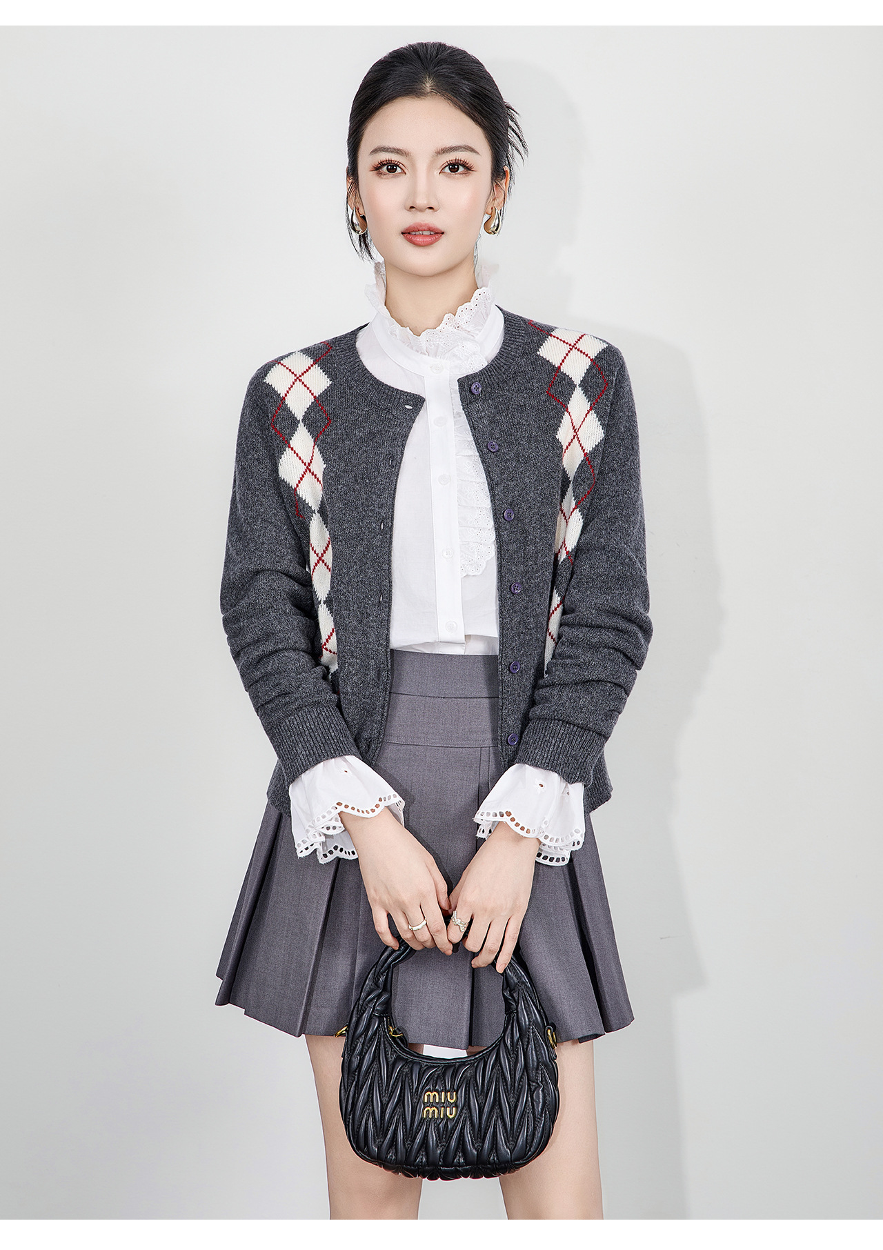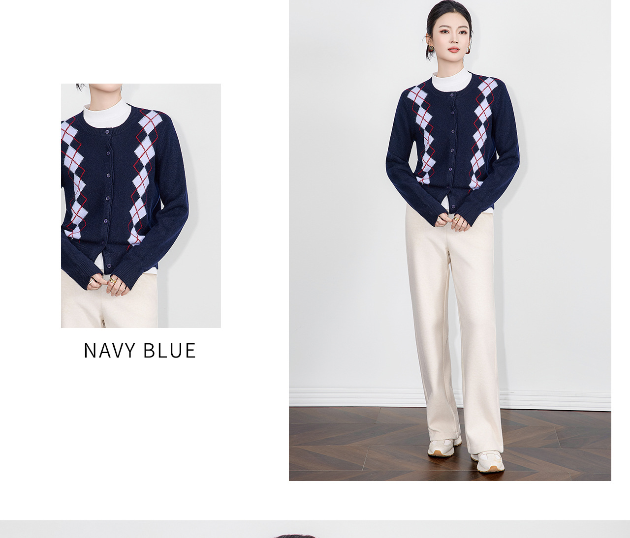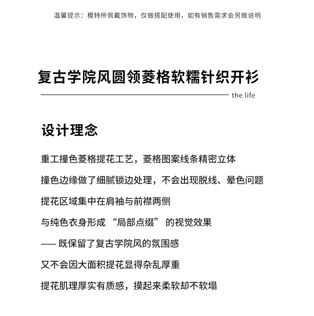 「高货wl」全新升级【铂金会员192/天猫259/差价67】(04518)洛诗琳气质菱格提花毛衣2025秋冬百搭通勤羊毛针织开衫女