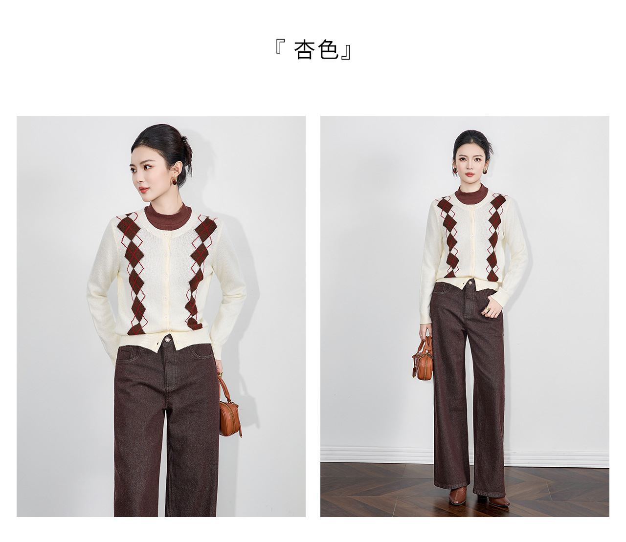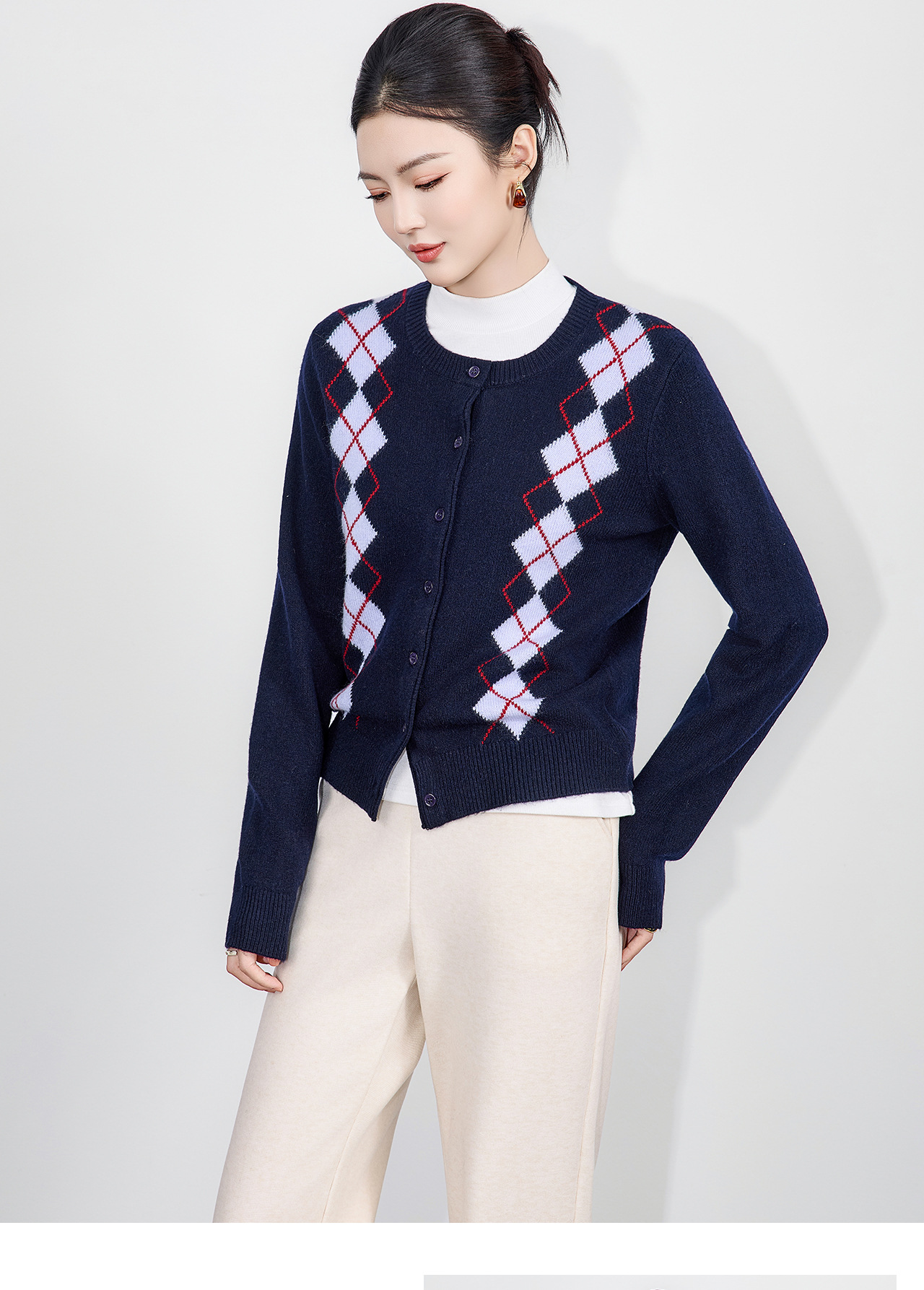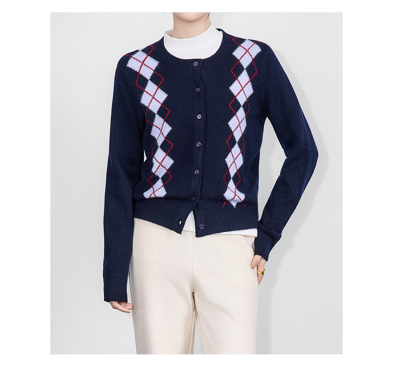 「高货wl」全新升级【铂金会员192/天猫259/差价67】(04518)洛诗琳气质菱格提花毛衣2025秋冬百搭通勤羊毛针织开衫女