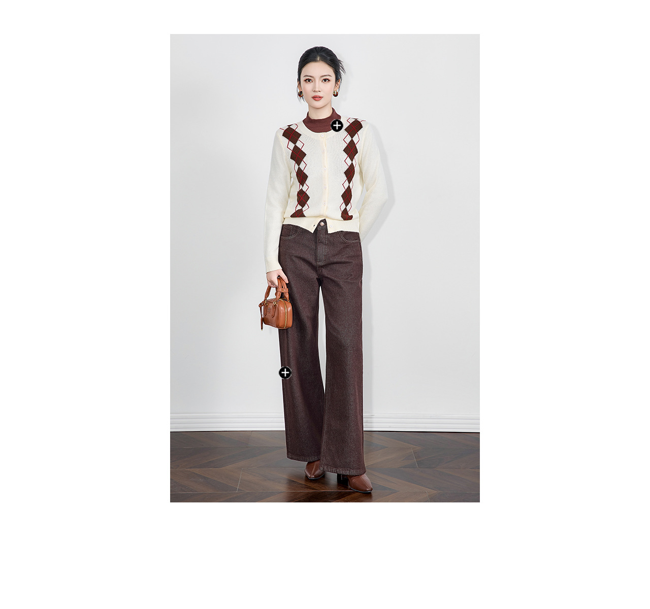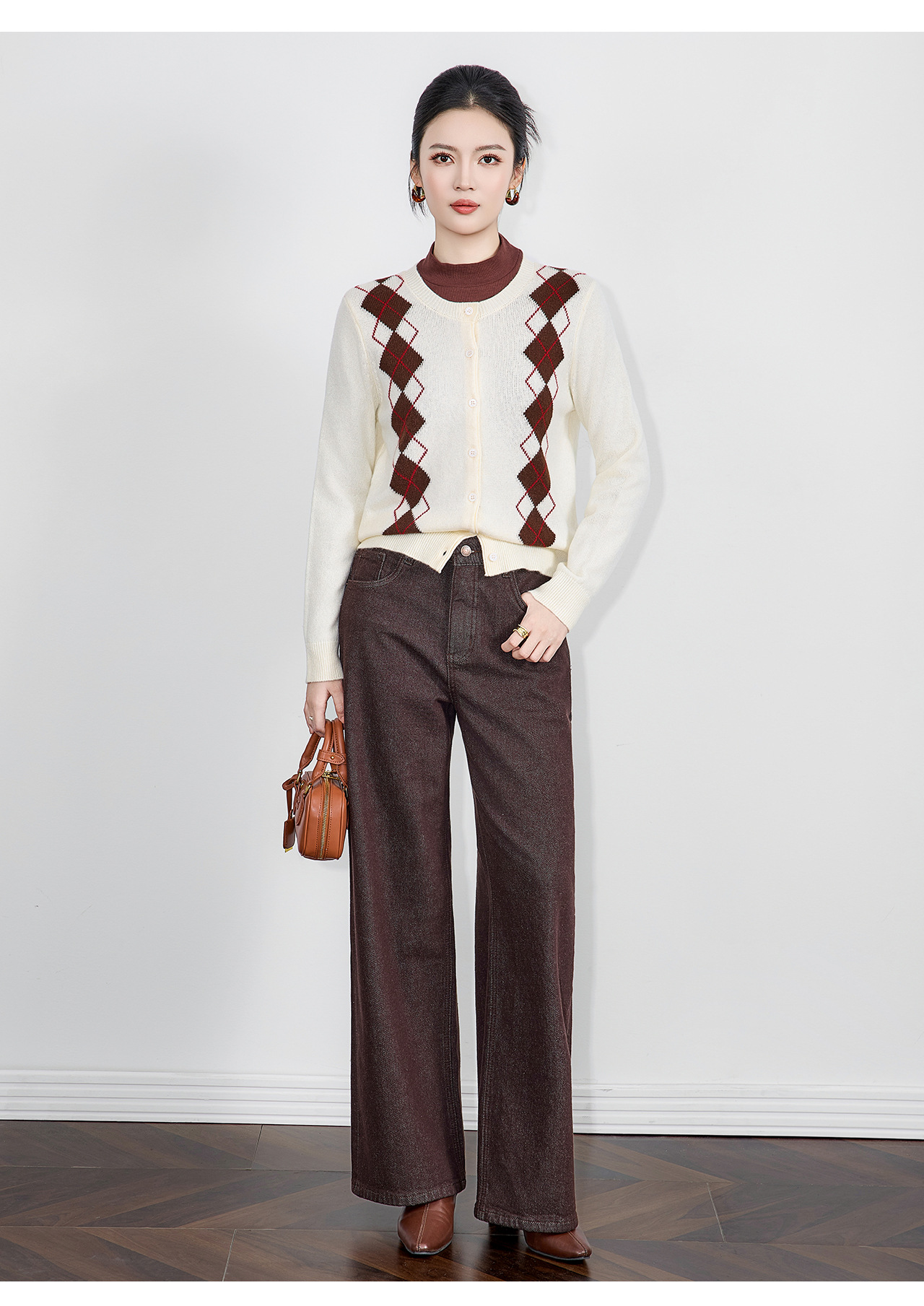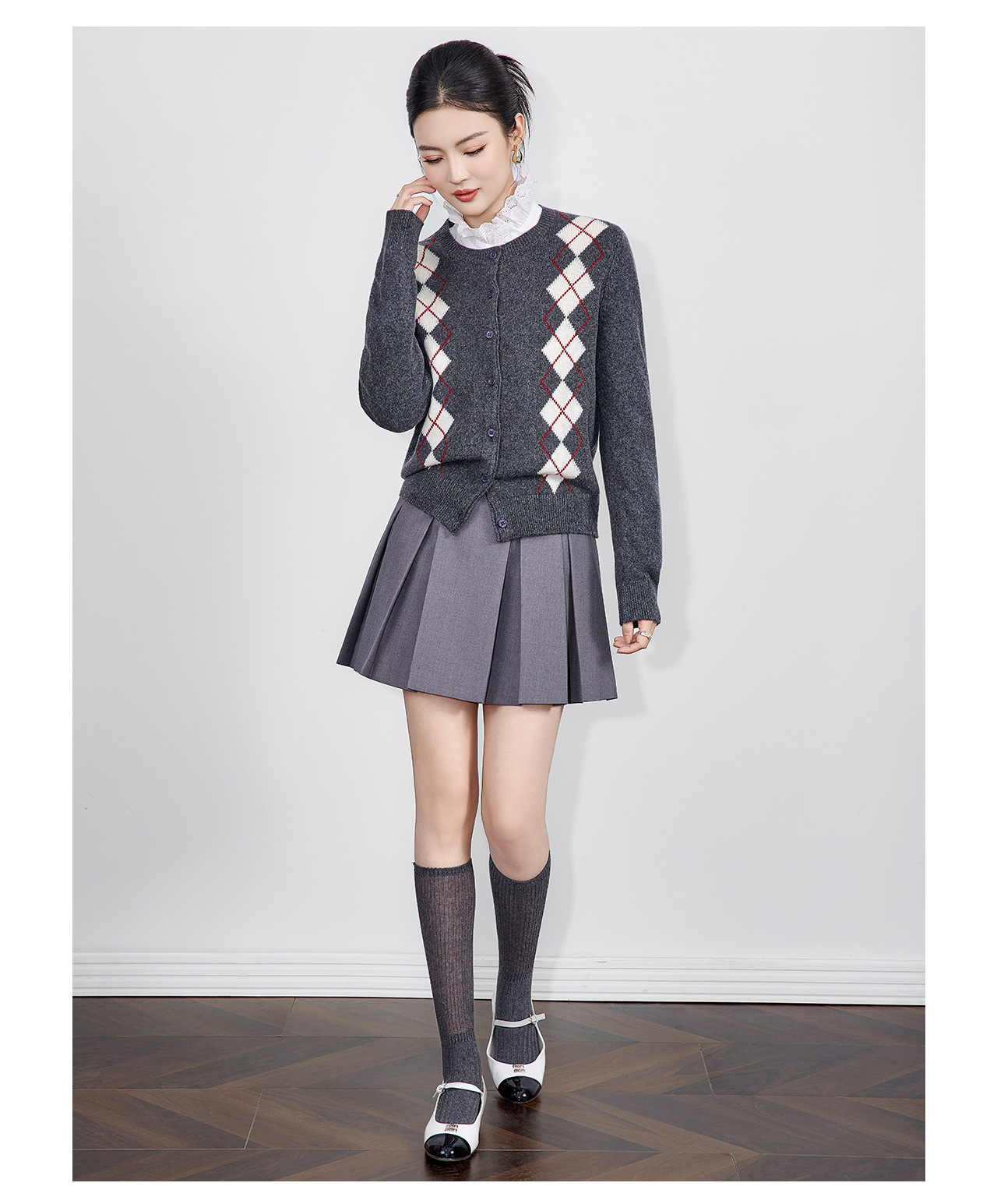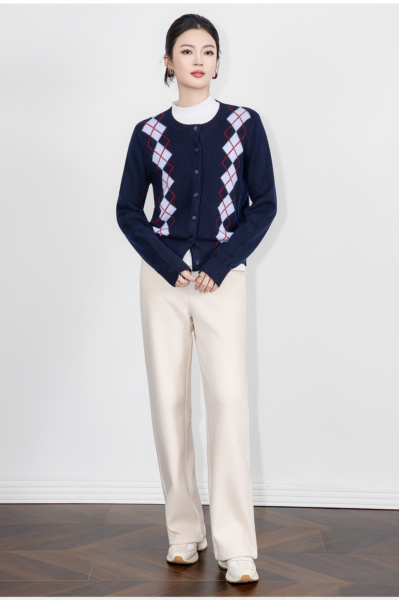 「高货wl」全新升级【铂金会员192/天猫259/差价67】(04518)洛诗琳气质菱格提花毛衣2025秋冬百搭通勤羊毛针织开衫女