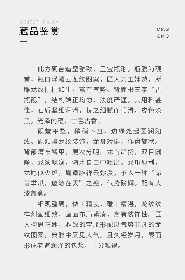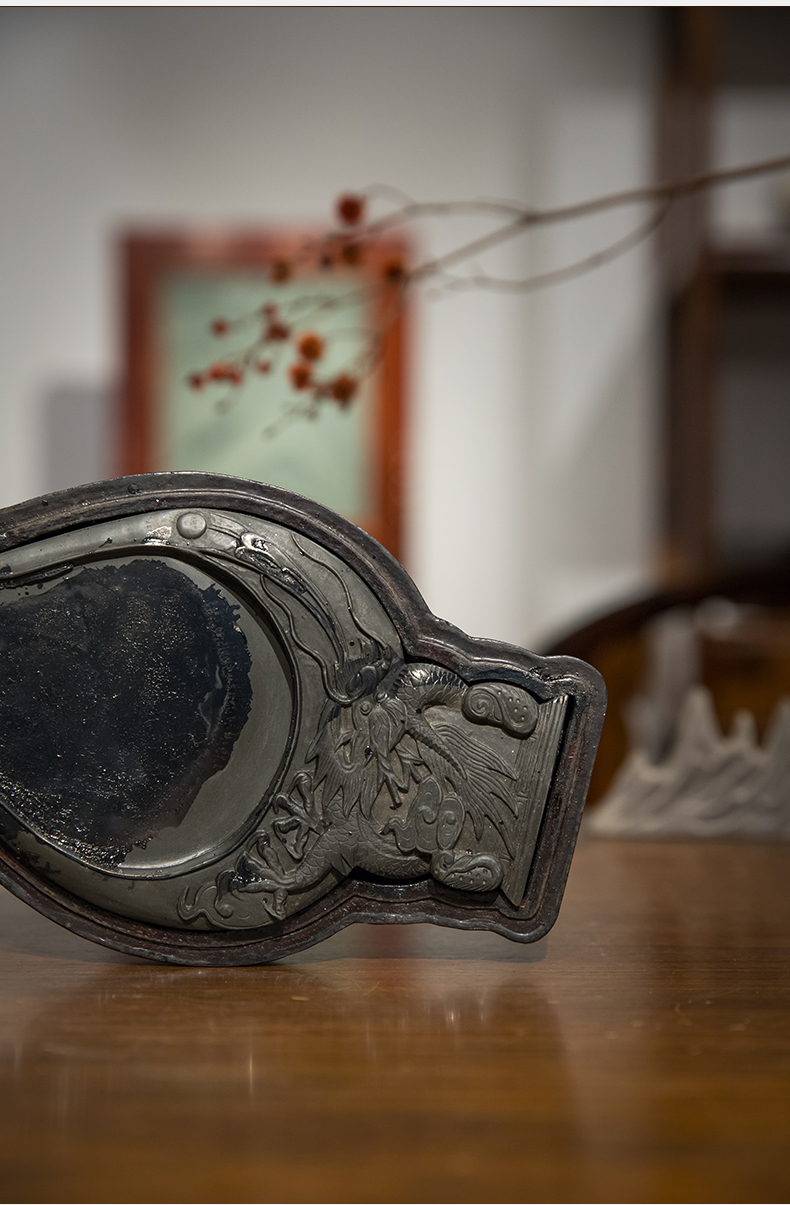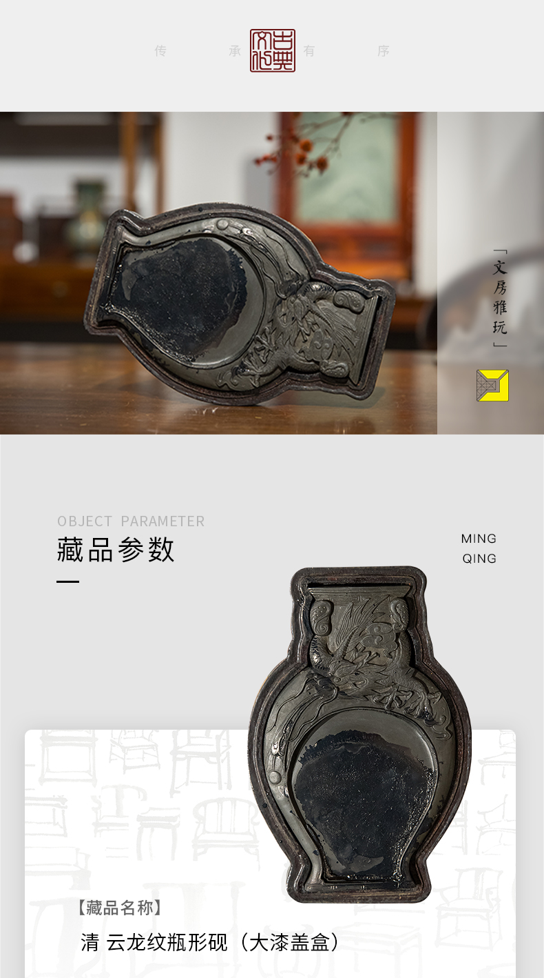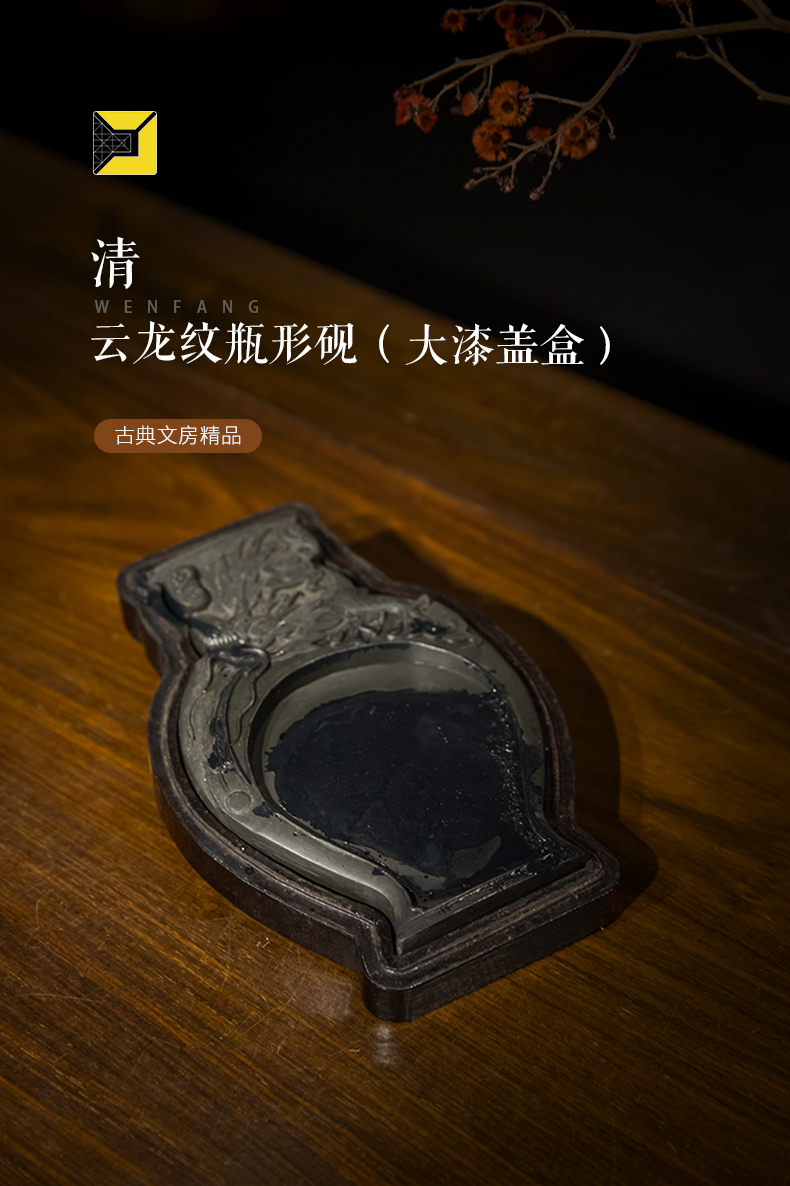 清 云龙纹瓶形砚(大漆盖盒)