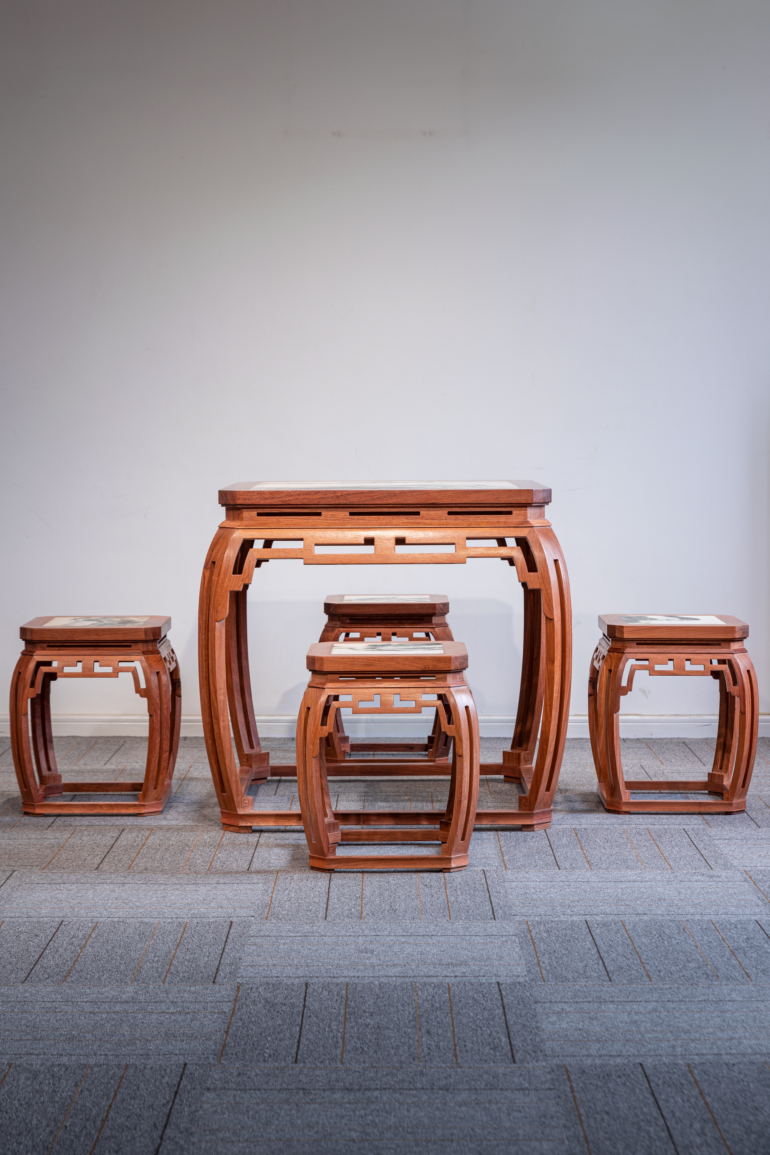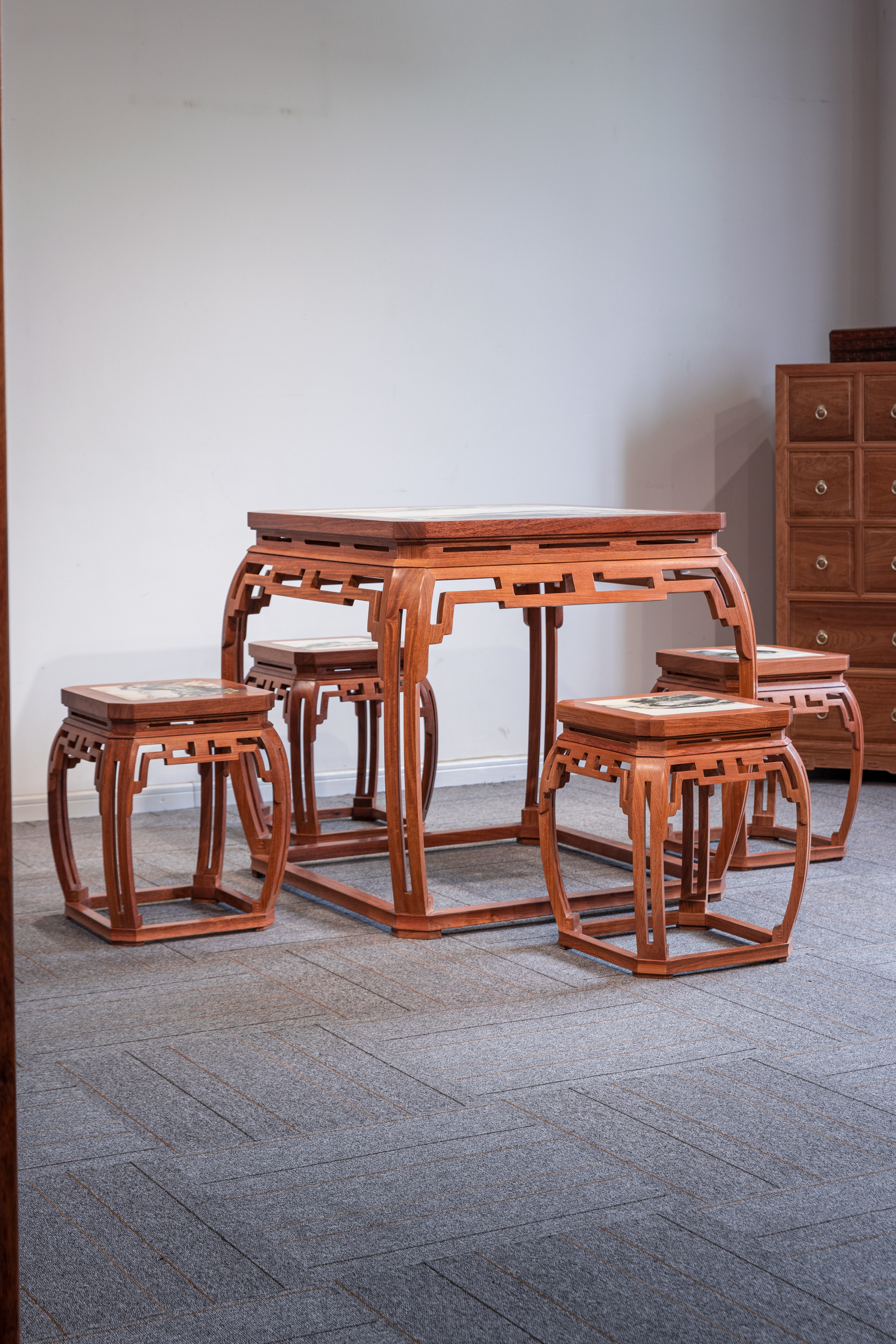 石面 78 仿故宫文竹 方桌五件套