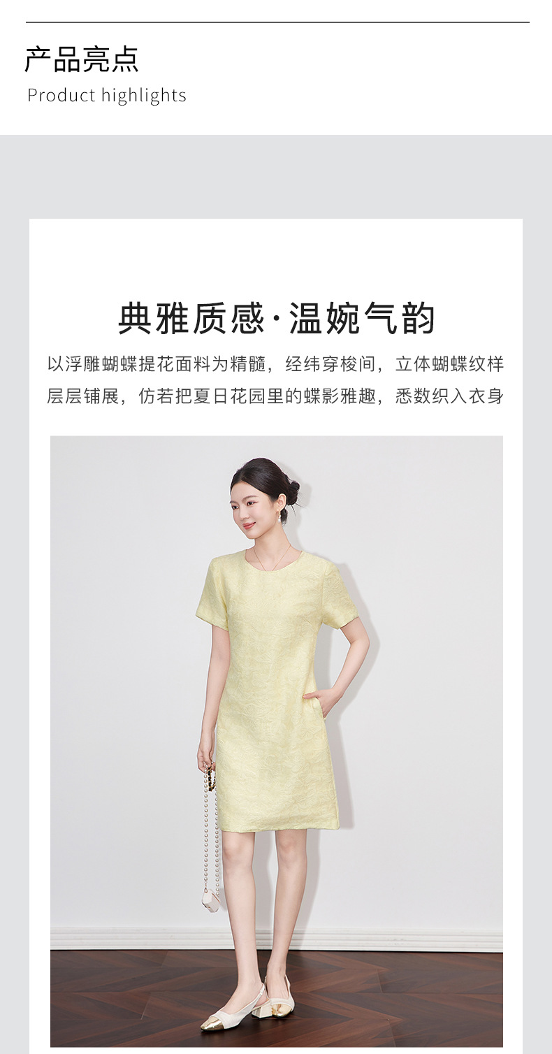 「高货wl」全新升级【铂金会员330/天猫439/差价109】(05717)洛诗琳气质提花连衣裙2025夏季洋气重工蝴蝶浮雕印花裙女